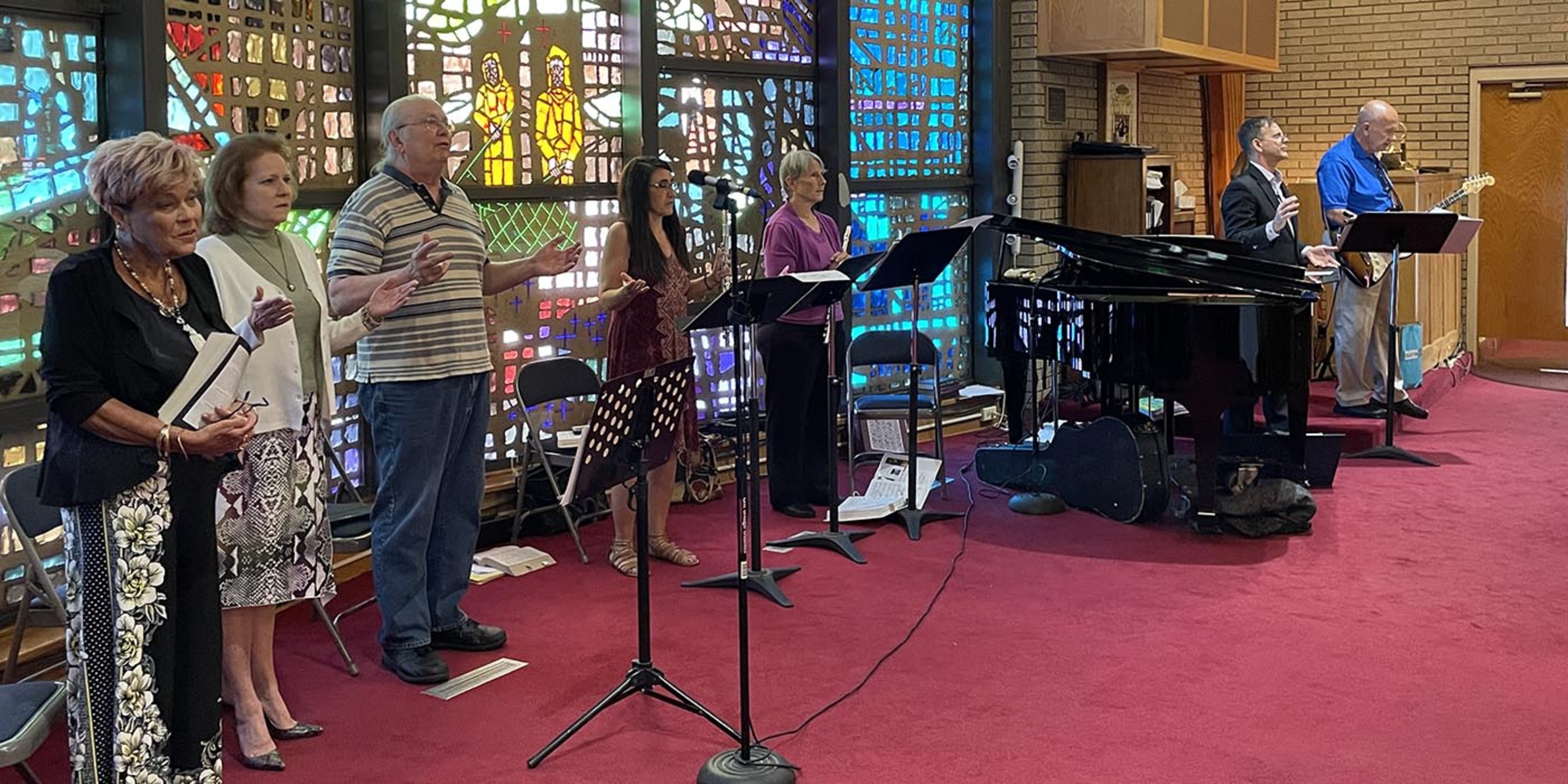 Off-and-on rainstorms on June 19 caused St. Cyprian Parish to move its previously scheduled outdoor vigil Mass into the church. Father George Kusy, the pastor, said normally the faithful of the approximately 700-family parish enjoy attending Mass outdoors in the parish grotto from May through October.