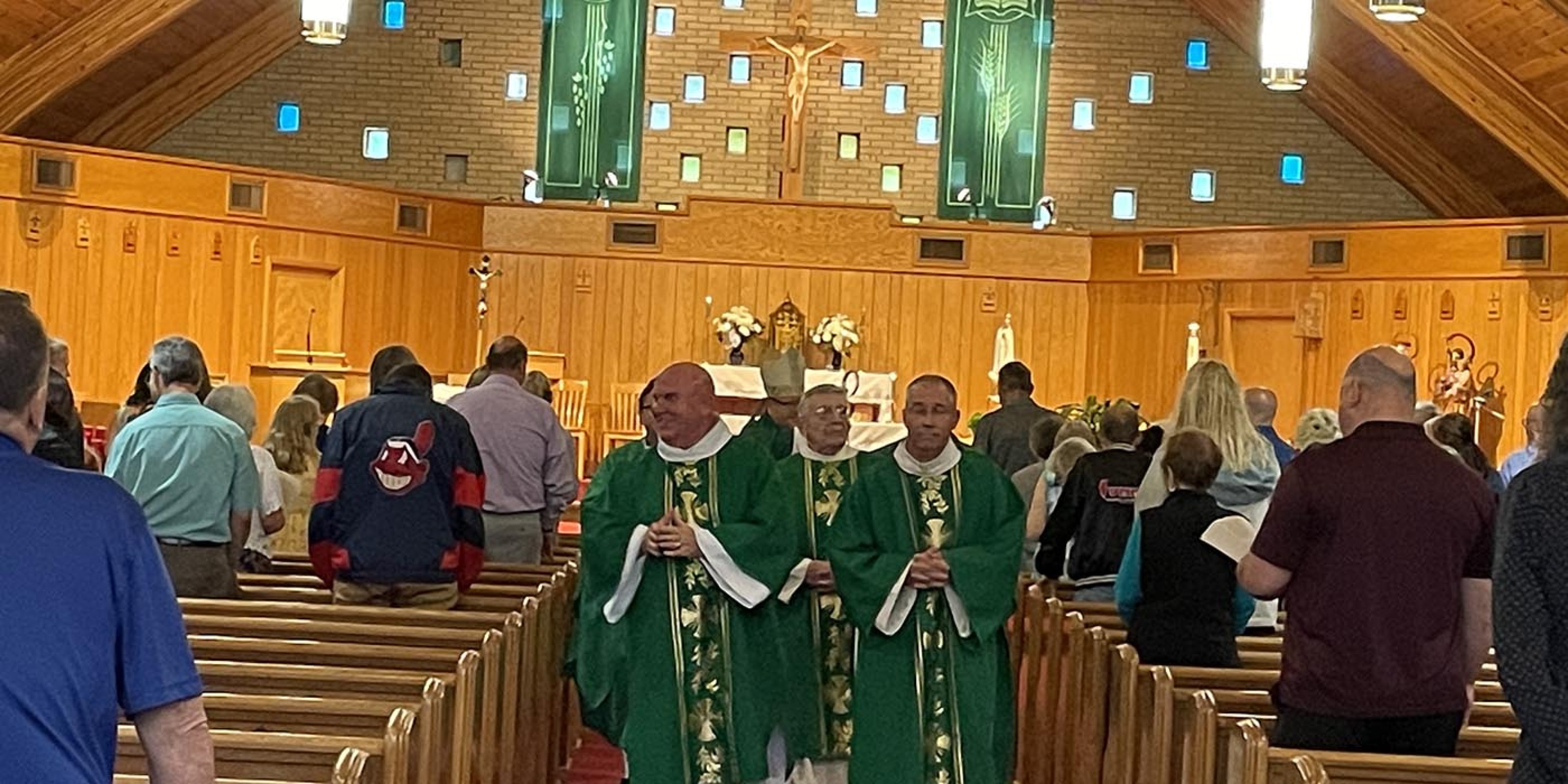 He welcomed Bishop Edward Malesic and Father Dan Schlegel, vicar for clergy and religious, to the parish. “I hope you come again,” he said, extending an open invitation to return.