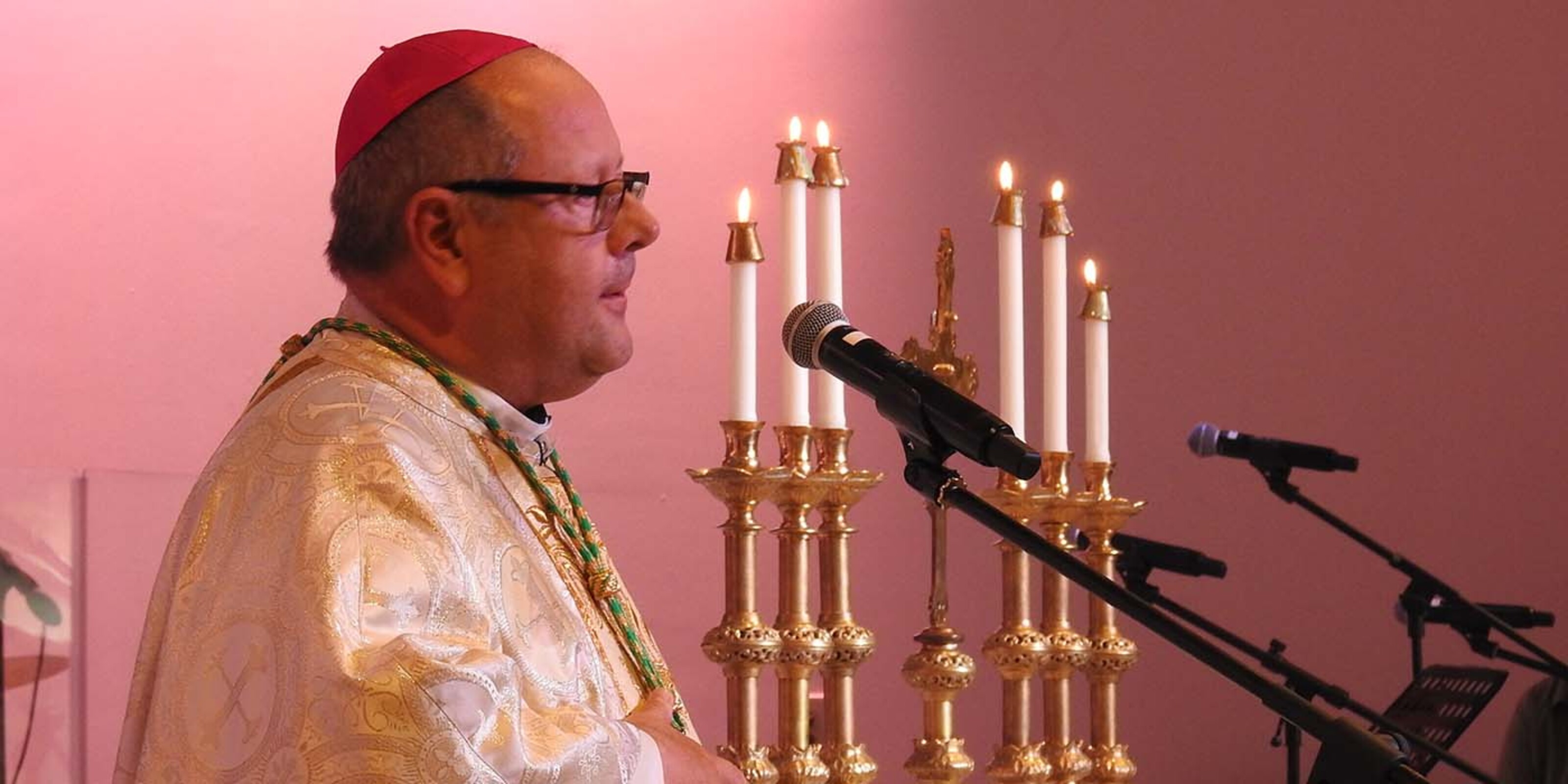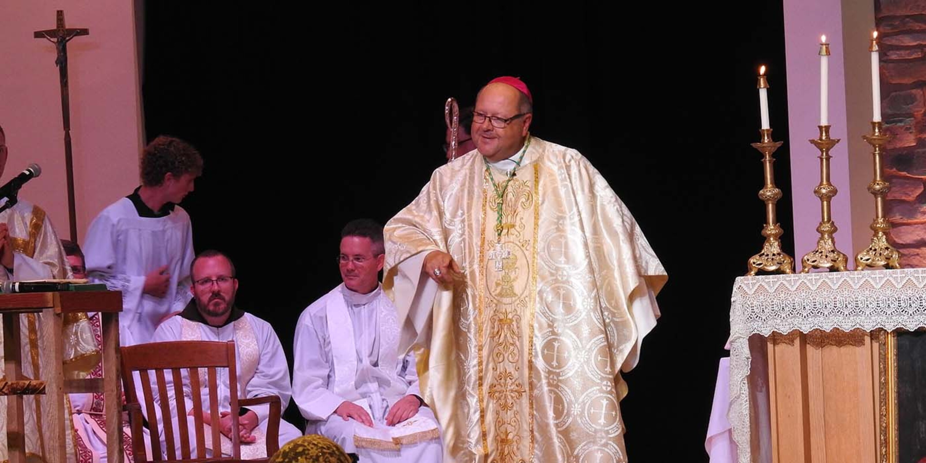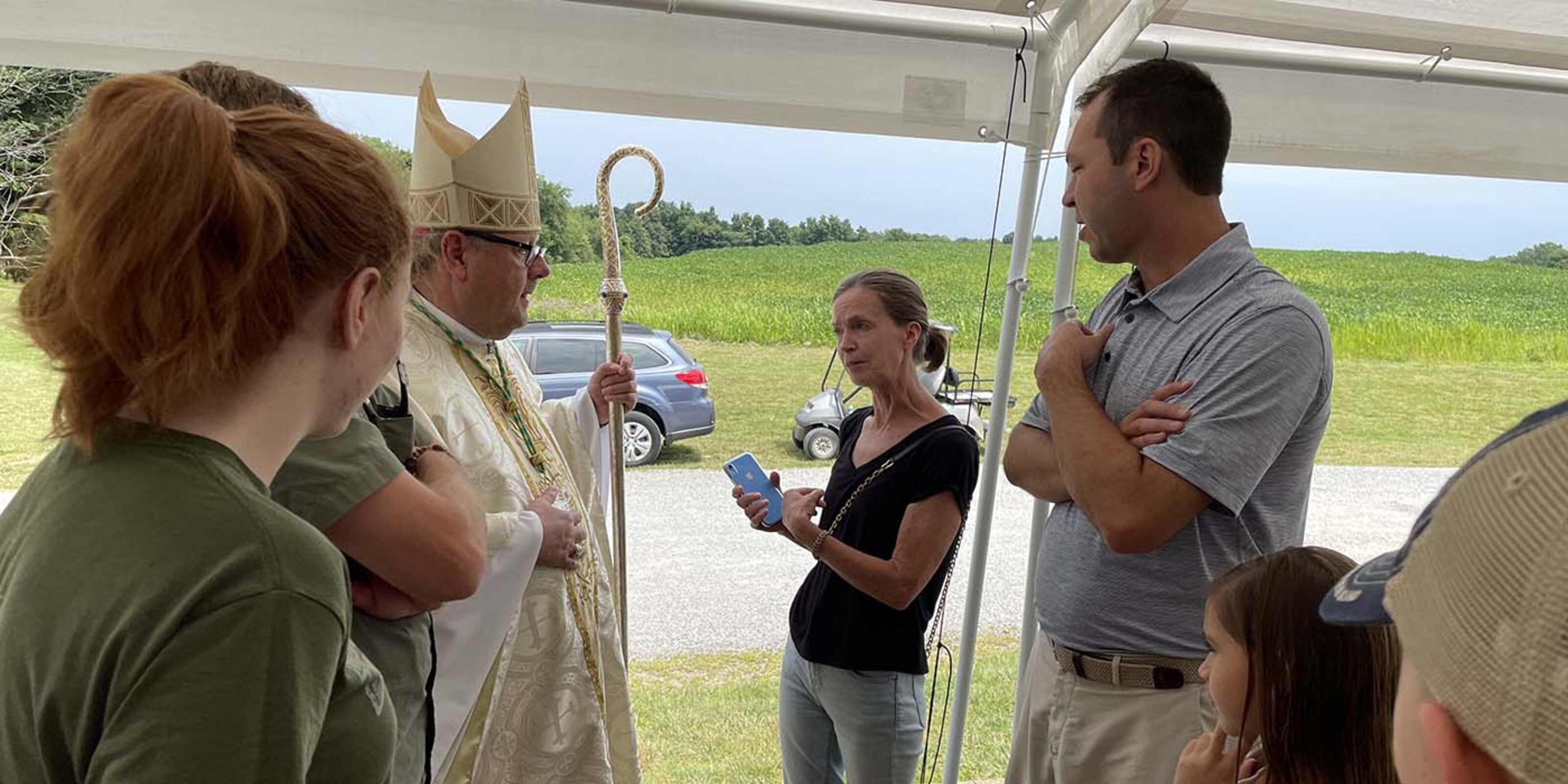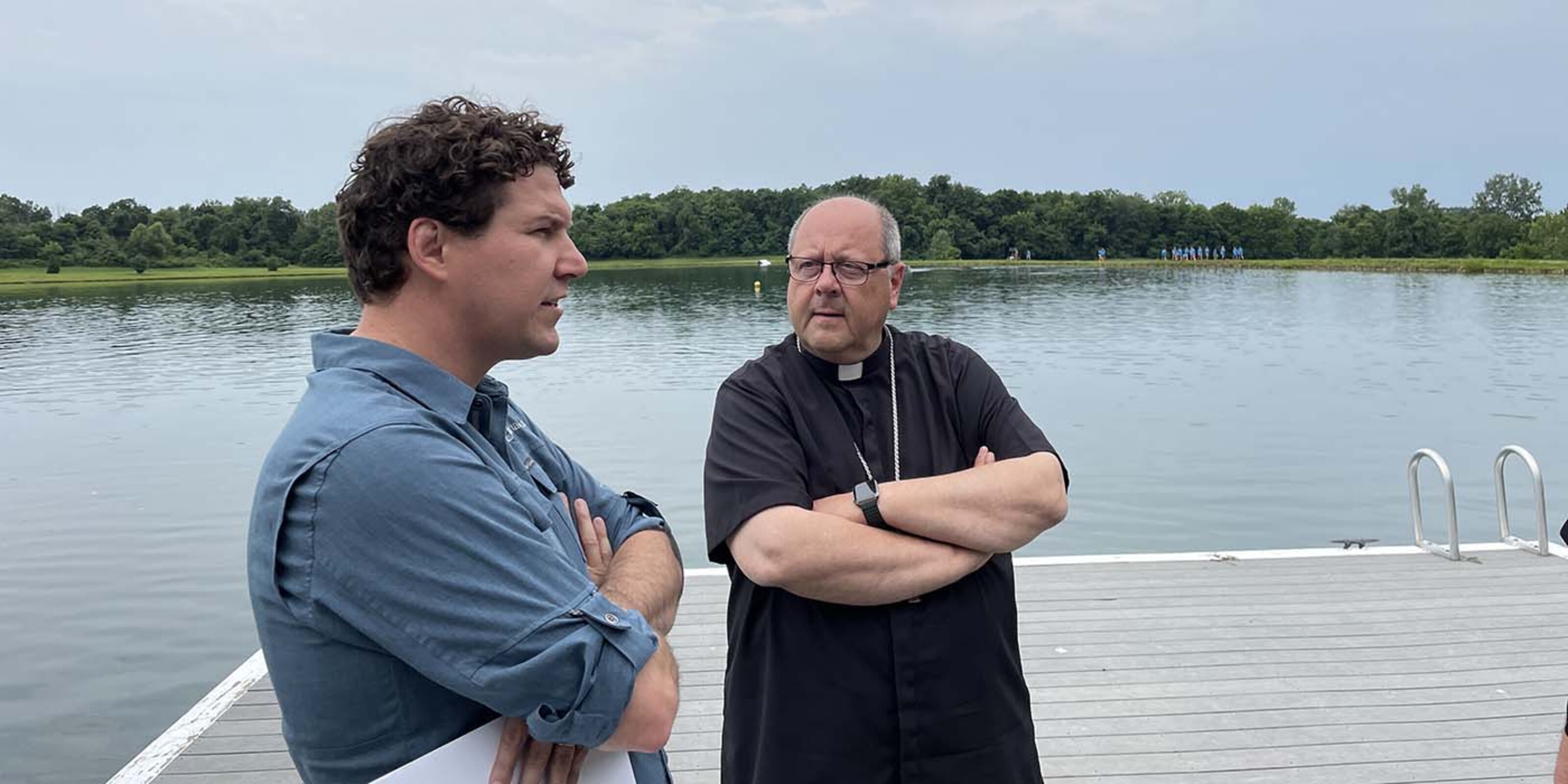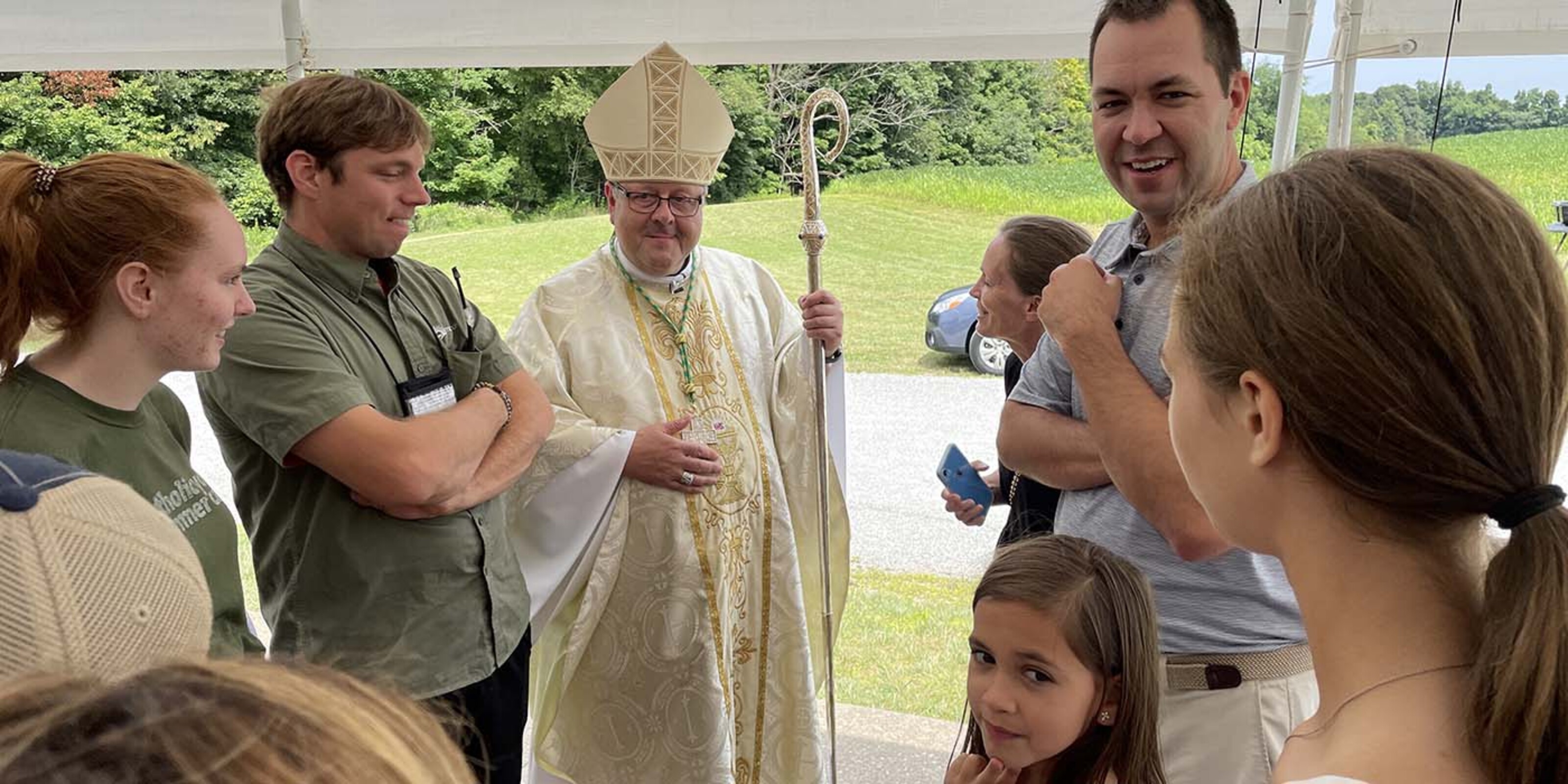 Against a backdrop of woods, a manmade lake and Amish-built structures, Bishop Edward Malesic got his first look at Damascus Catholic Mission Campus, home of the Catholic Youth Summer Camp in Centerburg, Ohio on July 23, a picture-perfect summer day.