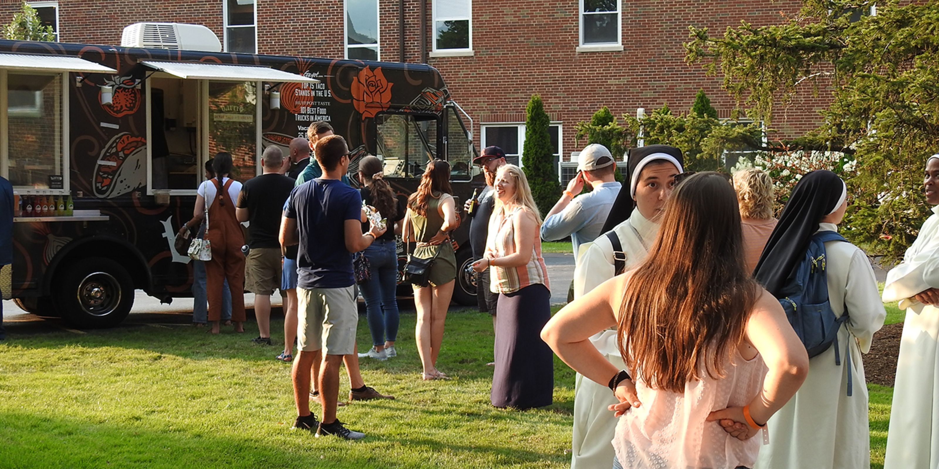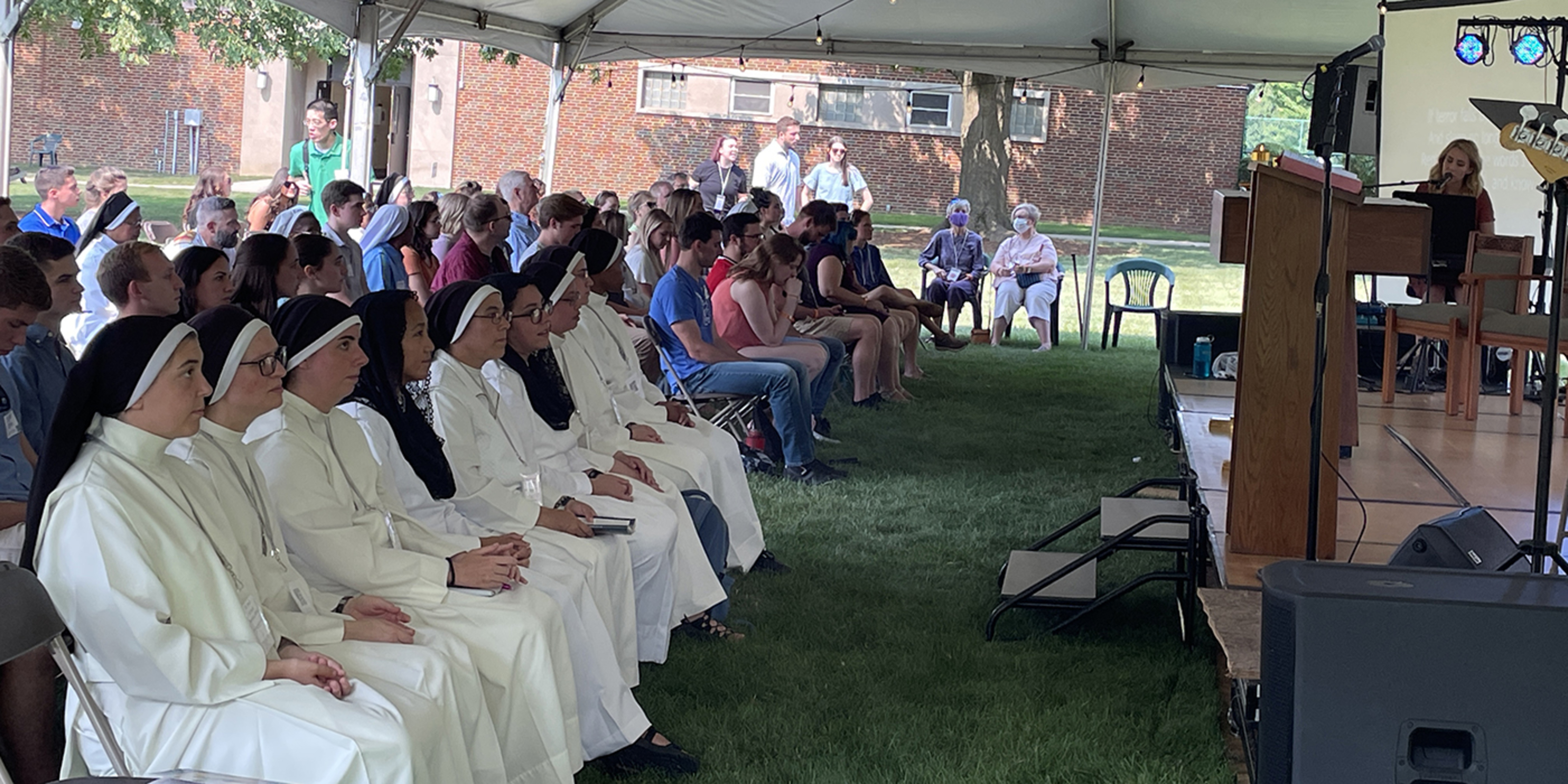 Attendees checked in and were able to socialize and play games including corn hole and volleyball until Mass began about 4 p.m. under a large tent set up on the spacious CPL grounds.