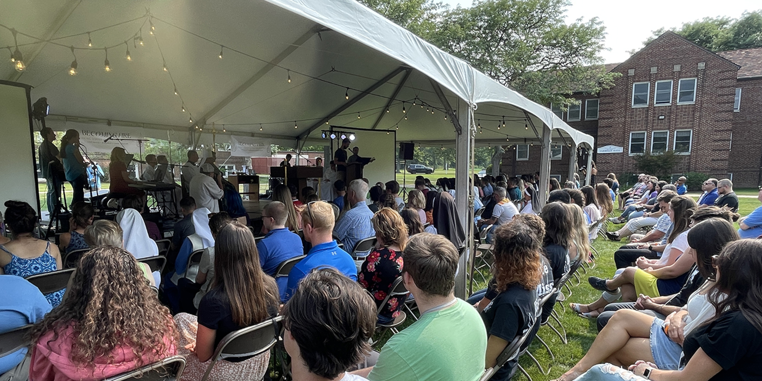 About 200 people, including clergy, religious and lay people, gathered July 31 at the Center for Pastoral Leadership in Wickliffe for Becoming Fire, an outdoor young adult festival. Father Michael McCandless, director of the diocesan Vocation Office and one of the event organizers, was pleased with the inaugural festival. “I expect it will become an annual event,” he said.