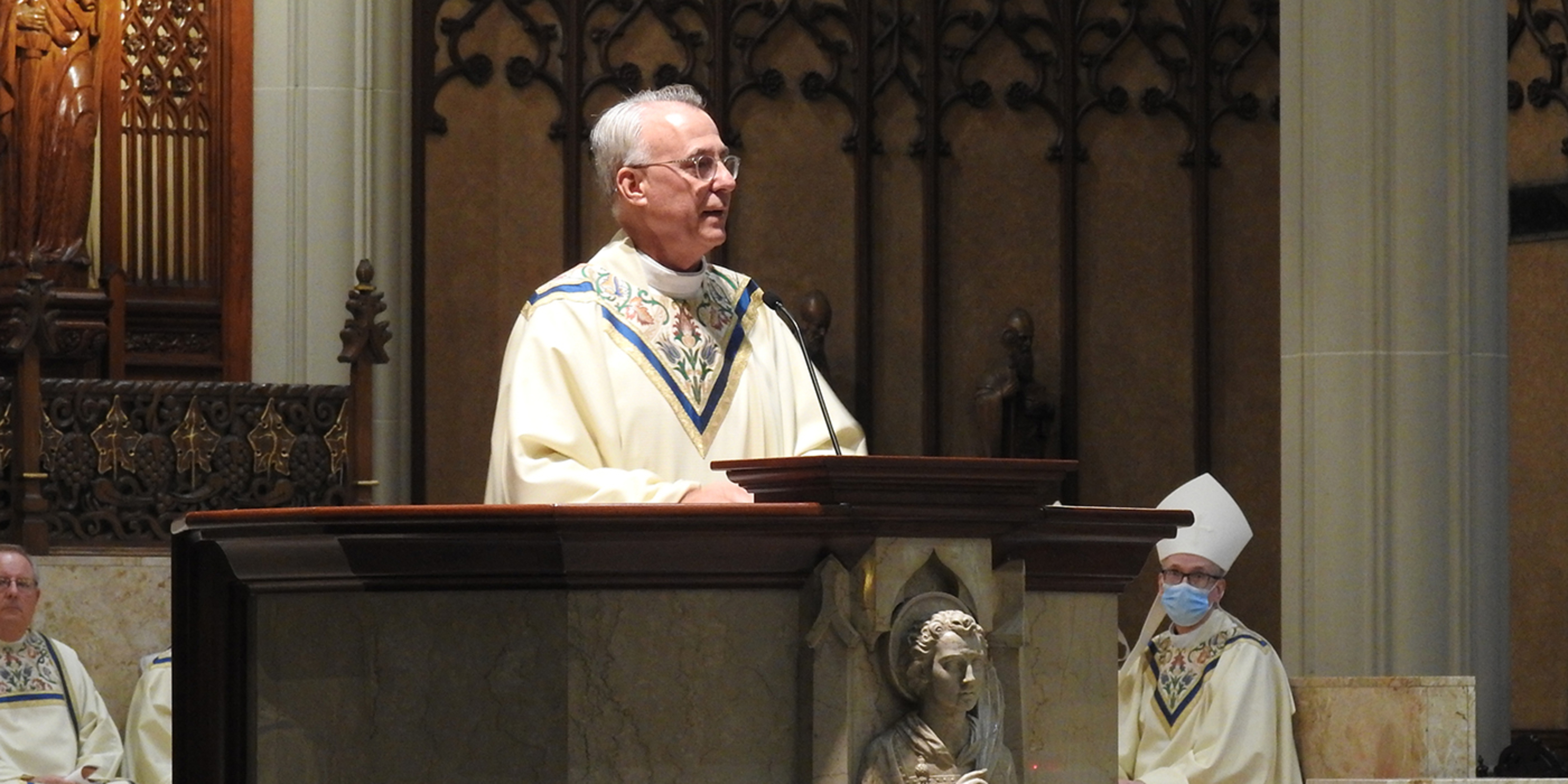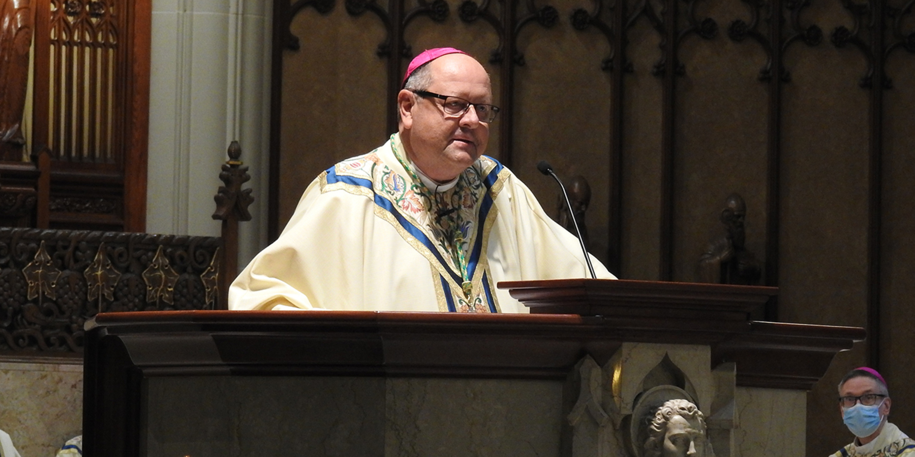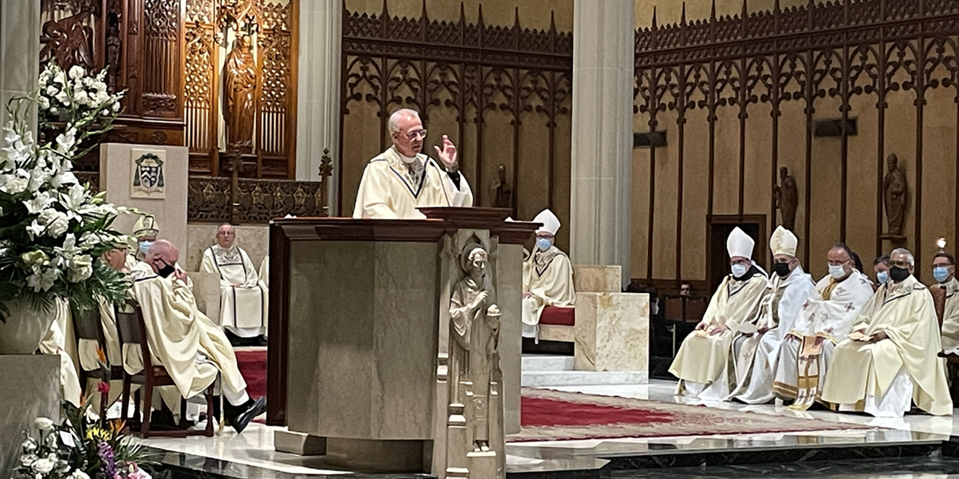 Concelebrating priests included Father Don Oleksiak, vicar general/moderator of the curia; Father Dan Schlegel, vicar for clergy and religious; Father Gary Yanus, judicial vicar; Father Estok; Father Sean Ralph, cathedral rector; Father Larry Jurcak; Father Tom Dragga; Father Lou Miola; Father John Murphy; and Father Georges Haddad, pastor of St. Elias Melkite Catholic Church in Brooklyn. Serving as emcees for the bishops and archbishops were Father Mike Woost, Father Mark Hollis and Father Chris Trenta.