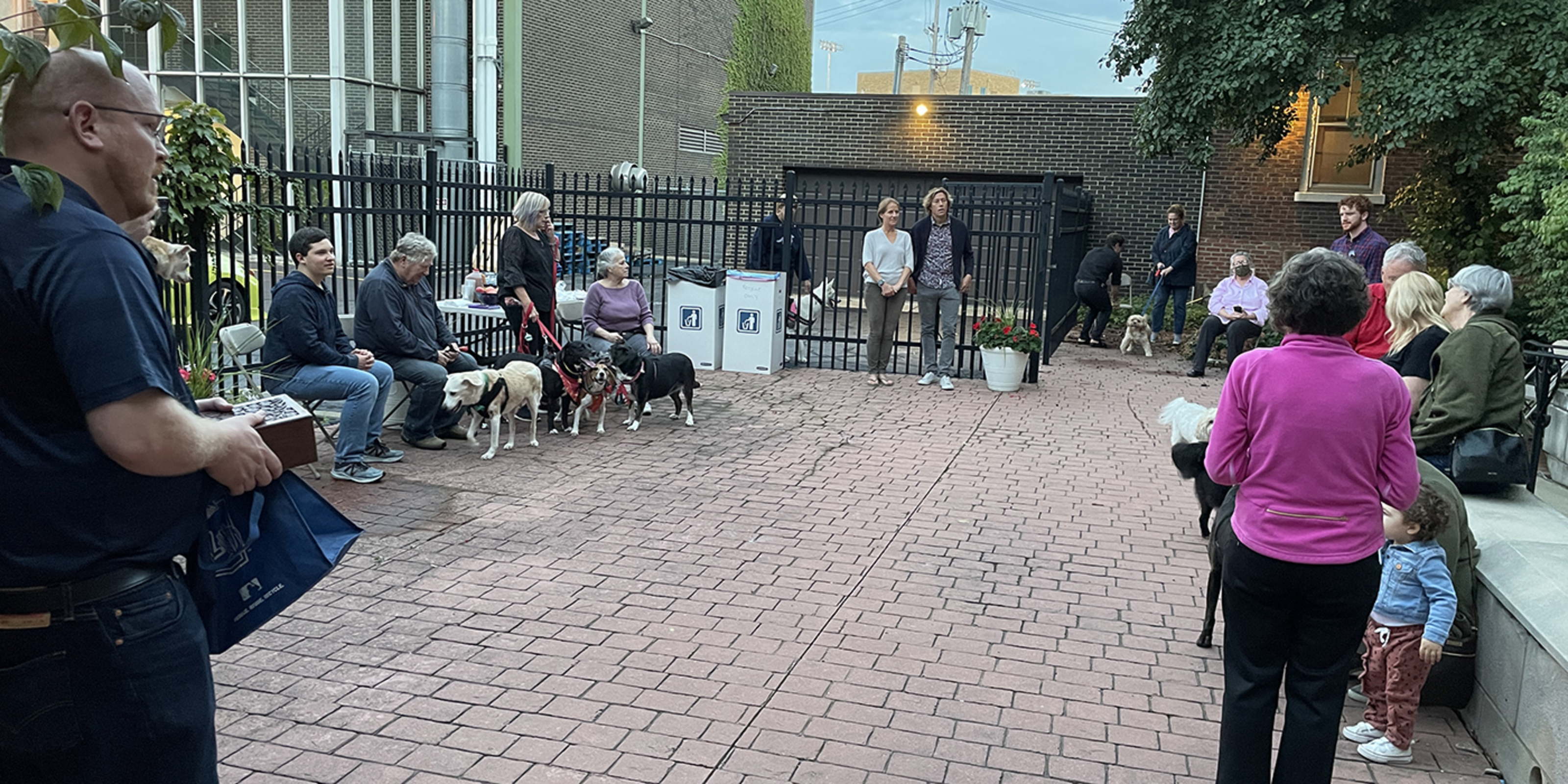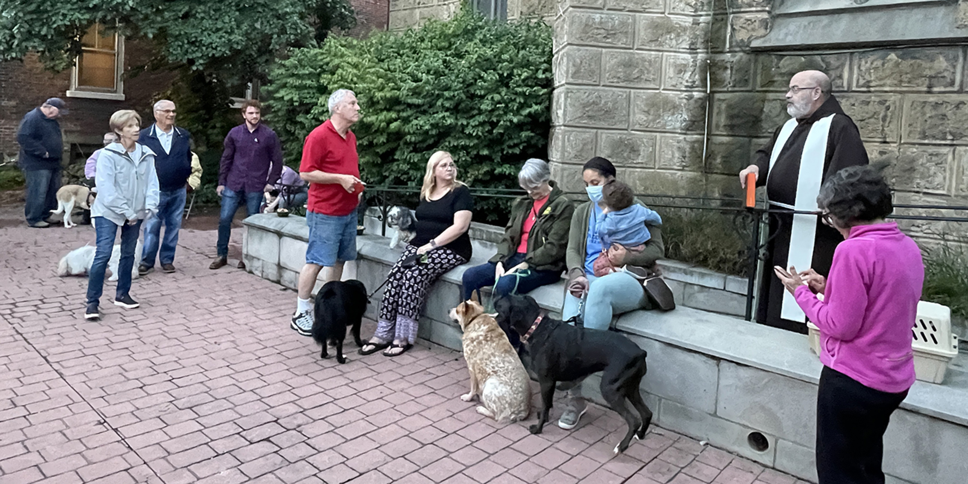 St. Peter Parish at East 17th Street and Superior Avenue in downtown Cleveland hosted its pet blessing on Oct. 4. It was the first “@7 on 17th” event, a new ministry experience for young Catholics in Cleveland’s downtown neighborhoods. Mike Hayes, director of young adult ministry for the Catholic Diocese of Cleveland, worked with Father Damian Ference, vicar for evangelization, and Franciscan Father Phil Bernier, St. Peter’s administrator, to arrange the event.