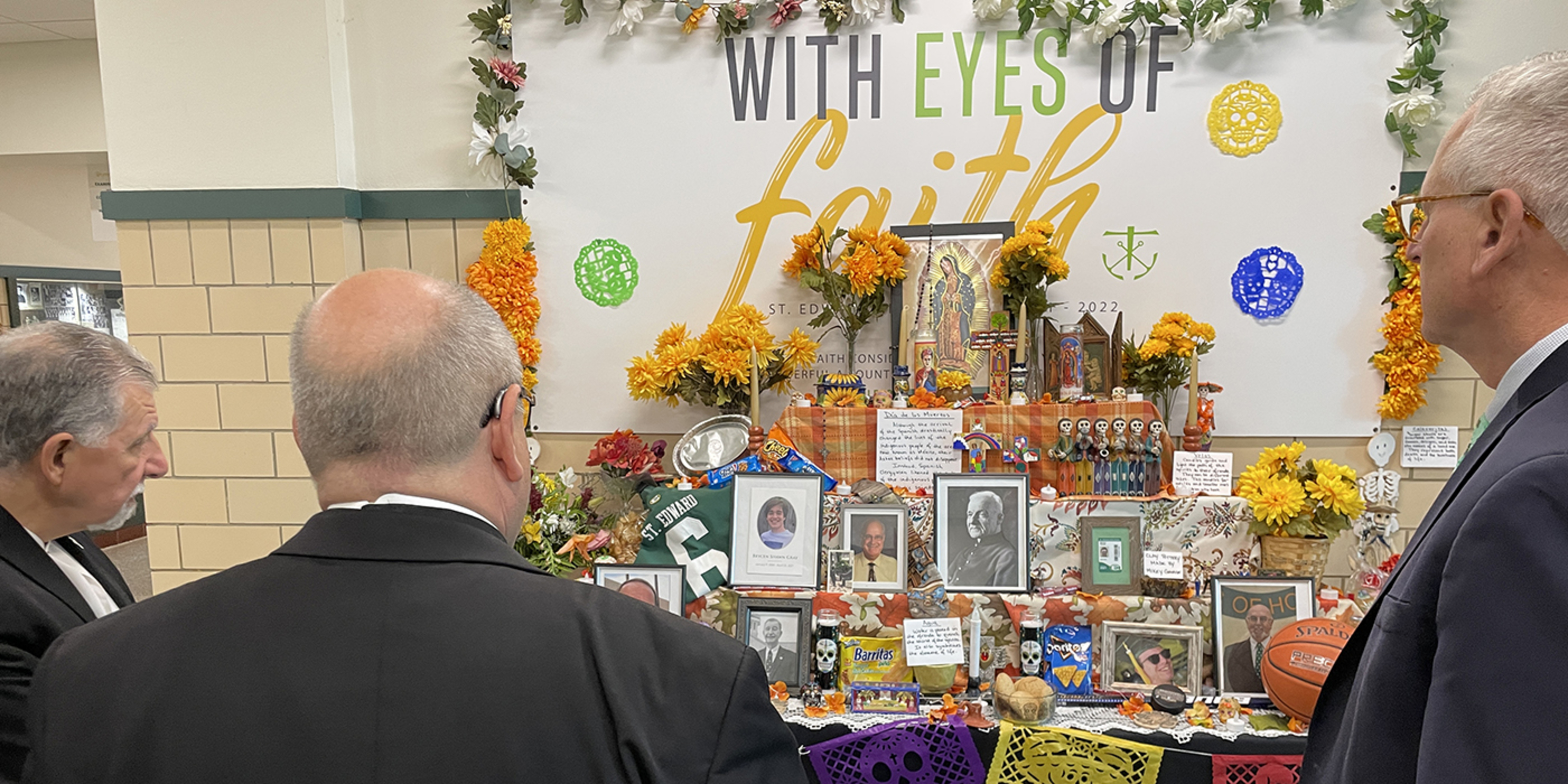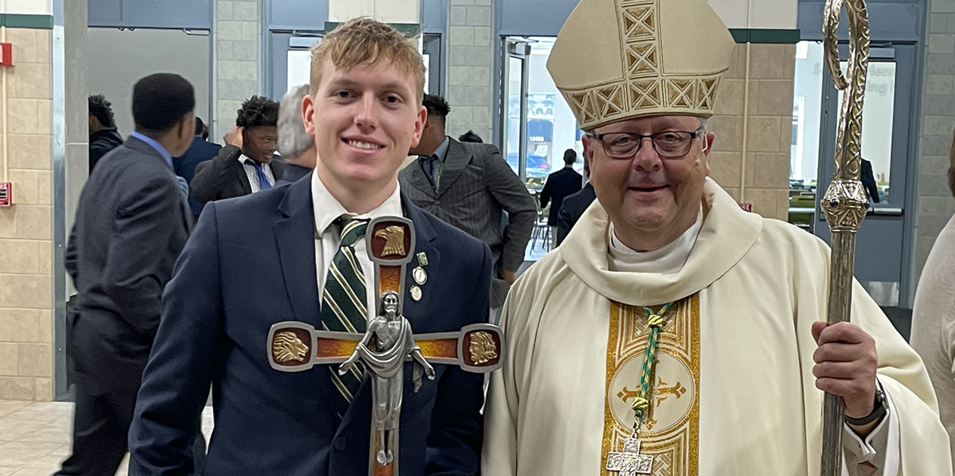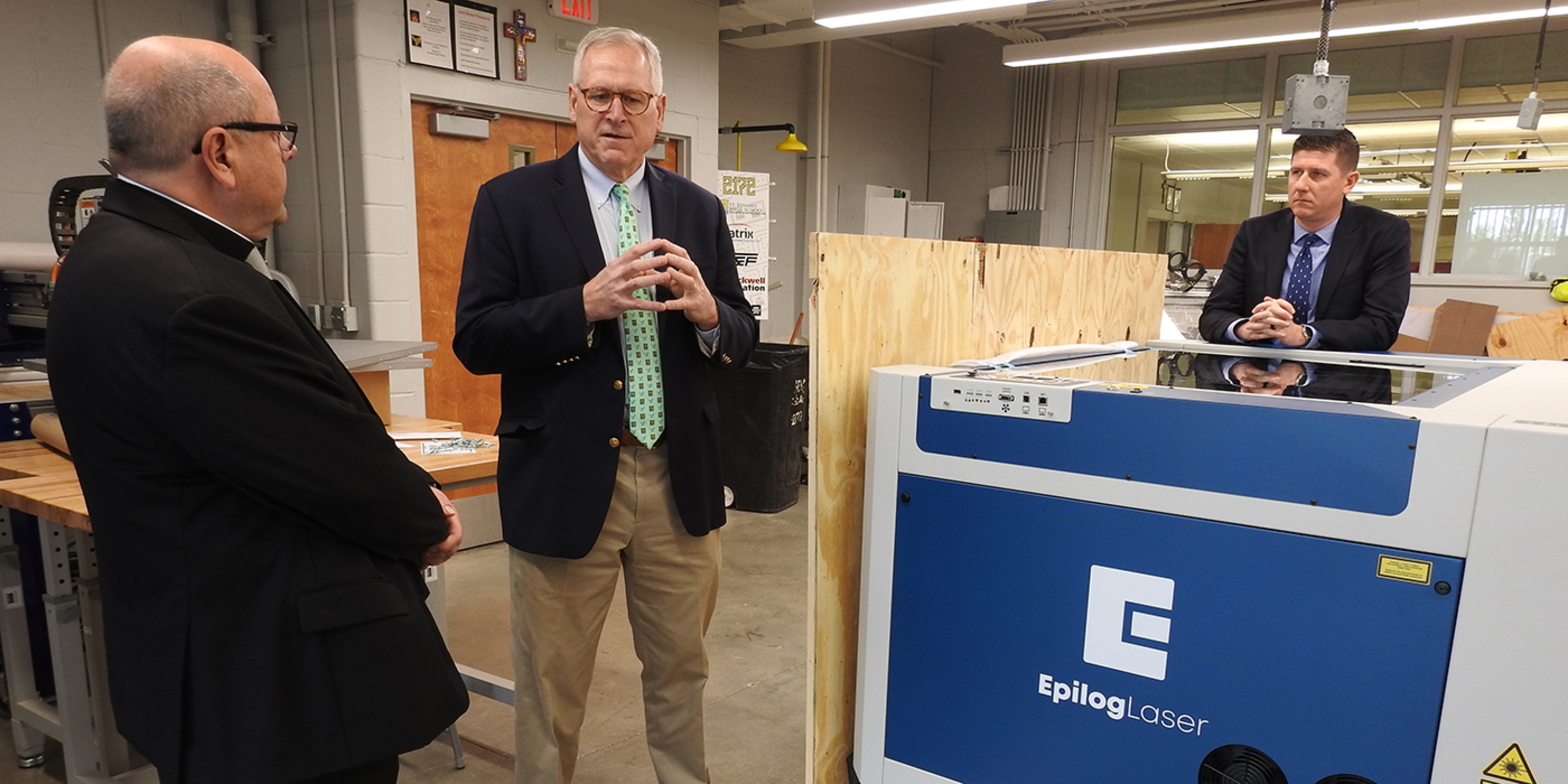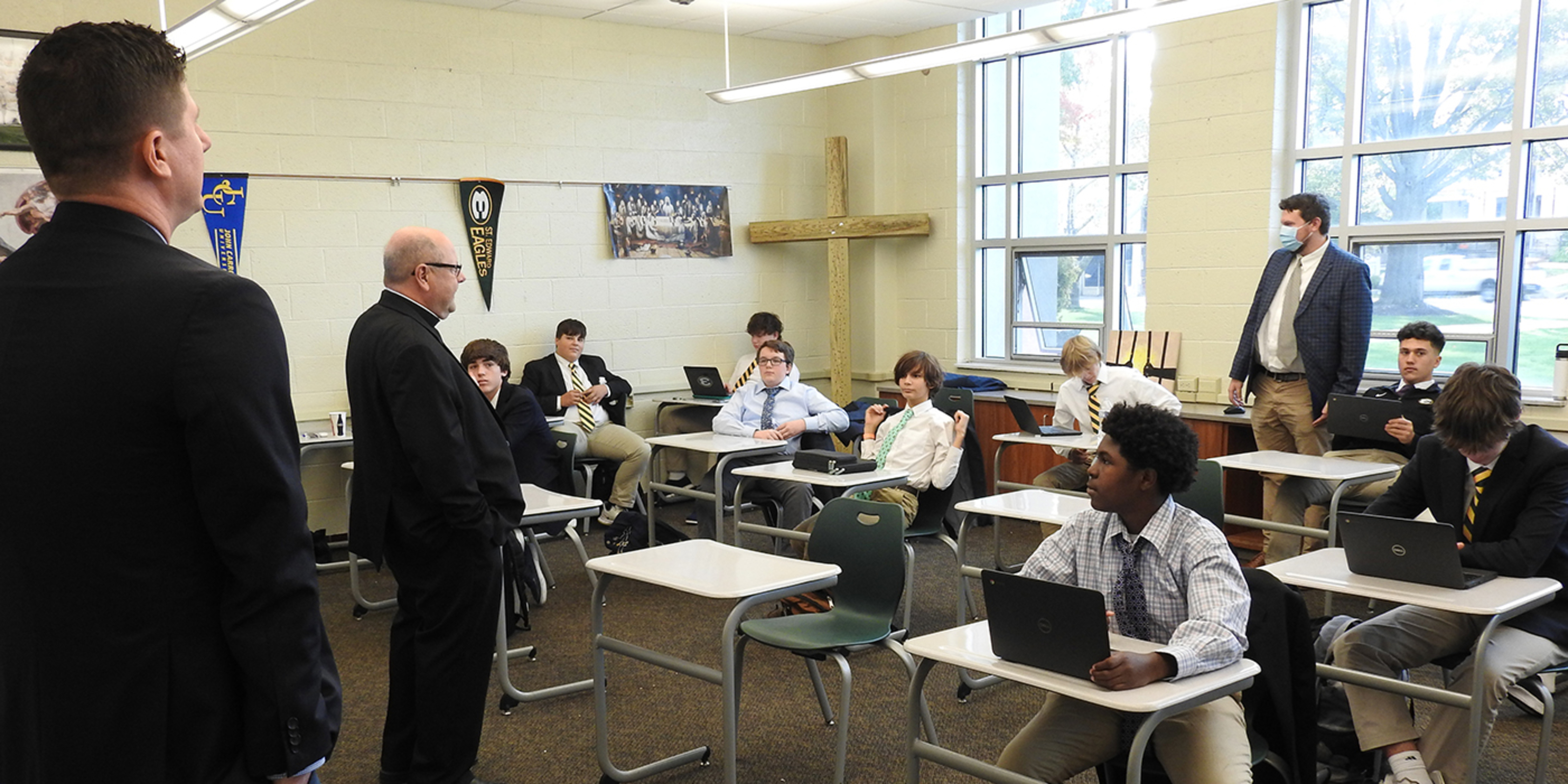 While touring the school with James Kubacki, president, and KC McKenna, principal, the bishop learned about St. Edward’s ministry of hospitality, based on the school’s Holy Cross sponsors. He also learned the school’s four pillars: faith formation, excellence, relationships and servant leadership.