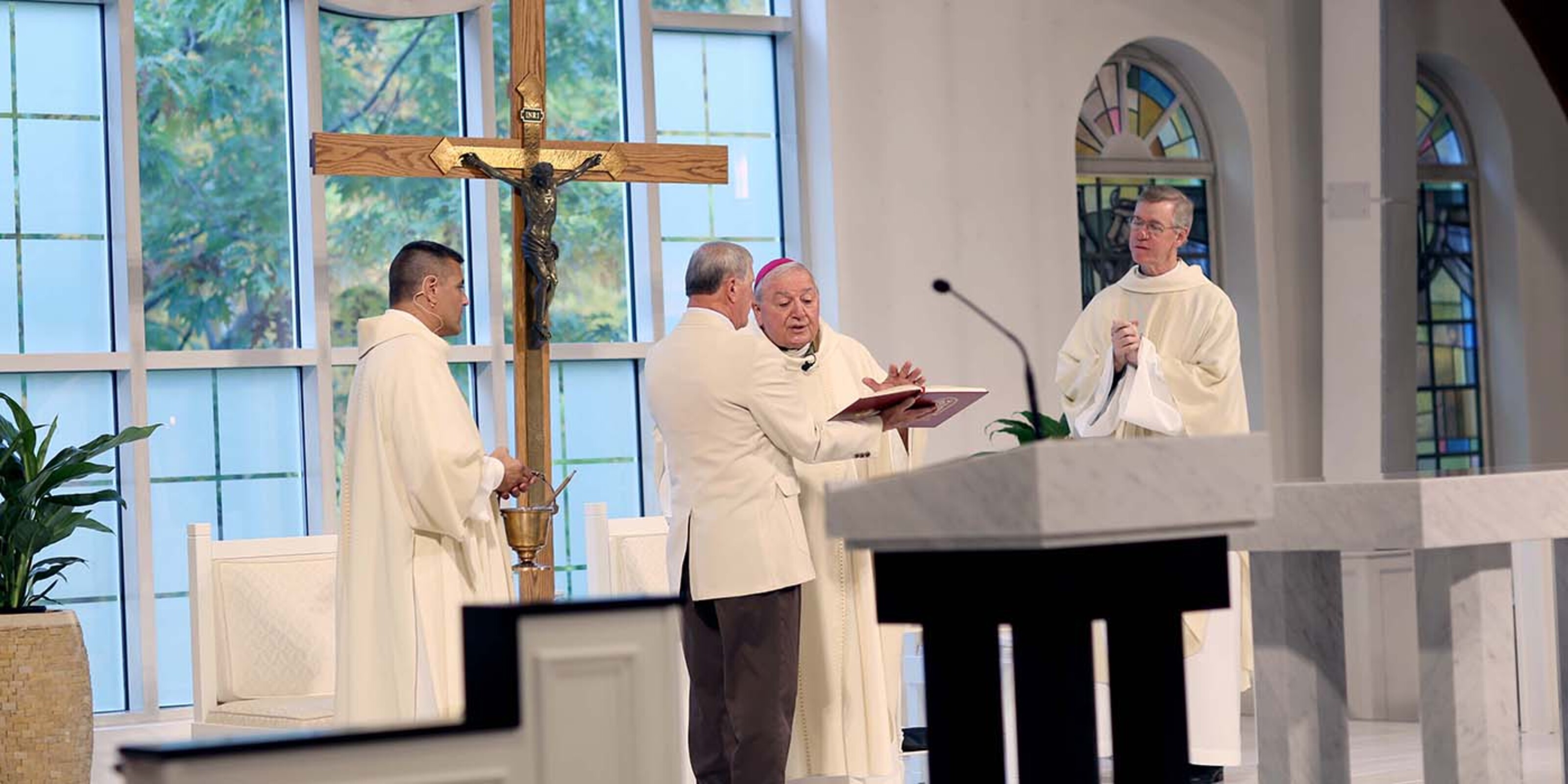 He noted Divine Word Parish has a 44-year history and the altar consecration marks another milestone, “another opportunity to launch into the future with greater evangelical energy. My prayer is that this beautiful new altar and renovated church will inspire even greater devotion to our bridegroom, Christ, and an even greater determination by the people of Divine Word to give witness to their relationship to him and to bring more people into the life of his bride, the Church. Congratulations and God bless the entire Divine Word family,” Bishop Gries said.
