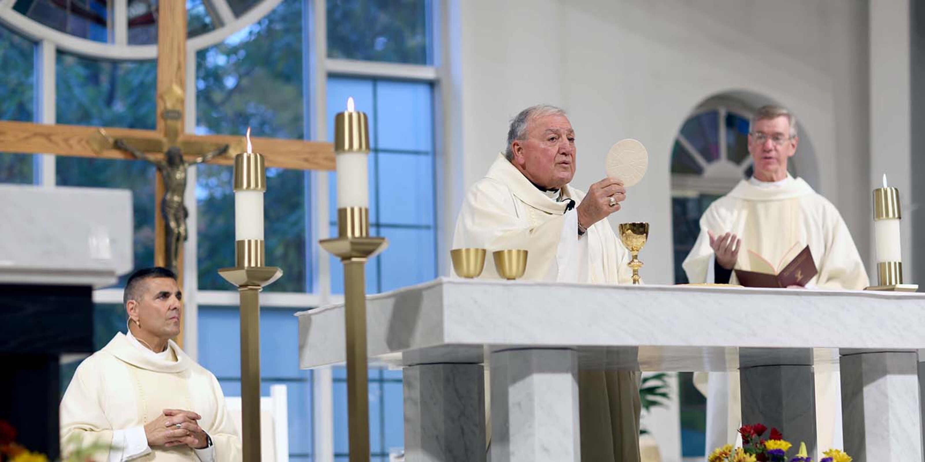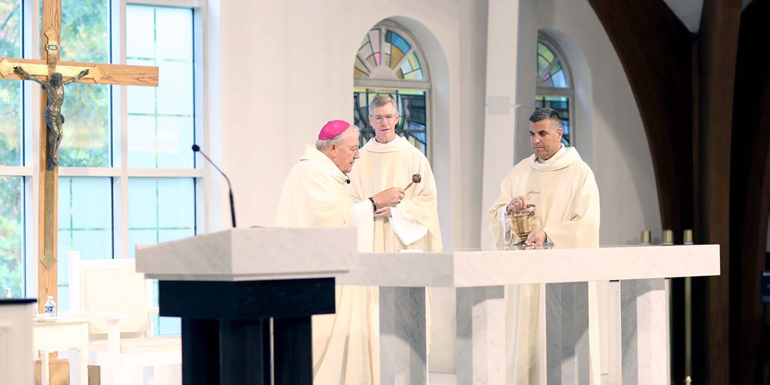 The focal point in a Catholic church is the altar. During recent renovations to the sanctuary at Divine Word Church in Kirtland, the parish commissioned and installed a new marble altar. During Mass on Oct. 30, Auxiliary Bishop emeritus Roger Gries blessed and dedicated the new altar. Concelebrating the liturgy was Father Dave Woost, Divine Word pastor, and assisting was Deacon John Grazia.