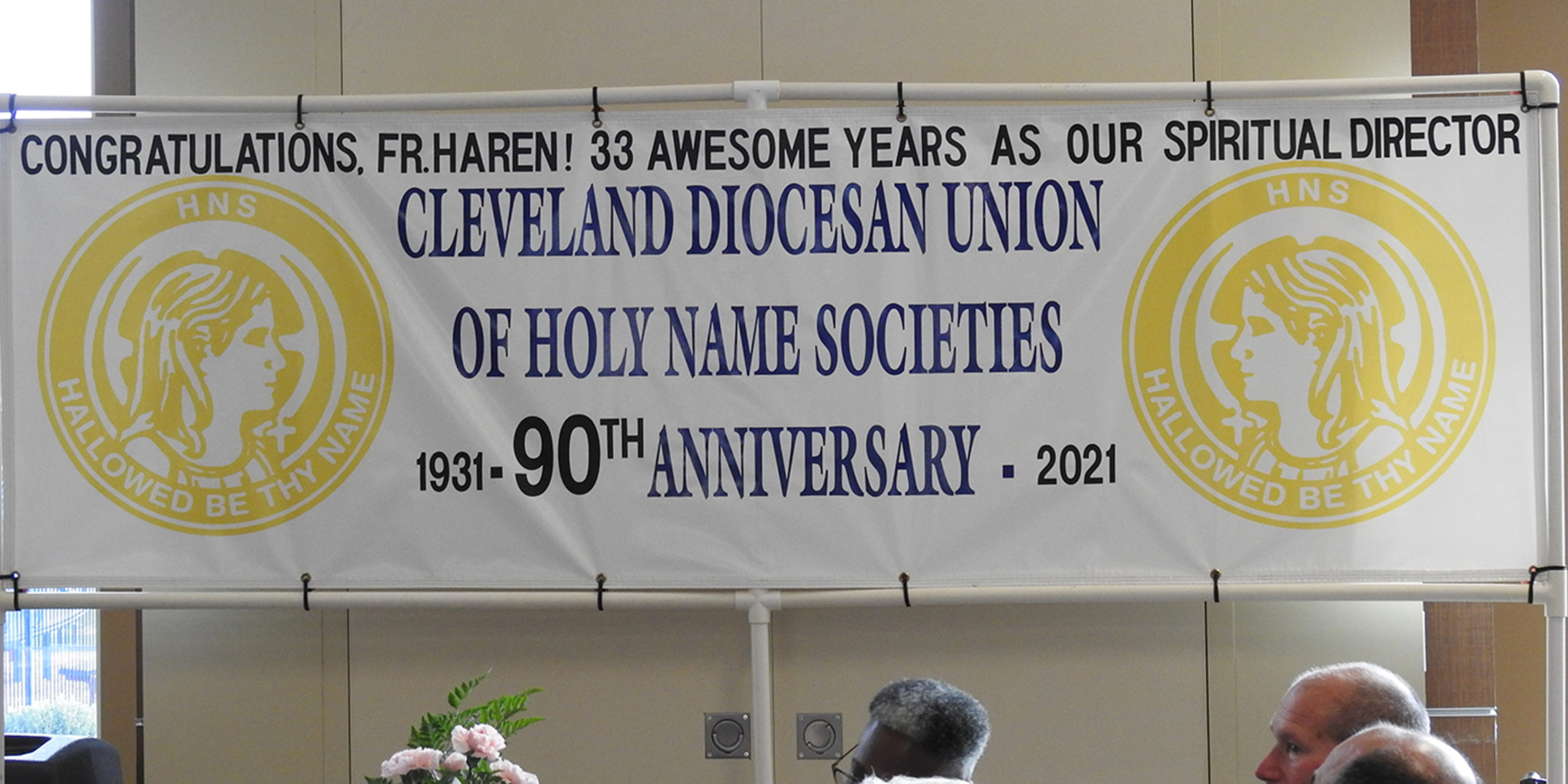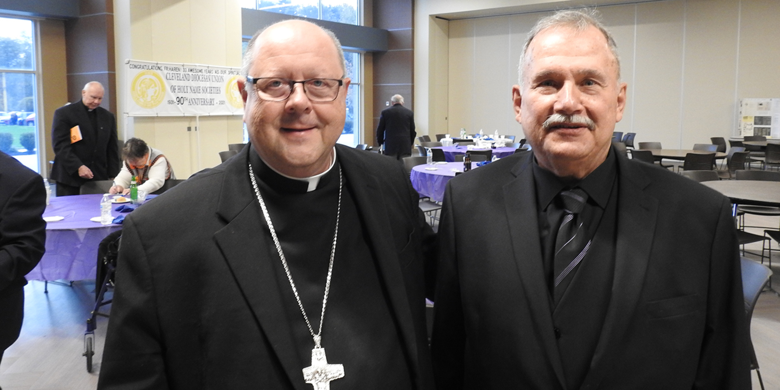 Members of the Cleveland Diocesan Union of Holy Name Societies had two reasons to celebrate at the 65th annual Bishop’s Banquet on Oct. 31. First, they welcomed Bishop Edward Malesic to the event for the first time since it was canceled last year because of the pandemic. Second, the group paid tribute to Father Tom Haren, pastor of St. Monica Parish in Garfield Heights, who has been their spiritual moderator for 33 years. About 150 attended the event.