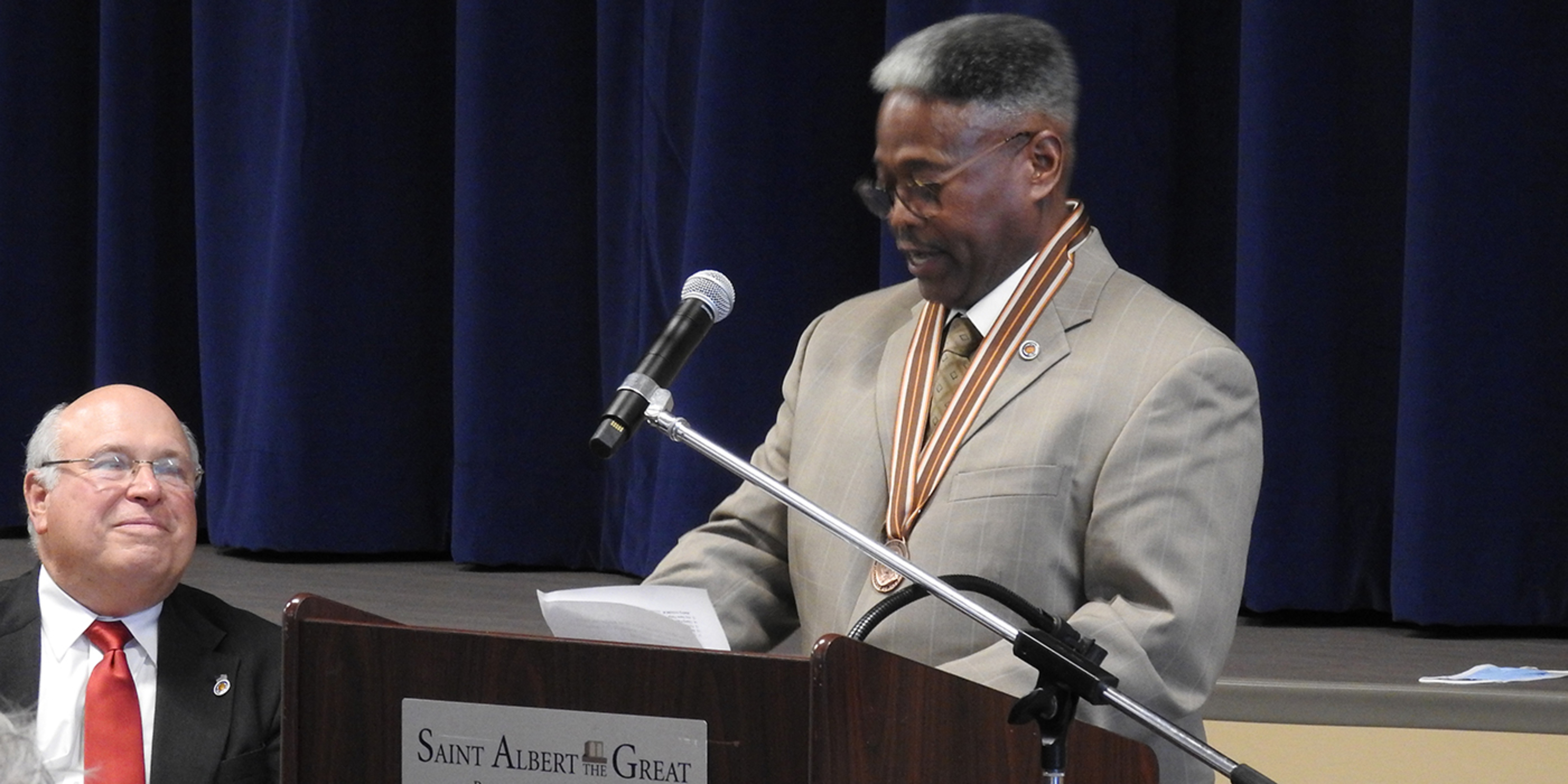In addition to awards presentations, there were presentations by the bishop, Father Haren, a welcome by Father Ed Estok, St. Albert the Great pastor, and remarks by Jim Joyce, diocesan Holy Name president, and Jerry Bacher, diocesan past president. David Deschler served as master of ceremonies once again and Deacon Joseph Litke, Southwest Deanery spiritual advisor, offered prayer before the meal.