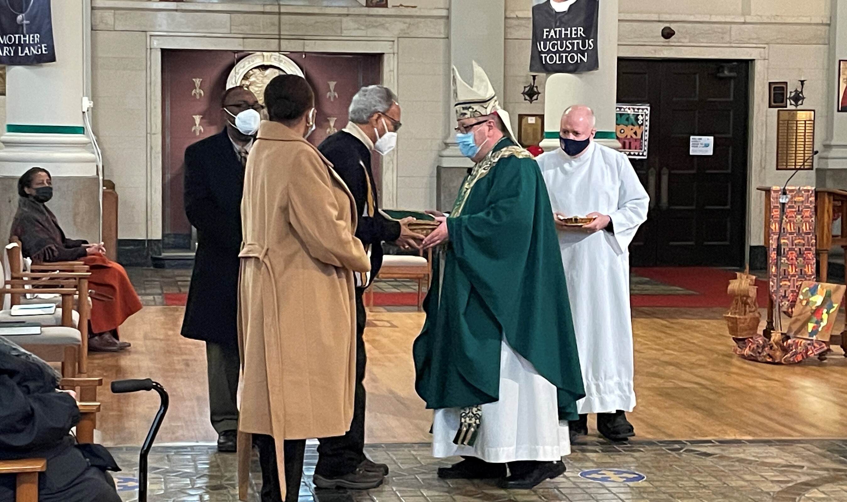 “I am also honored to be here during Black History Month and to experience firsthand the rich culture that you bring to the body of Christ,” Bishop Malesic said. Referring to the banners hanging in the church and displaying heaven’s faces of color, he said, “May we be inspired to follow the call of Jesus without fear – and to make him known,” something he said the parish evangelization committee is working toward. The banners honor people who answered Jesus’ call to follow him without fear, he added.