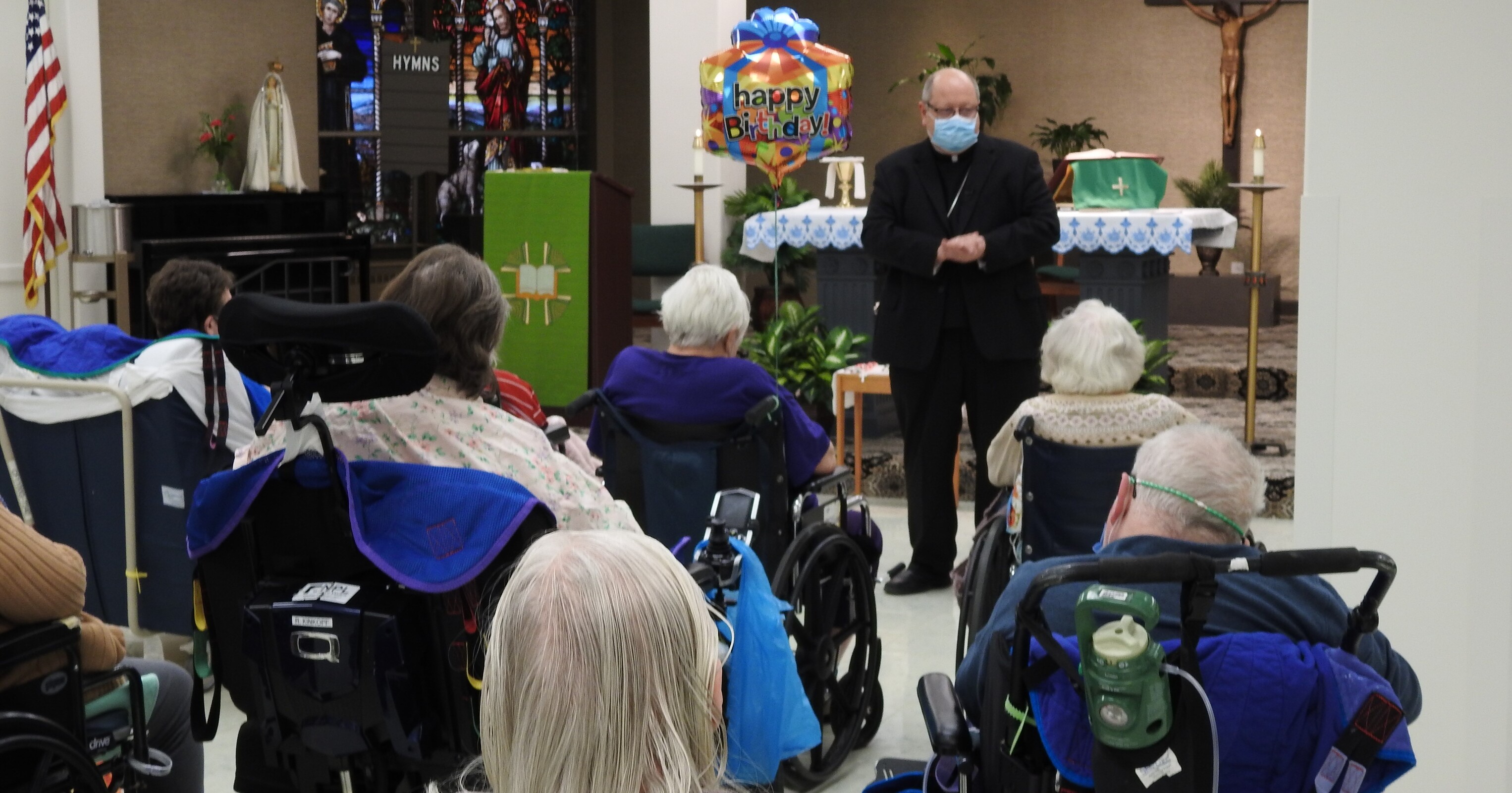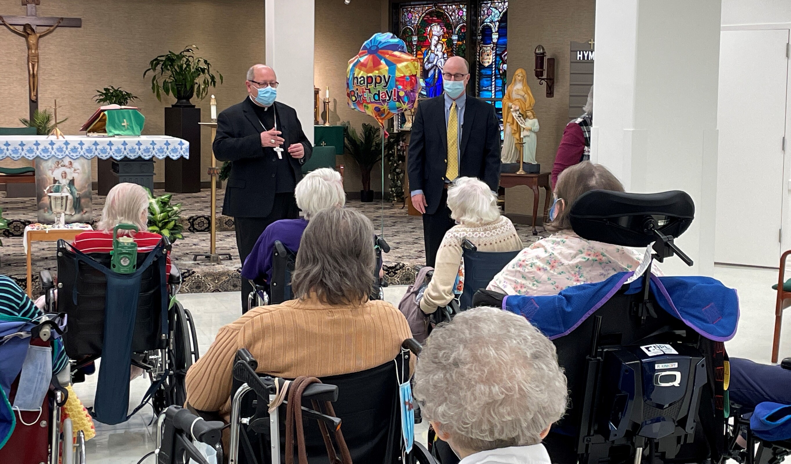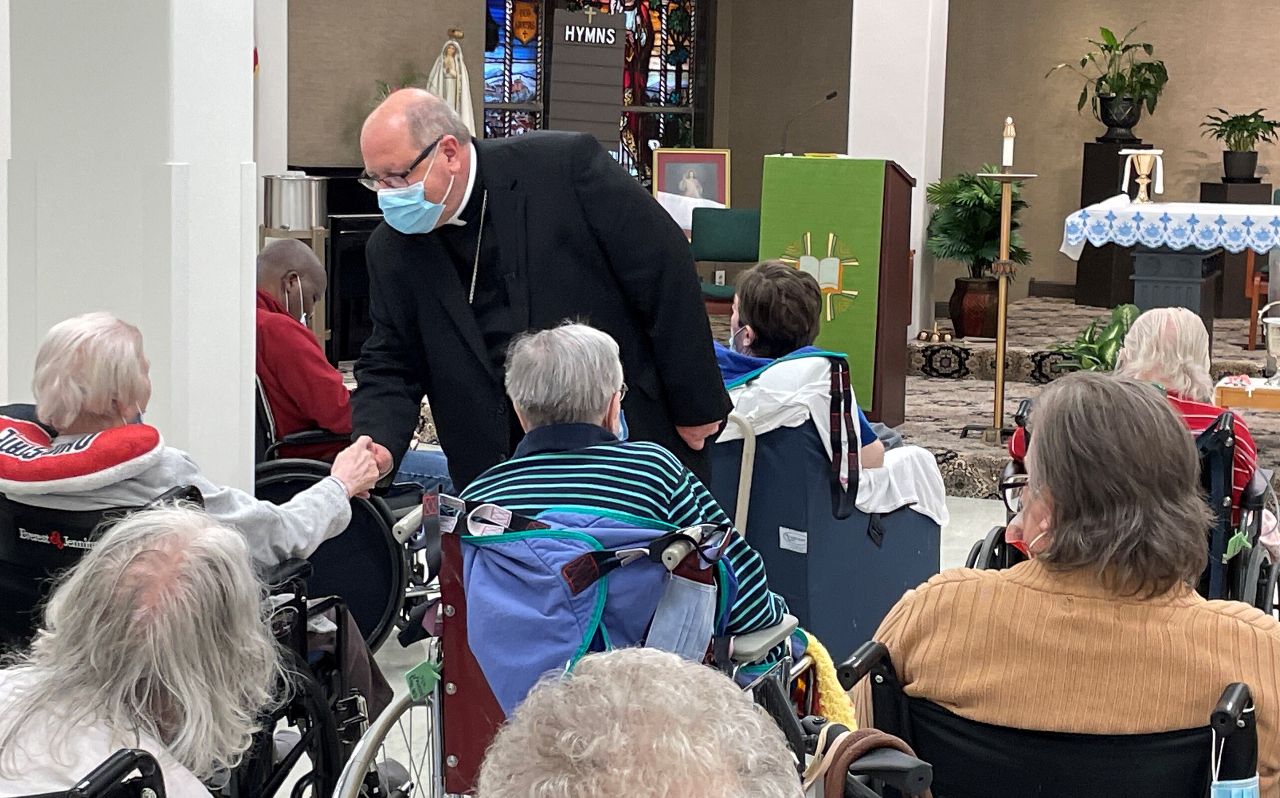 “You are so special to me and to those you love,” Bishop Edward Malesic told a group of St. Augustine Manor residents during a visit to the facility on Feb 8. They group had gathered in the chapel to pray the rosary. The Manor is part of St. Augustine Health Ministries, a Catholic Charities agency that provides home health care, assisted living, skilled nursing and rehabilitation, long-term care, hospice and more. (See photo gallery above.)