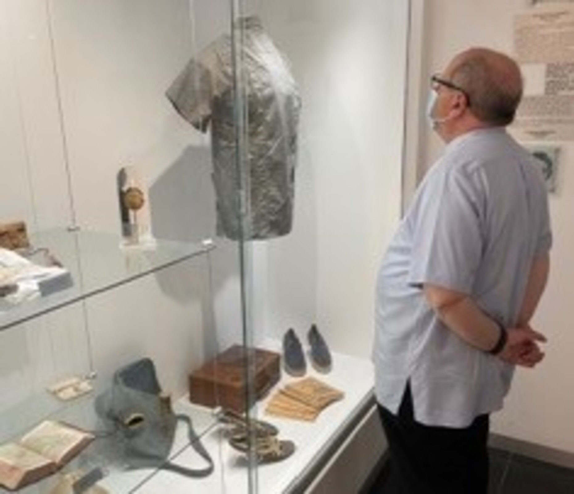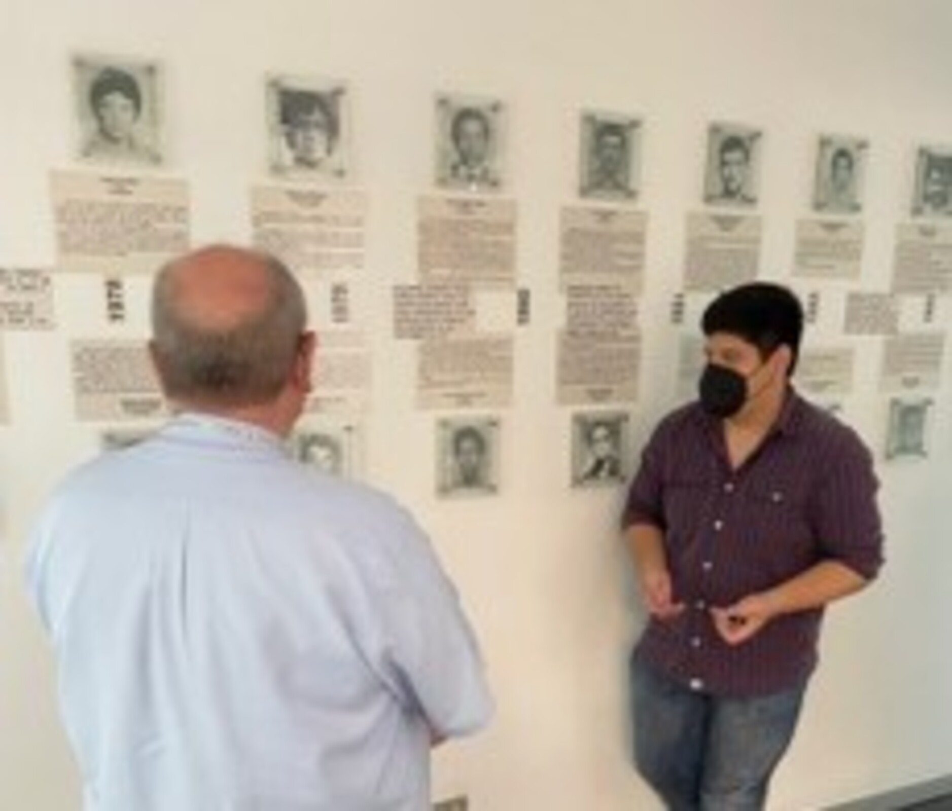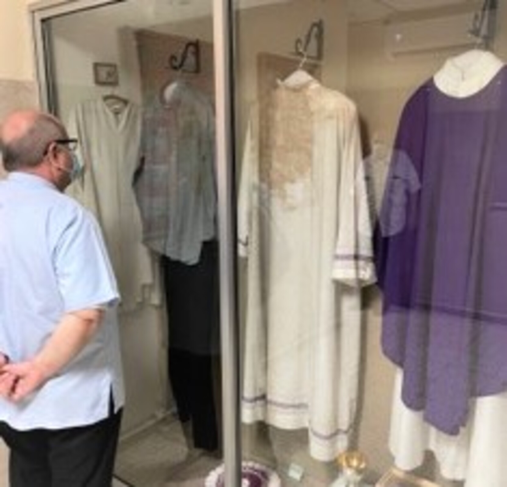 After lunch, they toured the Museum of Salvadoran Martyrs on the campus of the University of Central America. The museum honors the bishops, priests, religious and laity who suffered martyrdom. Their memories are preserved through photos, clothing, other artifacts and even the earth where they shed their blood. Among the items Bishop Malesic viewed was the blouse Ursuline Sister Dorothy Kazel was wearing when she, two Maryknoll sisters and lay missionary Jean Donovan were murdered on Dec. 2, 1980. Sister Kazel and Donovan were from the Diocese of Cleveland. A UCA student guided the group through the museum.