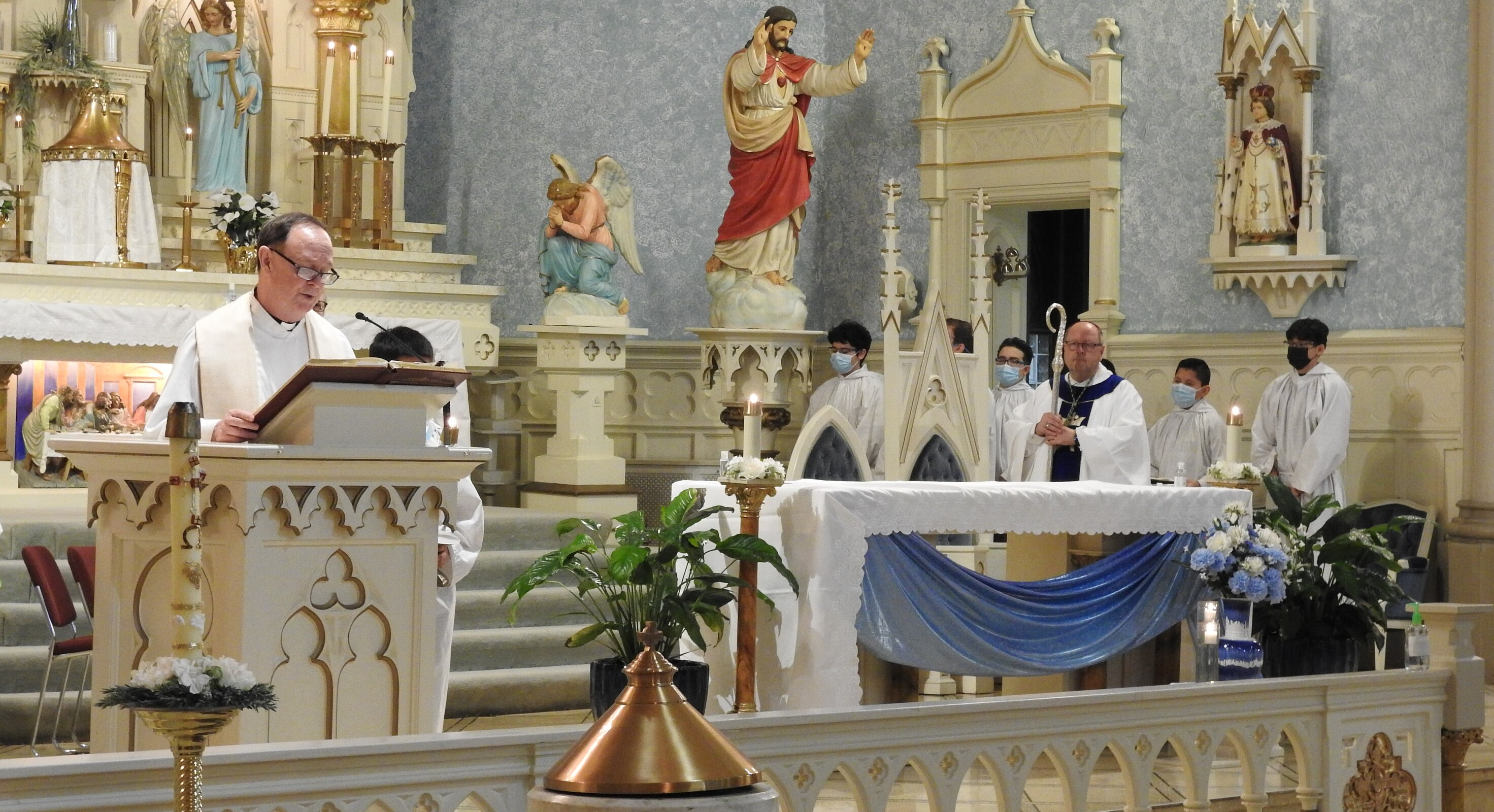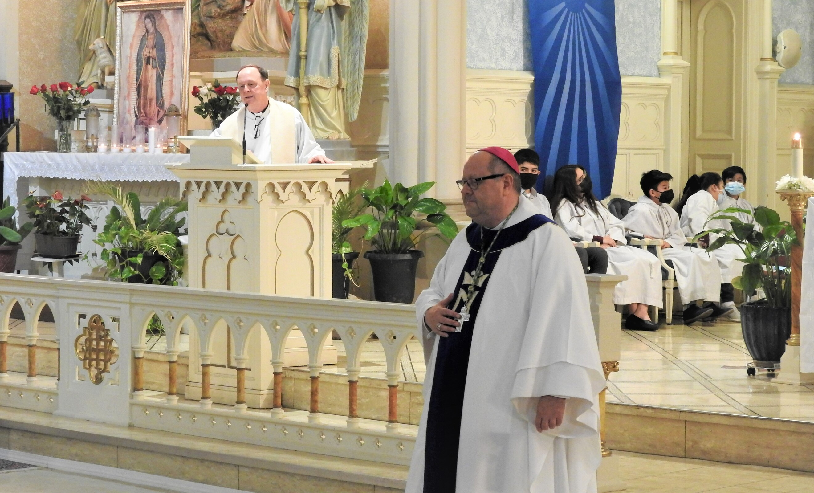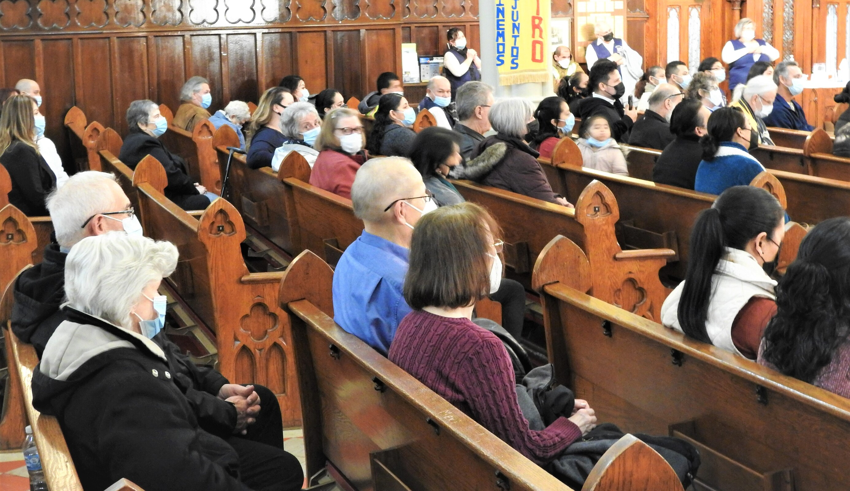 The bilingual Mass in Spanish and English attracted quite a few people. Father Joseph Callahan, pastor, welcomed the bishop before Mass.
