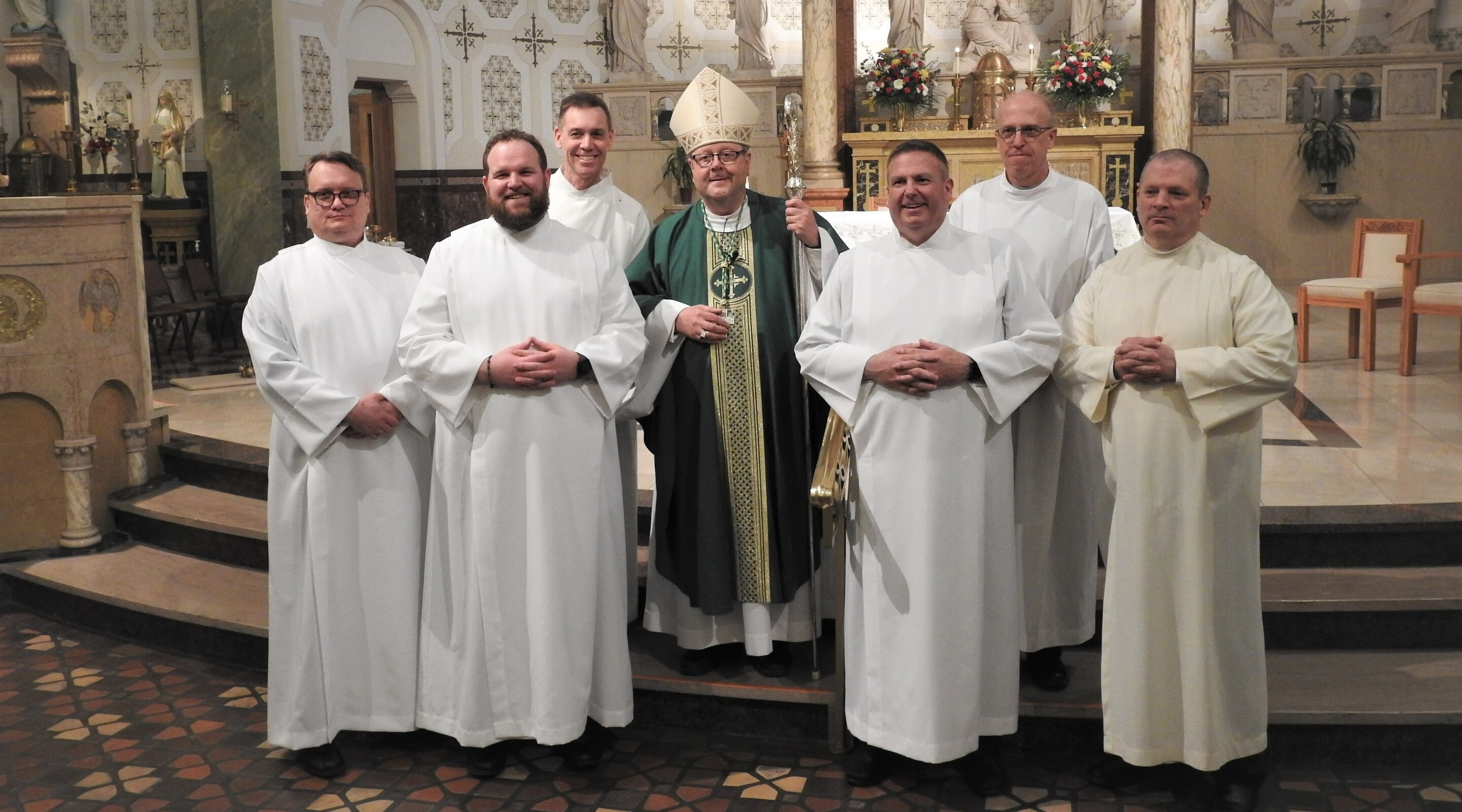 St. Vitus Church in Cleveland hosted the Feb. 19 liturgy during which six men studying for the permanent diaconate were instituted into the ministry of acolyte by Bishop Edward Malesic. The men are in the third year of the four-year formation program, according to Deacon Dave Kushner, director of the permanent diaconate program for the Catholic Diocese of Cleveland. Deacon Kushner said they are on track for ordination to the diaconate next year.