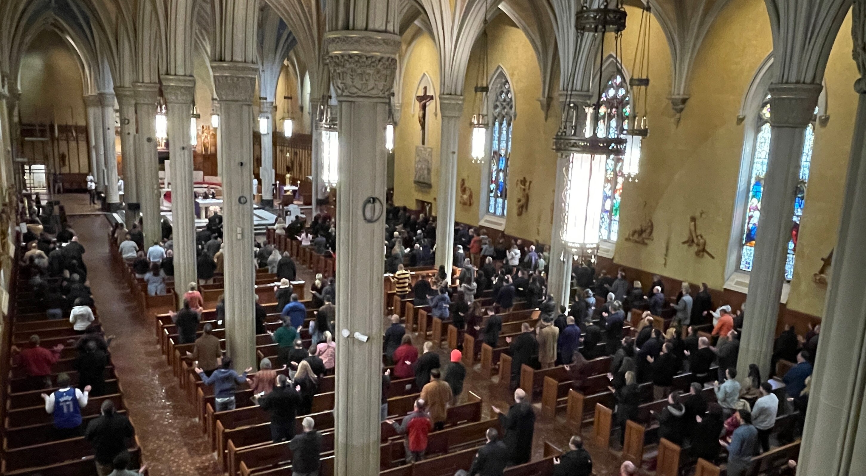 The cathedral Mass schedule is 7:15 a.m. and noon Monday through Friday; 4:30 p.m. vigil Mass on Saturdays; and at 8 and 10:30 a.m., 12:15 and 5:30 p.m. on Sundays. The noon daily Mass and 10:30 a.m. Sunday Mass are livestreamed.