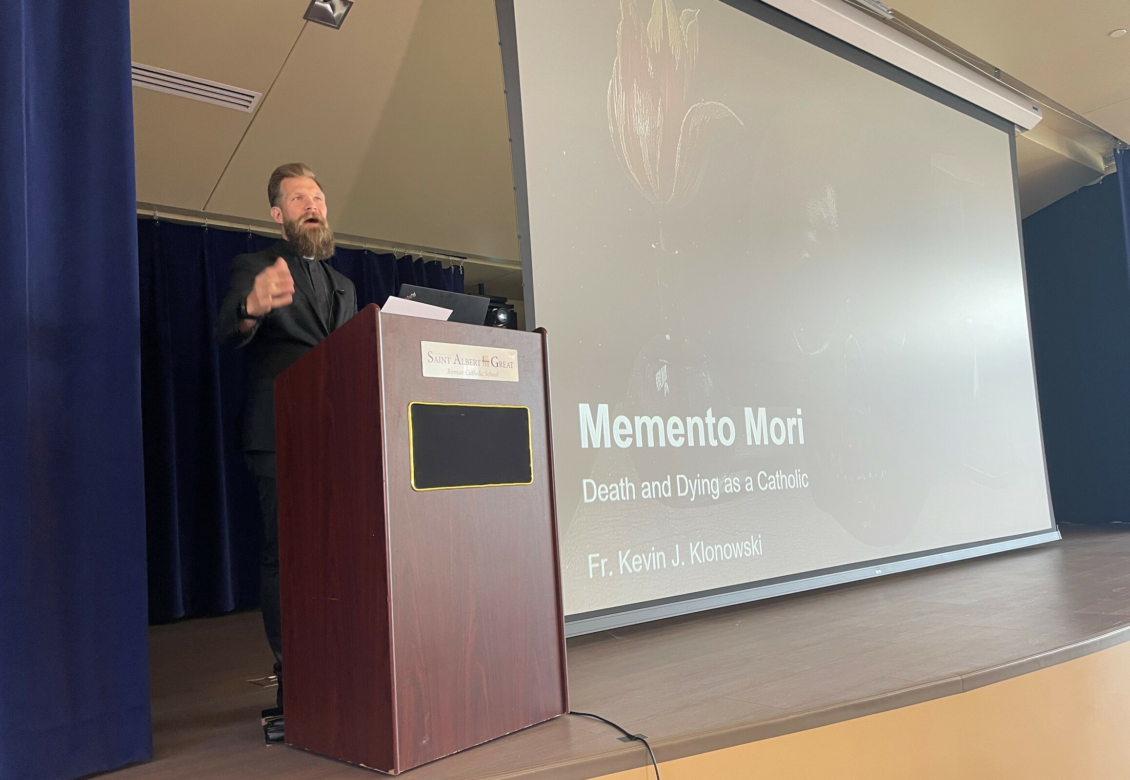 The first speaker, Father Joseph Koopman, vice rector and professor of moral theology at Saint Mary Seminary and Graduate School of Theology, set the stage for the conference. He explored how the truth of Christian love embraced by Catholic values runs counter to false notions of love that often are perpetuated in certain realms of society and medicine to support anti-life practices such as euthanasia and abortion.