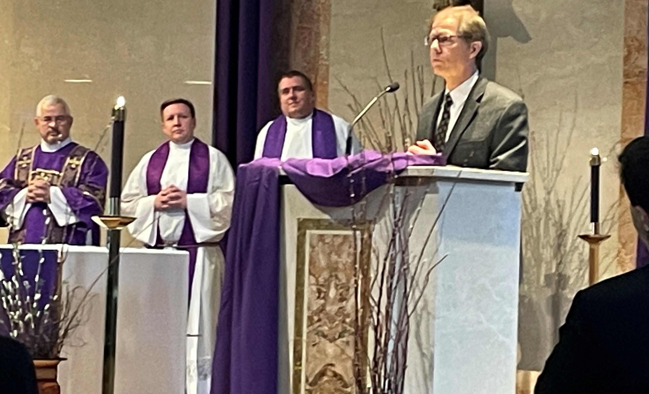 Bishop Edward Malesic celebrated Mass to start the event. He began his homily with a plea to pray for the people of Ukraine, as well as the unborn, the elderly and other vulnerable populations. In further recognition of the conference topic, the bishop shared some of the difficulties that his own family faced while trying to find a suitable rehab facility for his 104-year-old father, who recently suffered a fall. Fortunately, after some searching, they found a place with a good reputation.