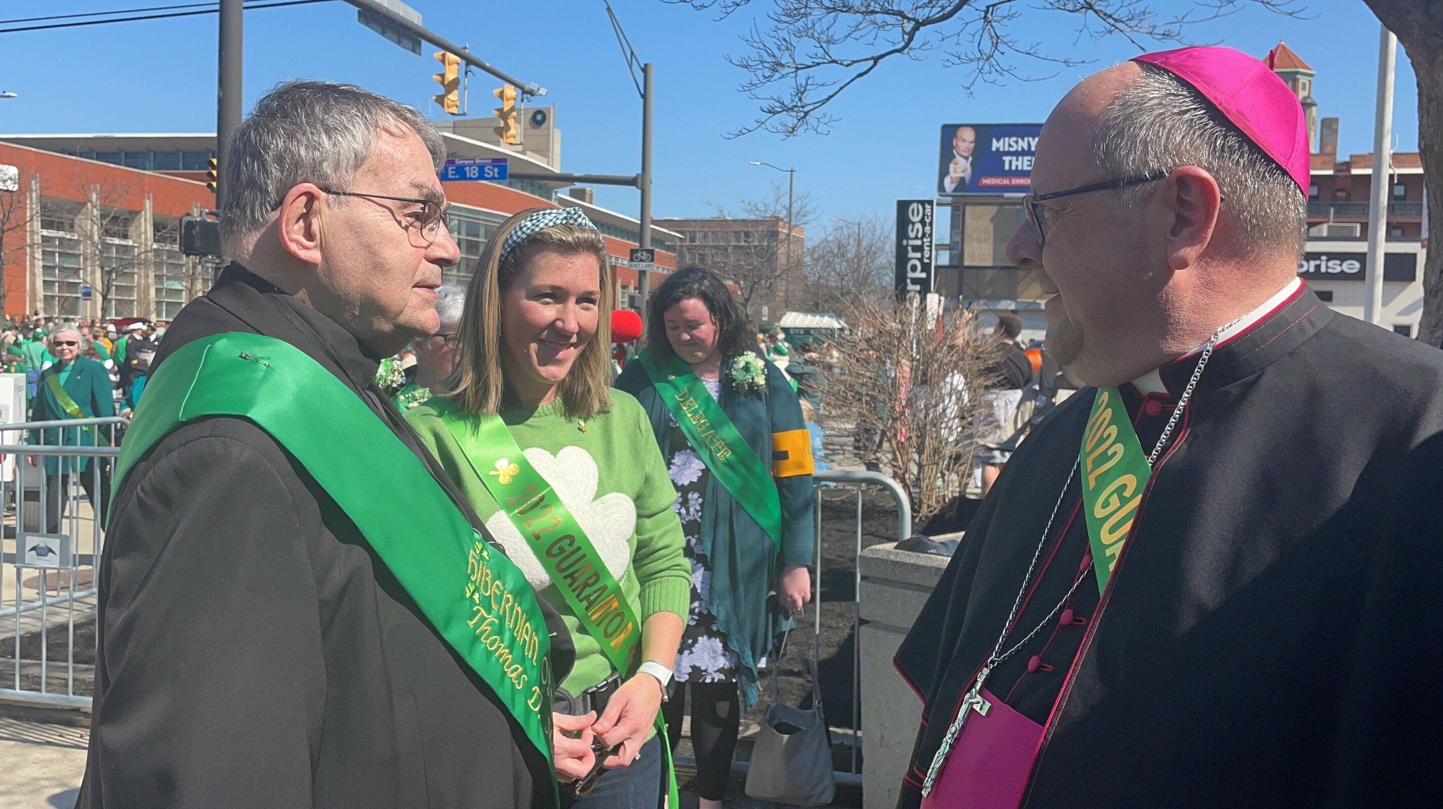 The bishop recalled celebrating a scaled-down St. Patrick’s Day Mass for the WSIA Club last year, saying he was looking forward to the full-scale Mass and parade. “And God has provided the good weather for it,” he added, pointing out the warm, sunny day.