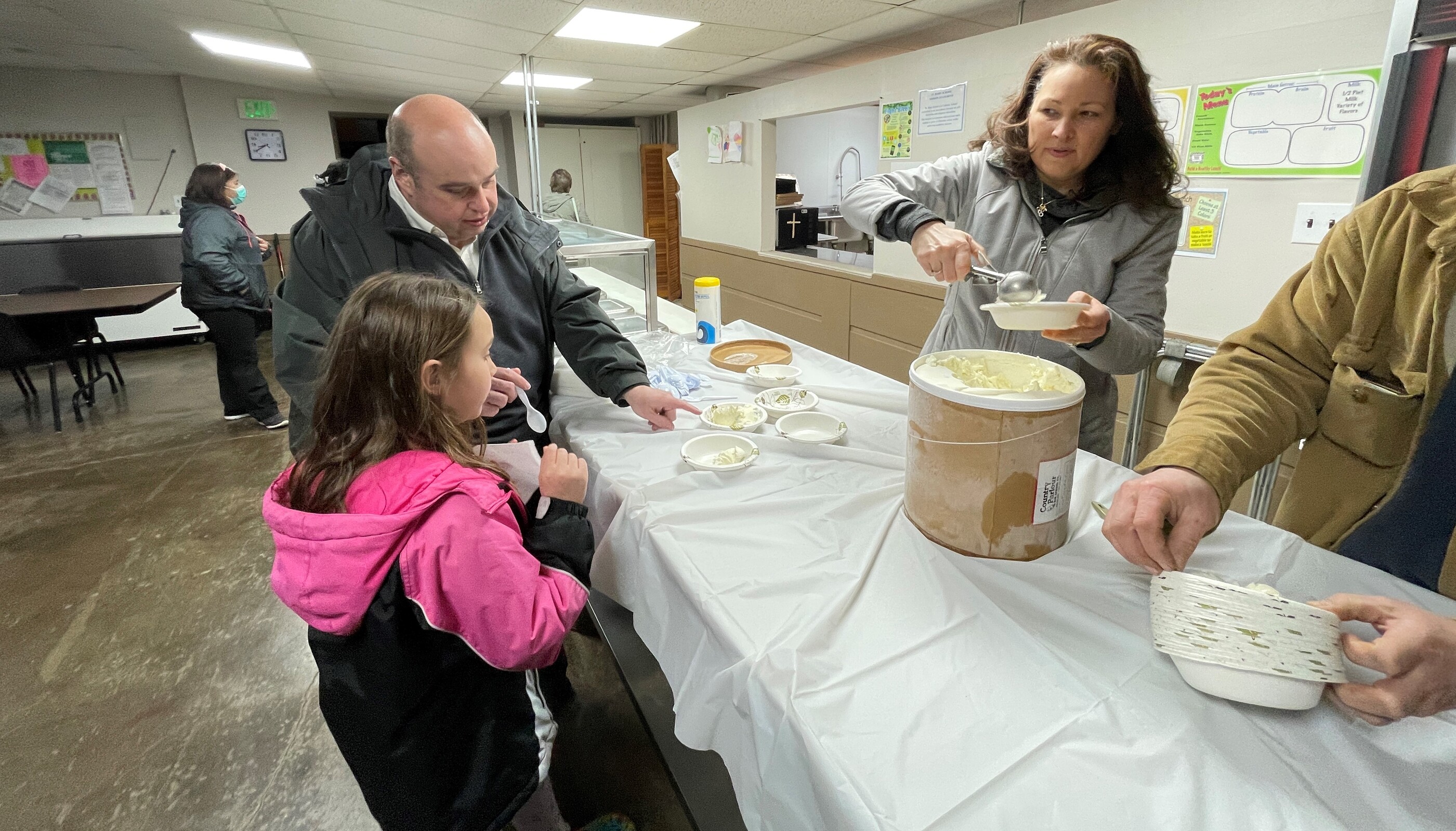 Country Parlour Ice Cream in North Royalton created a custom flavor – Gratia Plena (full of grace) – for the host parishes to serve. Father Ference said it was a coconut cream ice cream with chocolate balls covered with a blue candy shell. The white ice cream base symbolizes Mary’s purity and the blue candies are a Marian blue.