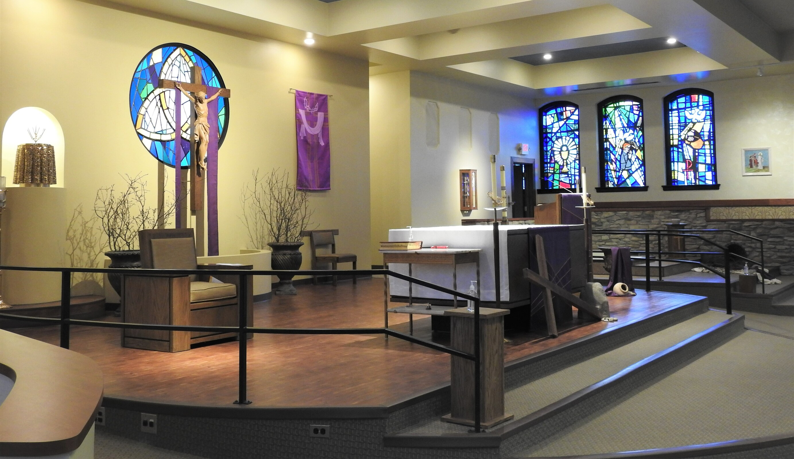 Father Warner, Blessed Trinity’s founding pastor, said he empowered parishioners to renovate the sanctuary to make it more functional. “God blessed our efforts,” he added. Also, in the hall are framed stained-glass windows and statues taken from the three parishes and repurposed to reflect their unity as the new parish, while honoring the history of each.