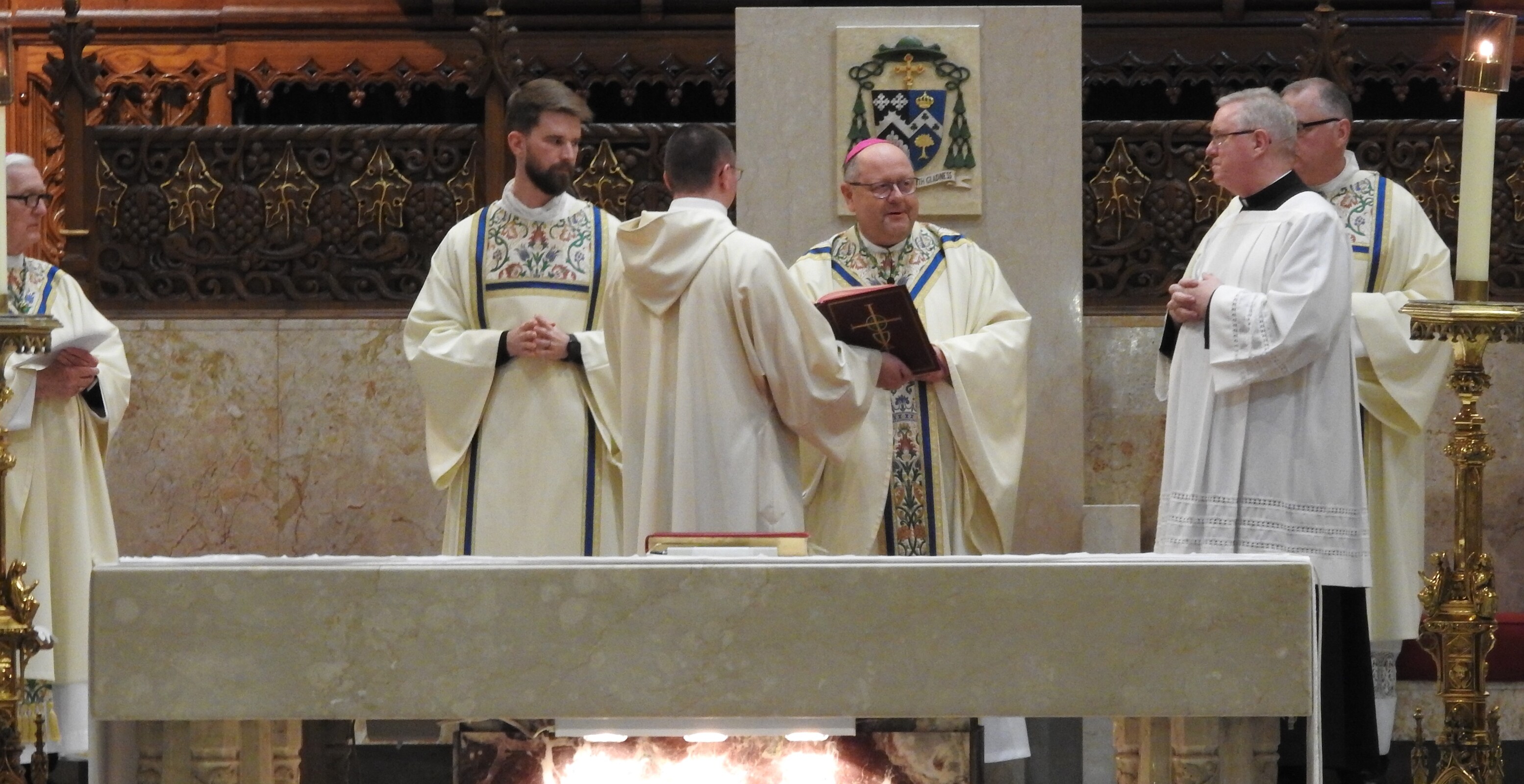 The Mass was attended by many priests and deacons of the Diocese of Cleveland. Concelebrants included Auxiliary Bishop emeritus Roger Gries, Bishop Martin Amos, retired bishop of Davenport, Iowa, and Abbot Gary Hoover, OSB. Prior to the Mass, the priests gathered for a speaker and fellowship before heading to the cathedral, where they renewed the priestly promises made at their ordination.
