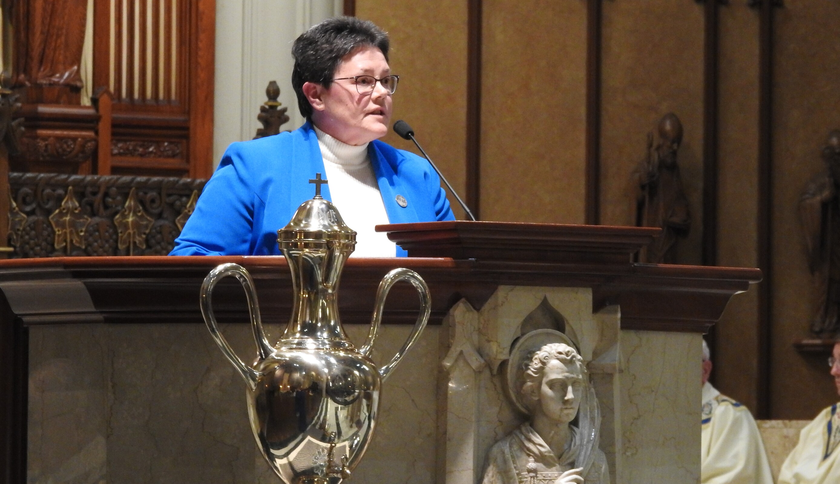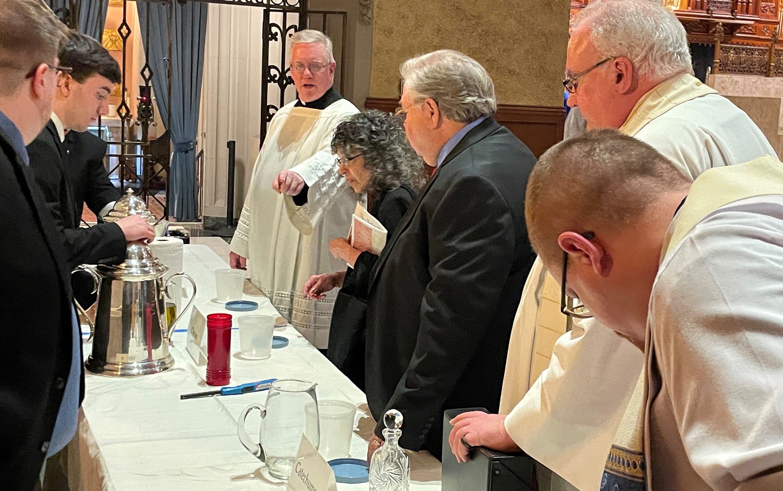 During the liturgy, Bishop Malesic blessed the holy oils and sanctified the chrism which will be used for sacramental purposes throughout the diocese. Deacons carried large containers of the unblessed oil for holy chrism, oil of the sick and oil of catechumens which were placed in the appropriate places in the sanctuary.