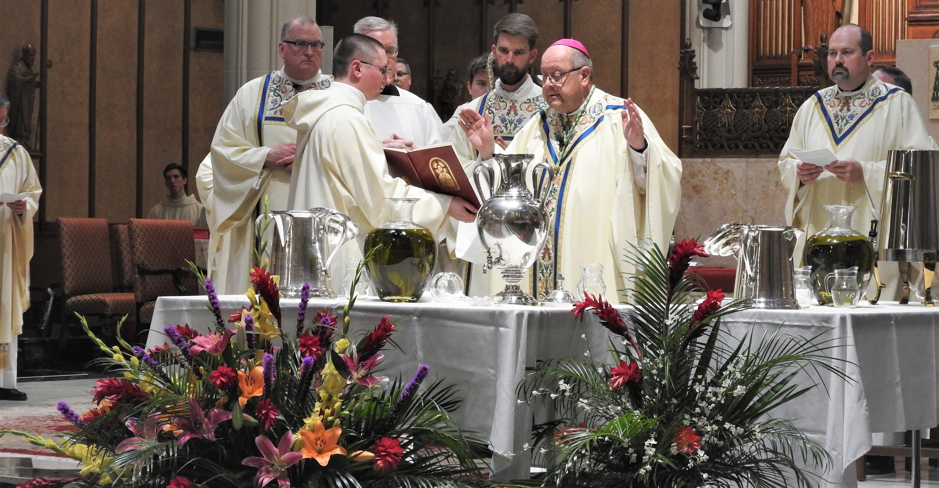 One of the most beautiful liturgies of the Church, the chrism Mass, was celebrated by Bishop Edward Malesic on April 12 in the Cathedral of St. John the Evangelist. (See photo gallery above.)