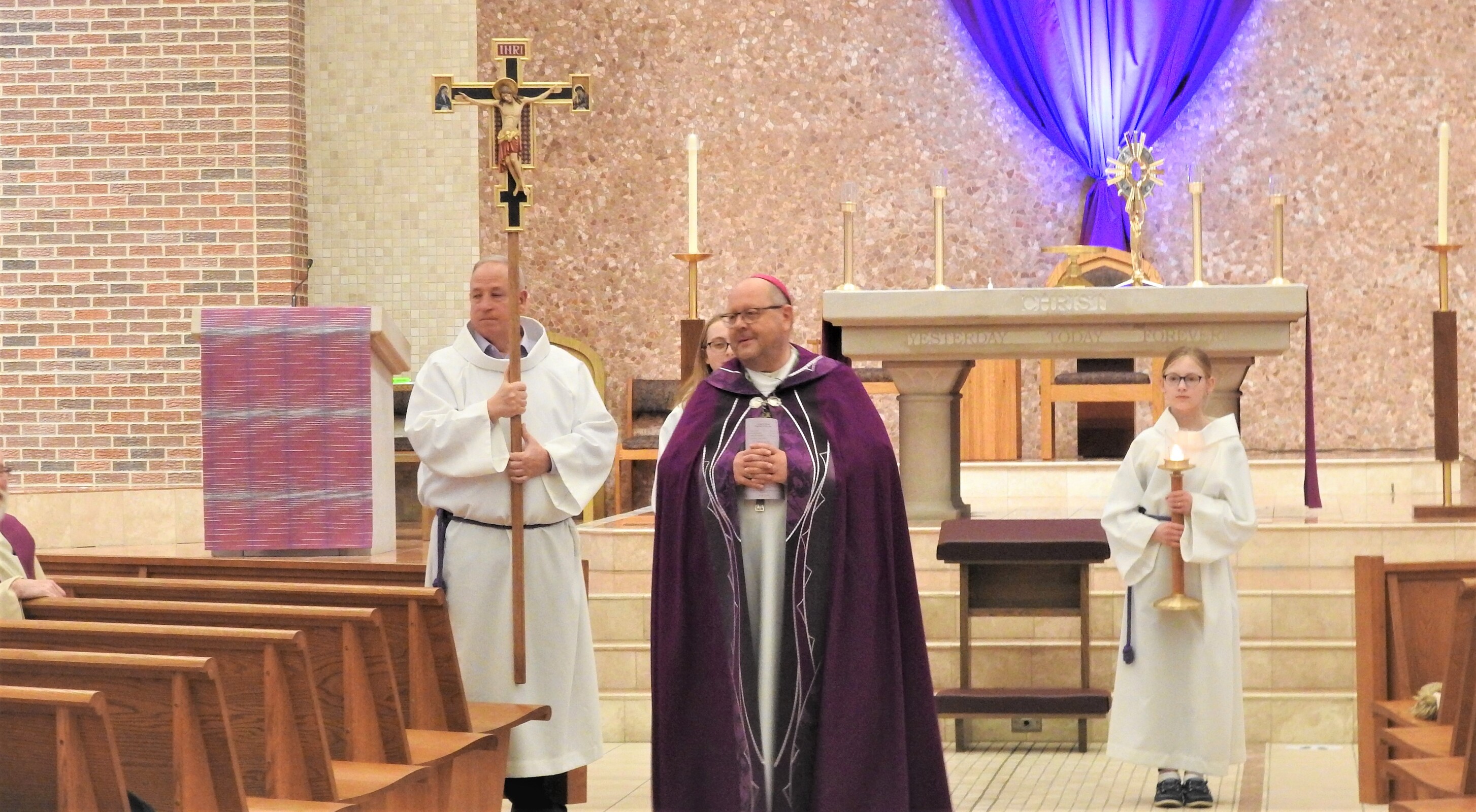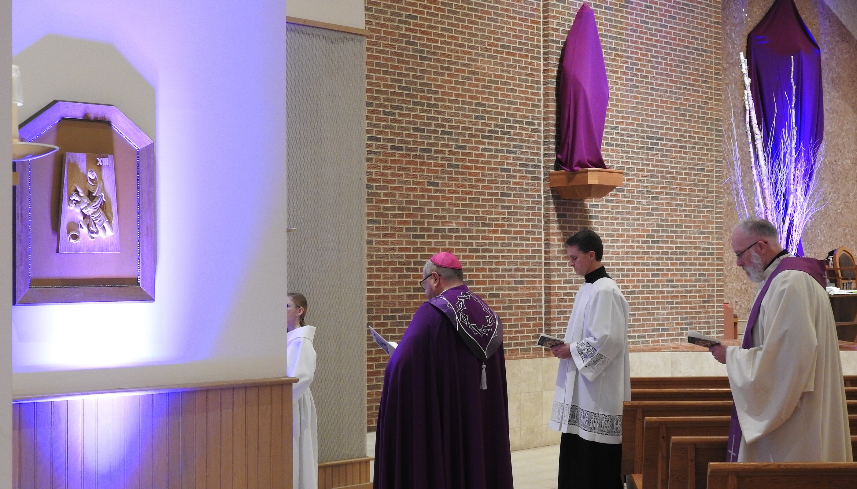 “It has been an amazing experience here at St. Joseph’s,” the bishop said after concluding Stations of the Cross in the church. He explained that the Stations are a special Lenten devotion he has prayed since his teenage years, adding there is something about the retelling of Jesus’ Passion and death that touches him.