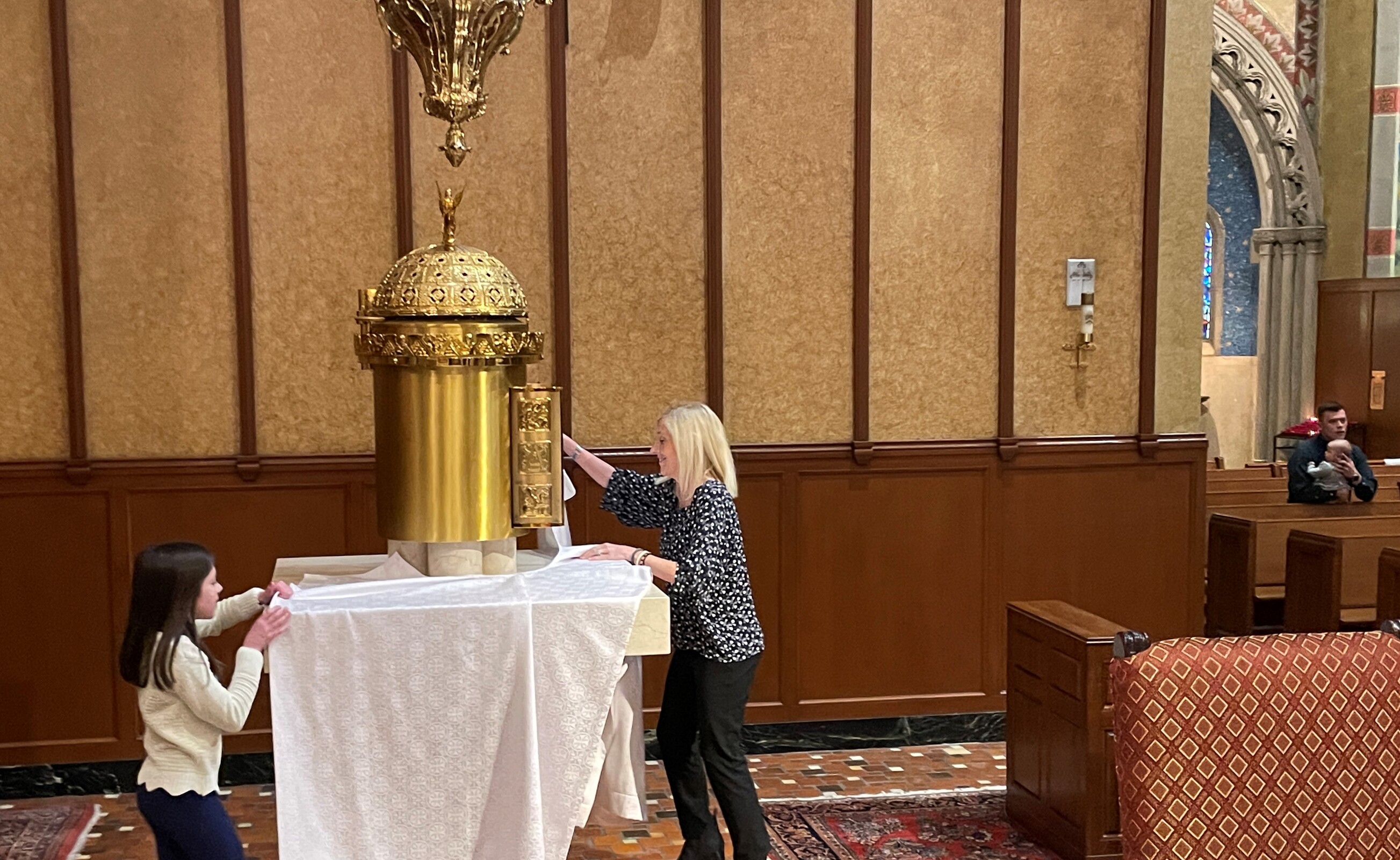 On Holy Thursday, after the Mass of the Lord’s Supper, the sanctuary was stripped of candles, the altar cloth and other adornments in preparation for Good Friday. After celebrating the liturgy of the Lord’s Passion, cathedral staff and volunteers sprang into action to prepare the mother church of the Diocese of Cleveland for the Easter season.