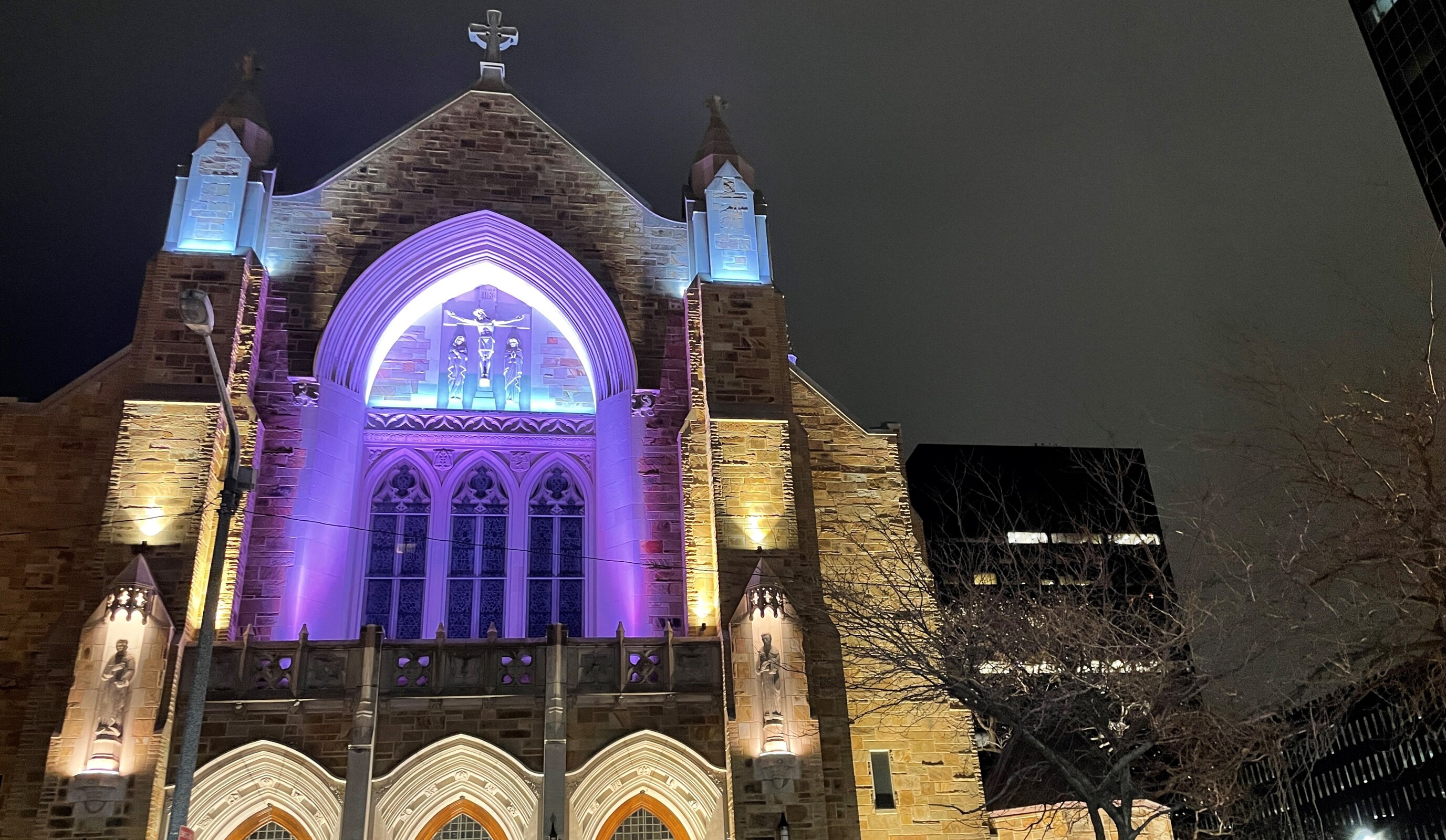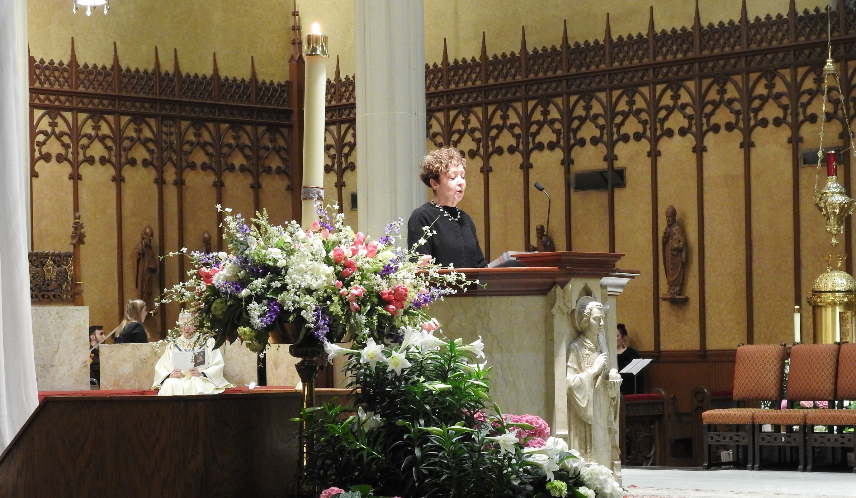 After processing to the front of the cathedral, the deacon placed the paschal candle in its holder in the front of the sanctuary near the ambo. He then chanted the Exsultet, the proclamation of Easter, which was a departure from the solemn chants of Good Friday.