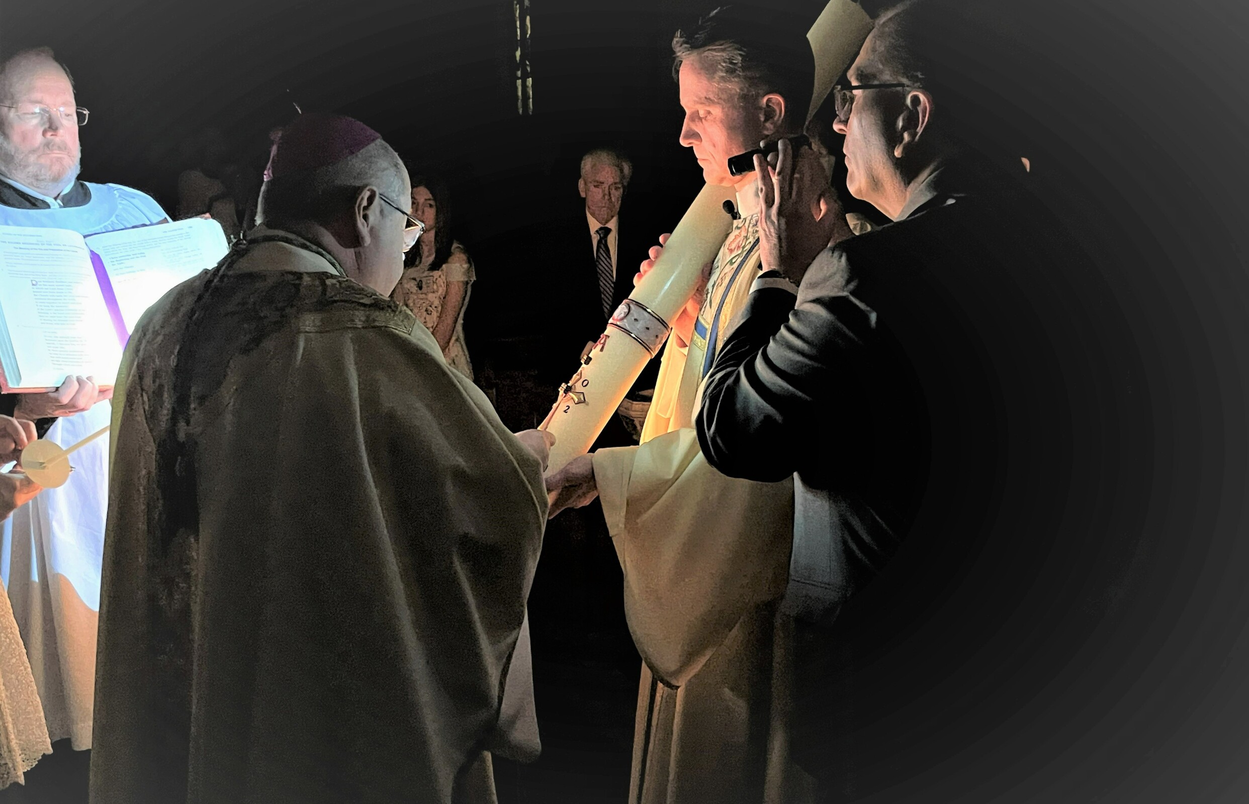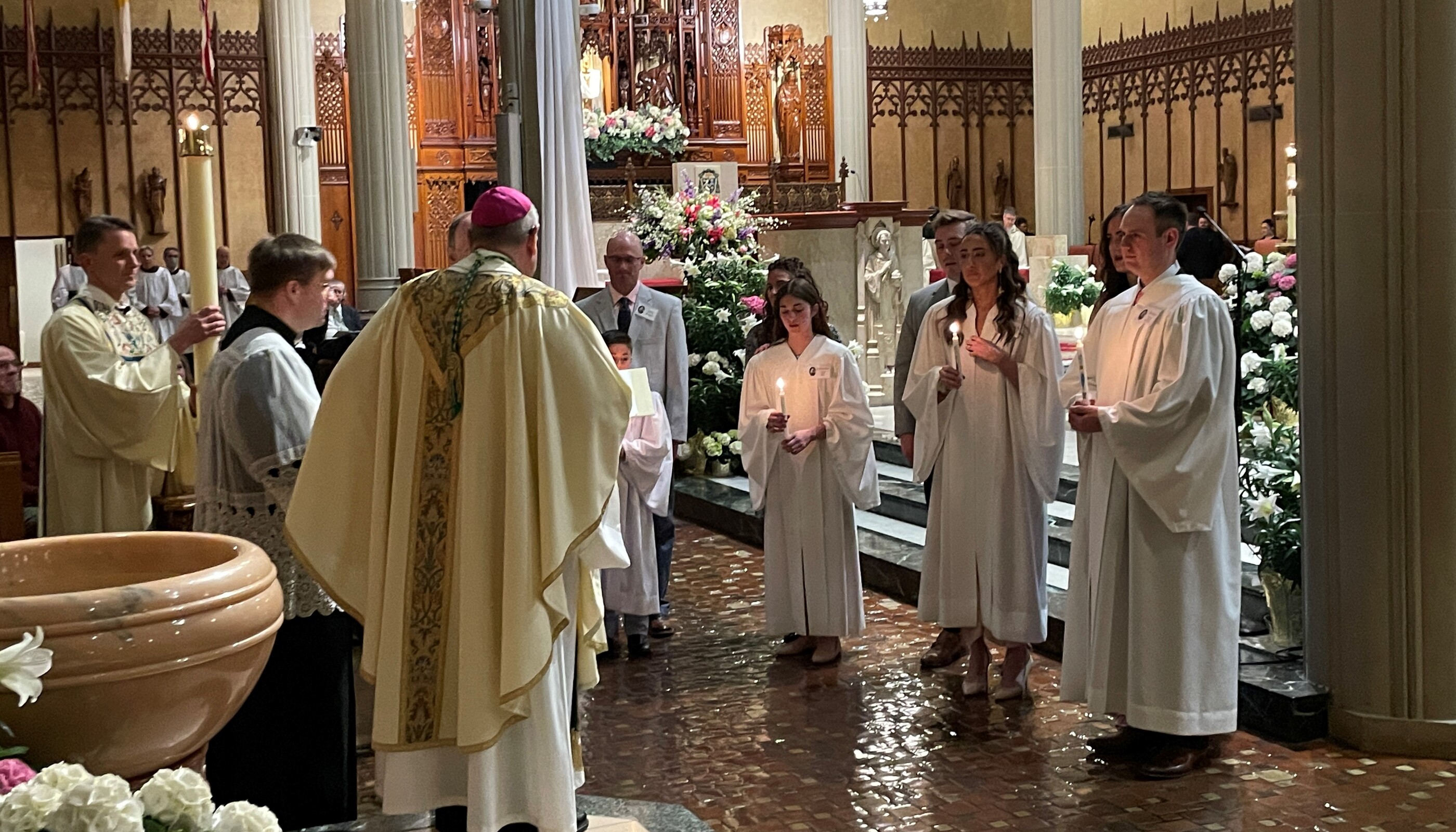 After Mass, the bishop reminded the congregation what a joyful night it was, congratulating the five new members of the Church. He also expressed gratitude for those who helped guide them through their faith journey, including their sponsors, wishing everyone a happy Easter.