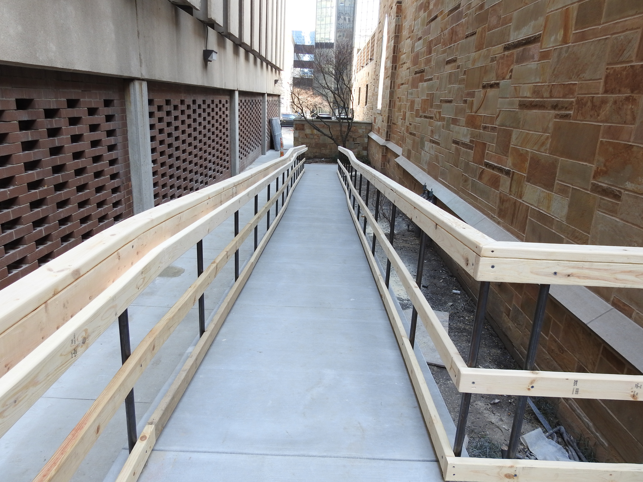 The entrance on the north side of the cathedral has been repaired and reopened. A new handicap ramp was installed. Permanent railings will be added, also.