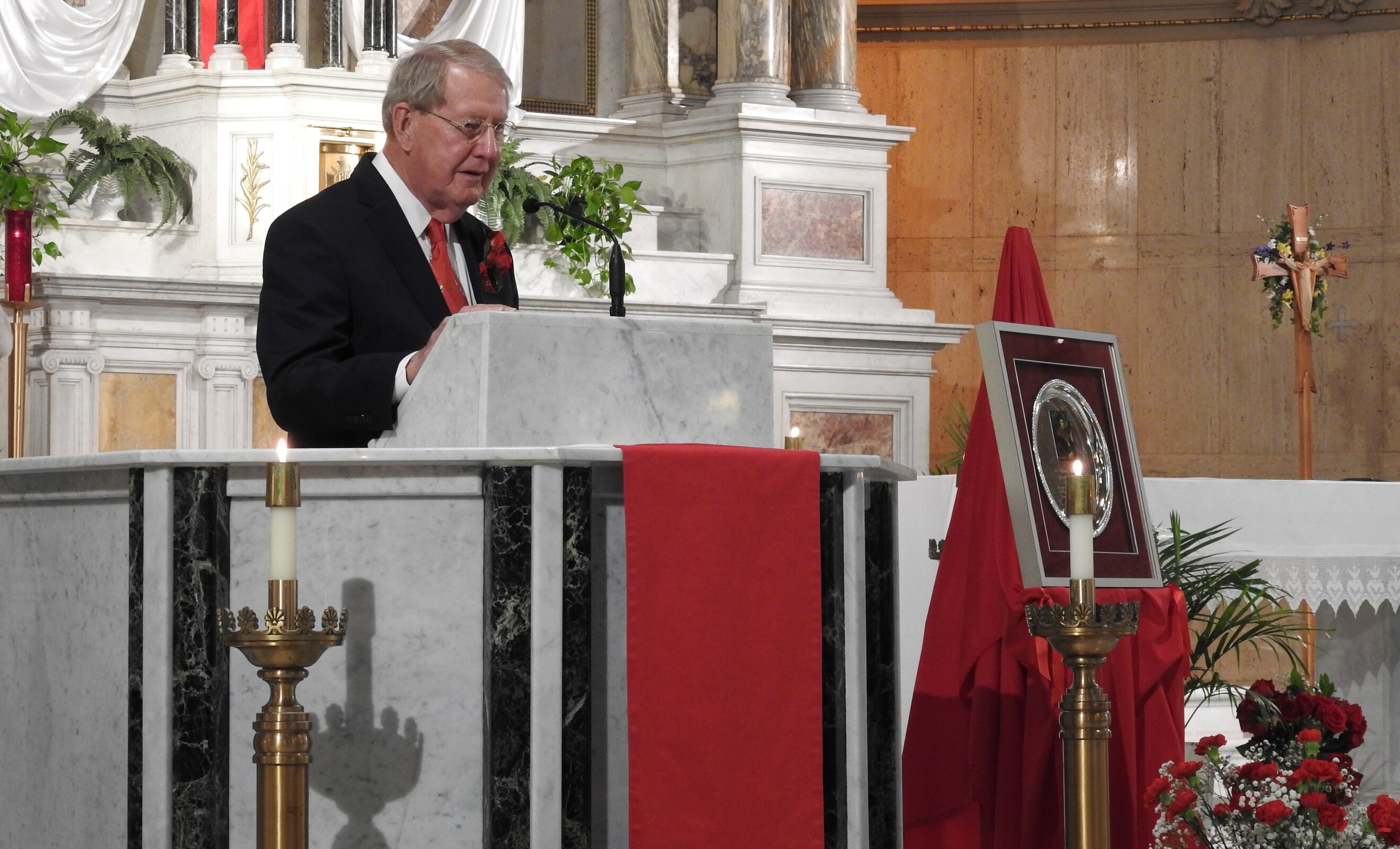 Before the final blessing, Father Rosing introduced Jerry Whitmer, recipient of the 2022 St. Thomas More Award. The award recognizes the virtues of integrity and public service that reflect those of St. Thomas More, who refused to compromise his beliefs and was executed.
