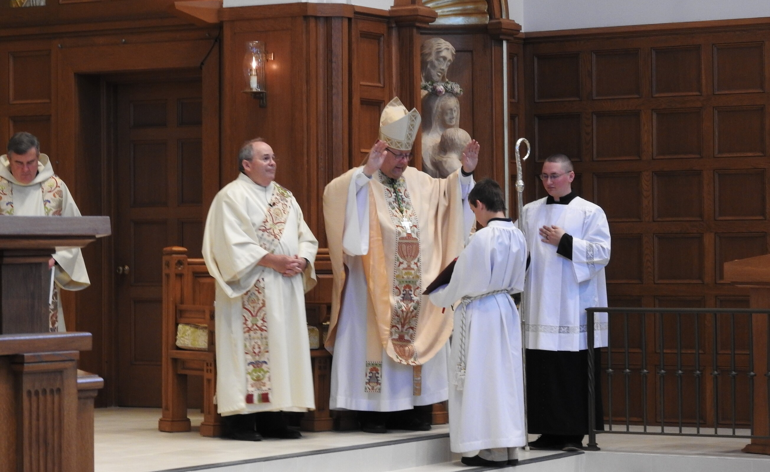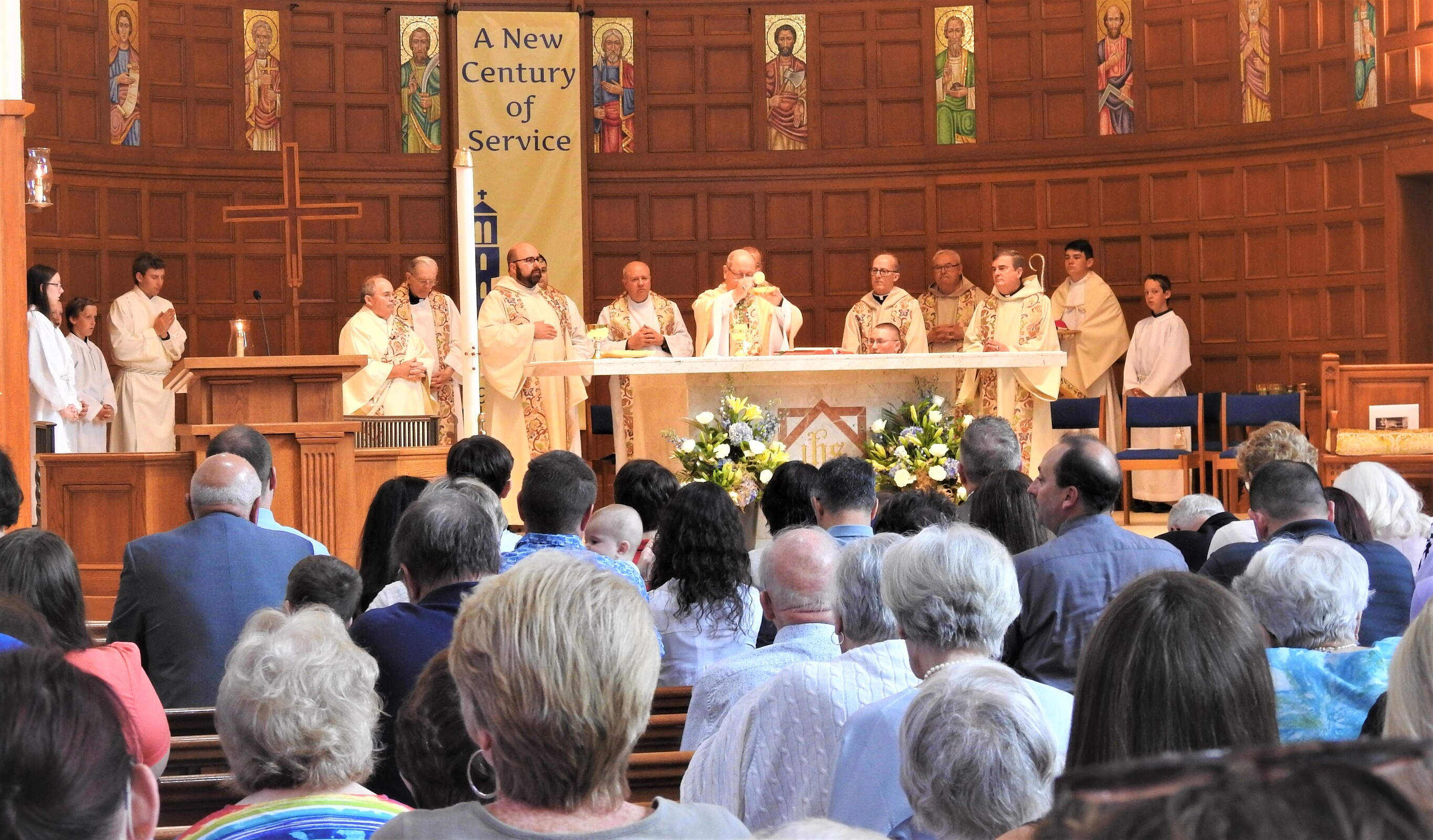 Concelebrants for the centennial liturgy included retired priests Father Frank Walsh and Father Ned Weist, who grew up in the parish; Father John Betters, pastor of SS. Robert and William and St. John of the Cross parishes in Euclid, a son of the parish. Former parochial vicars Father Dan Schlegel, vicar for clergy and religious, and Father Stan Klasinski, pastor of St. Clare Parish in Lyndhurst. Current parochial vicars Father Tim Daw and Father Anthony Marshall also concelebrated. Assisting was Deacon Dennis Conrad.