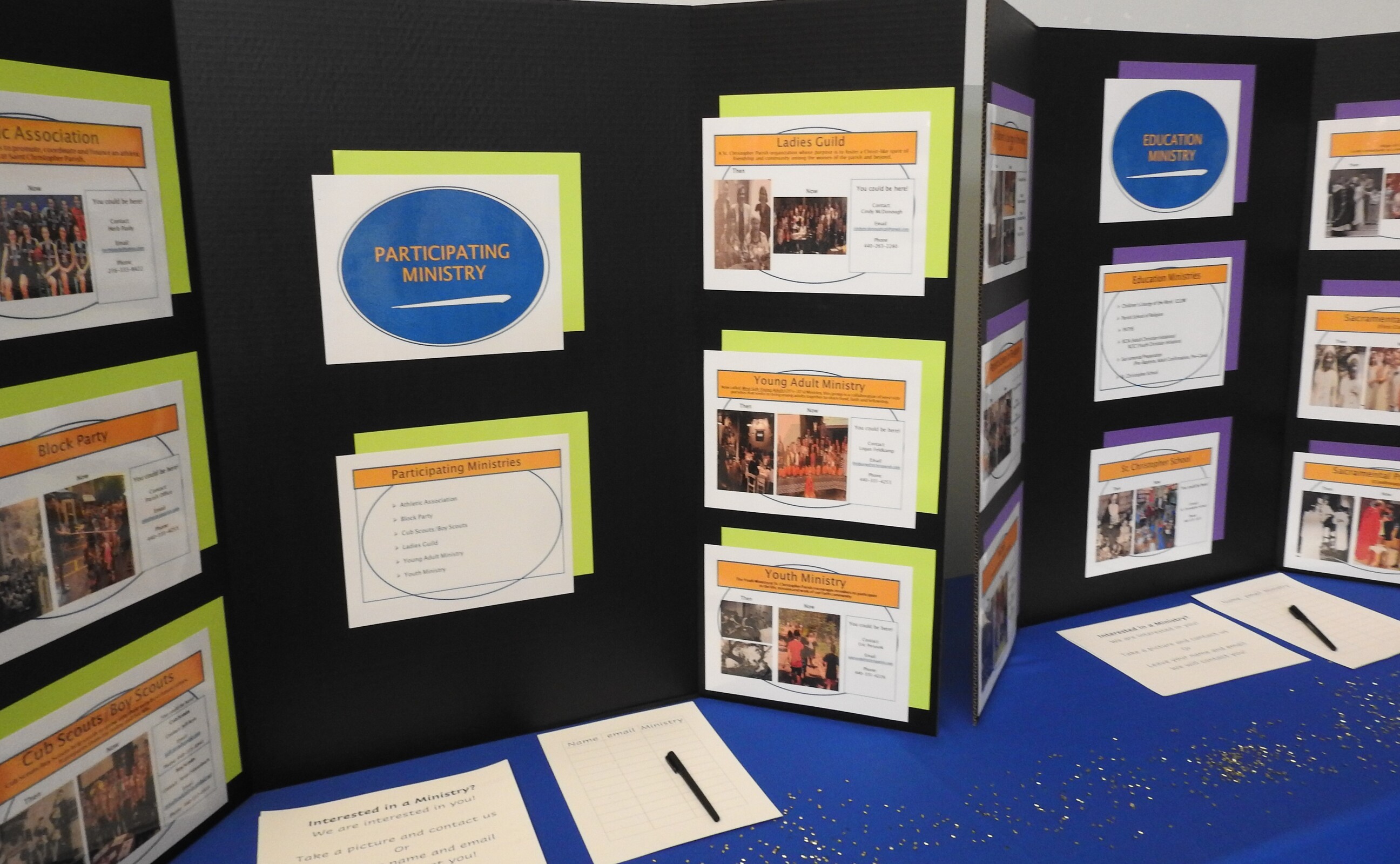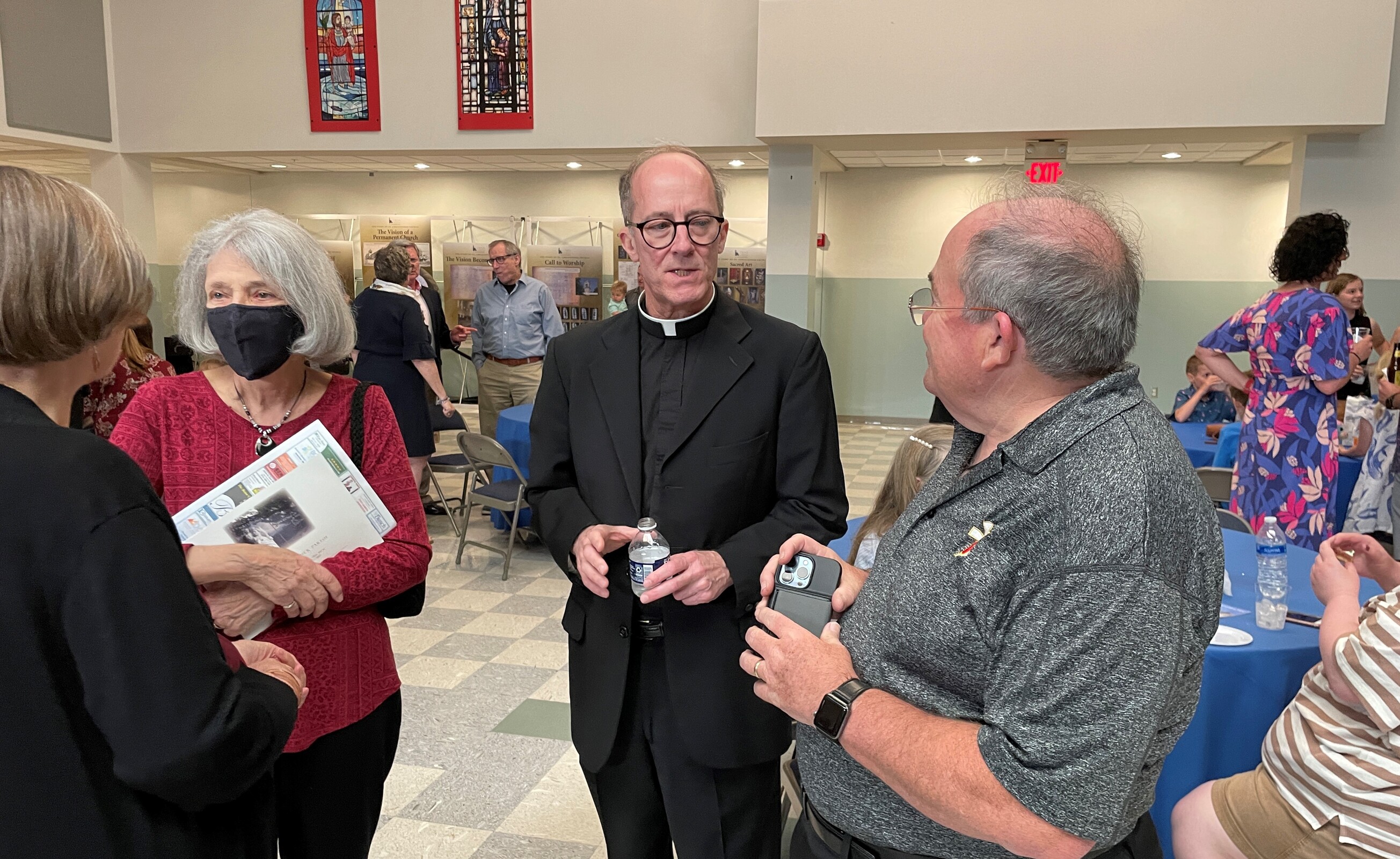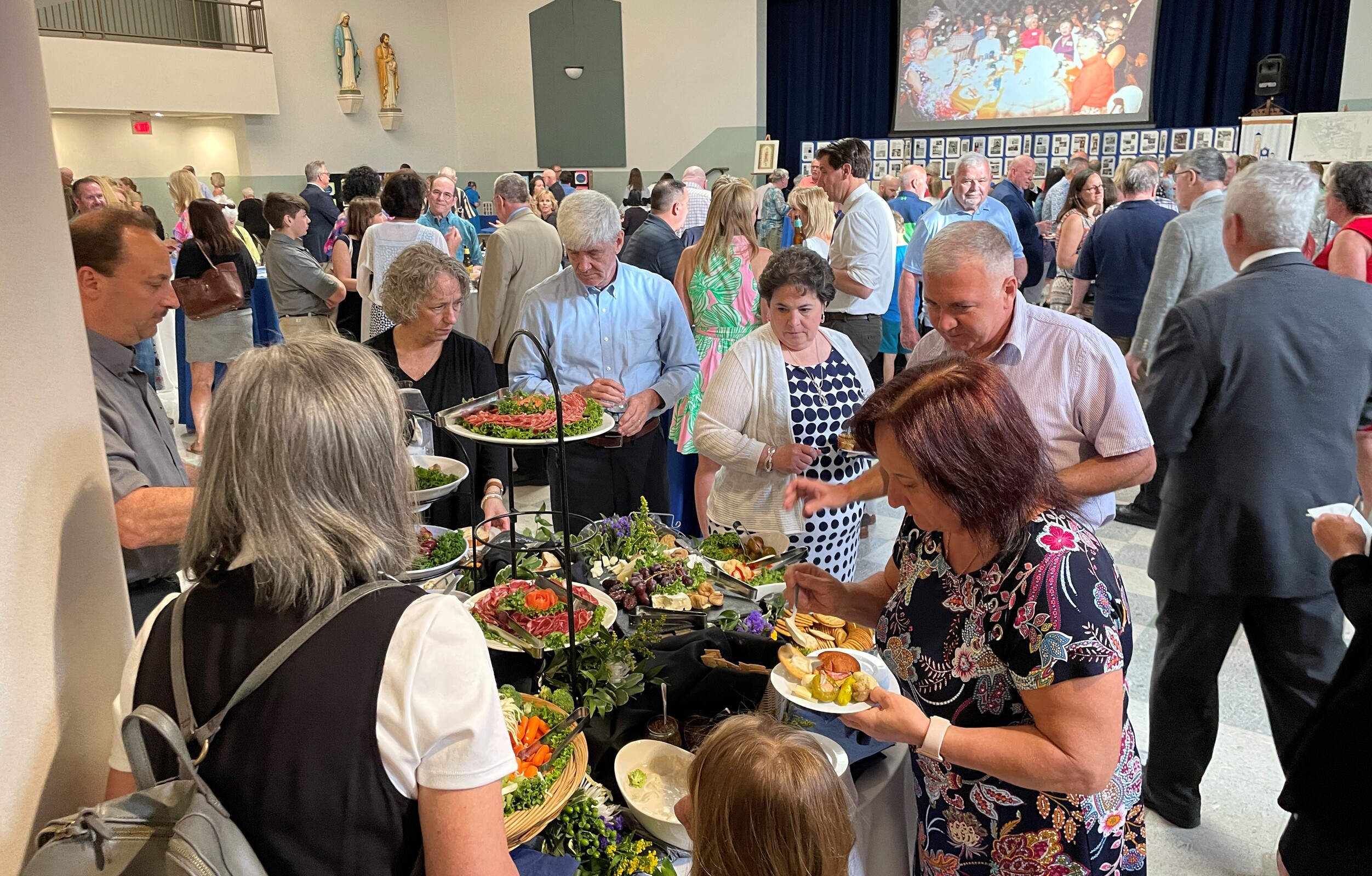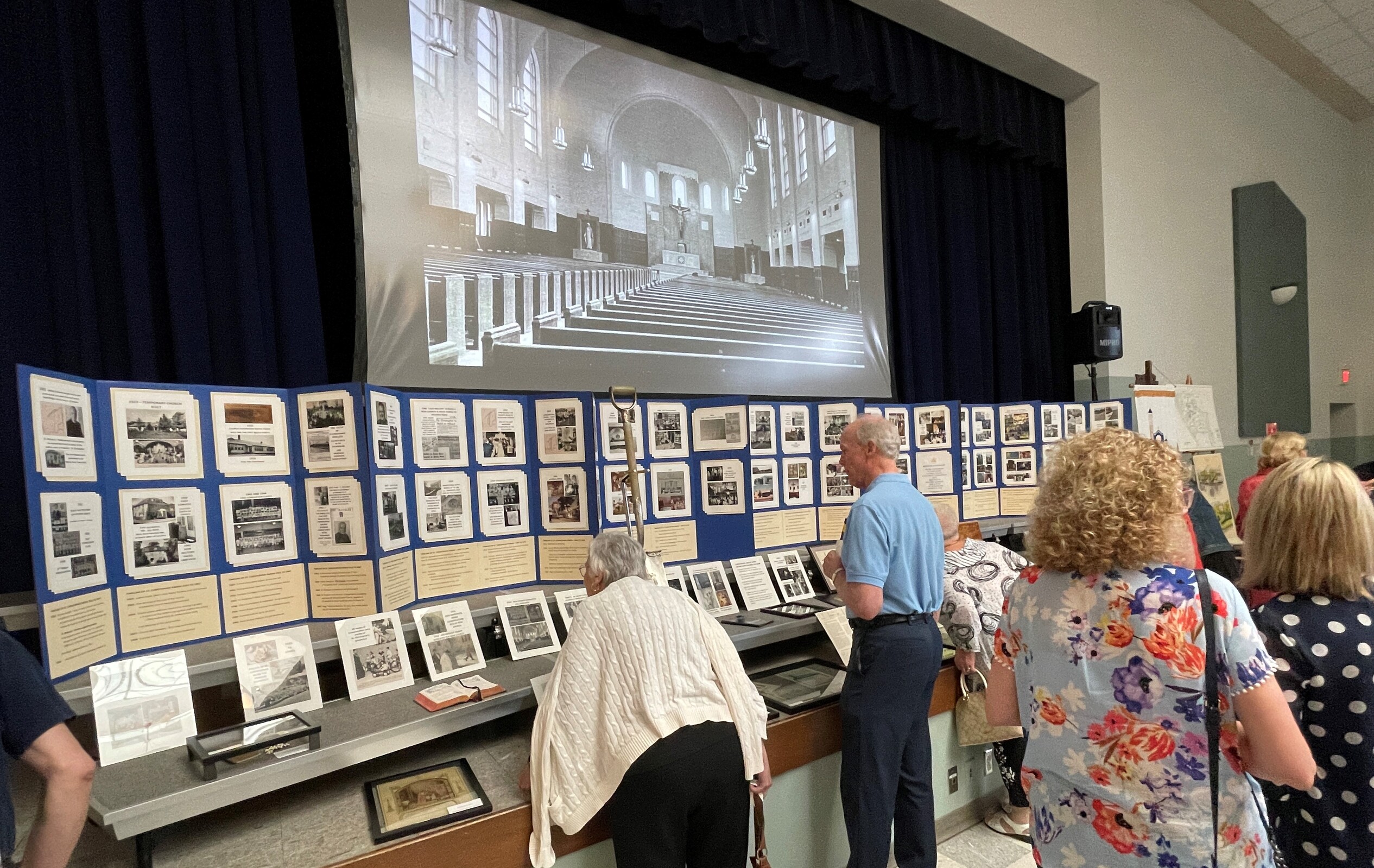 After Mass, the group moved to the Parish Center for a reception and displays encompassing the parish history, including memorabilia loaned by parishioners.