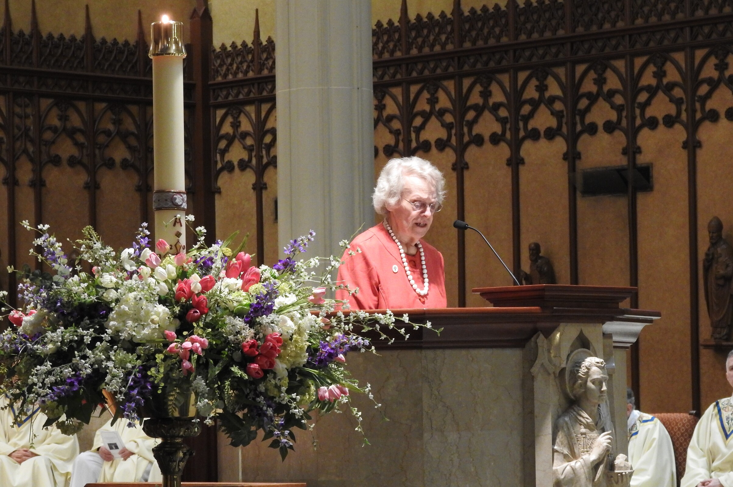 He also talked briefly about the Cathedral of St. John the Evangelist, located across the street from the diocesan offices. Construction began in 1848 and the cathedral underwent major rebuilding/enlargement and renovation 1946-1948. Currently, it is in the midst of an extensive exterior renovation.