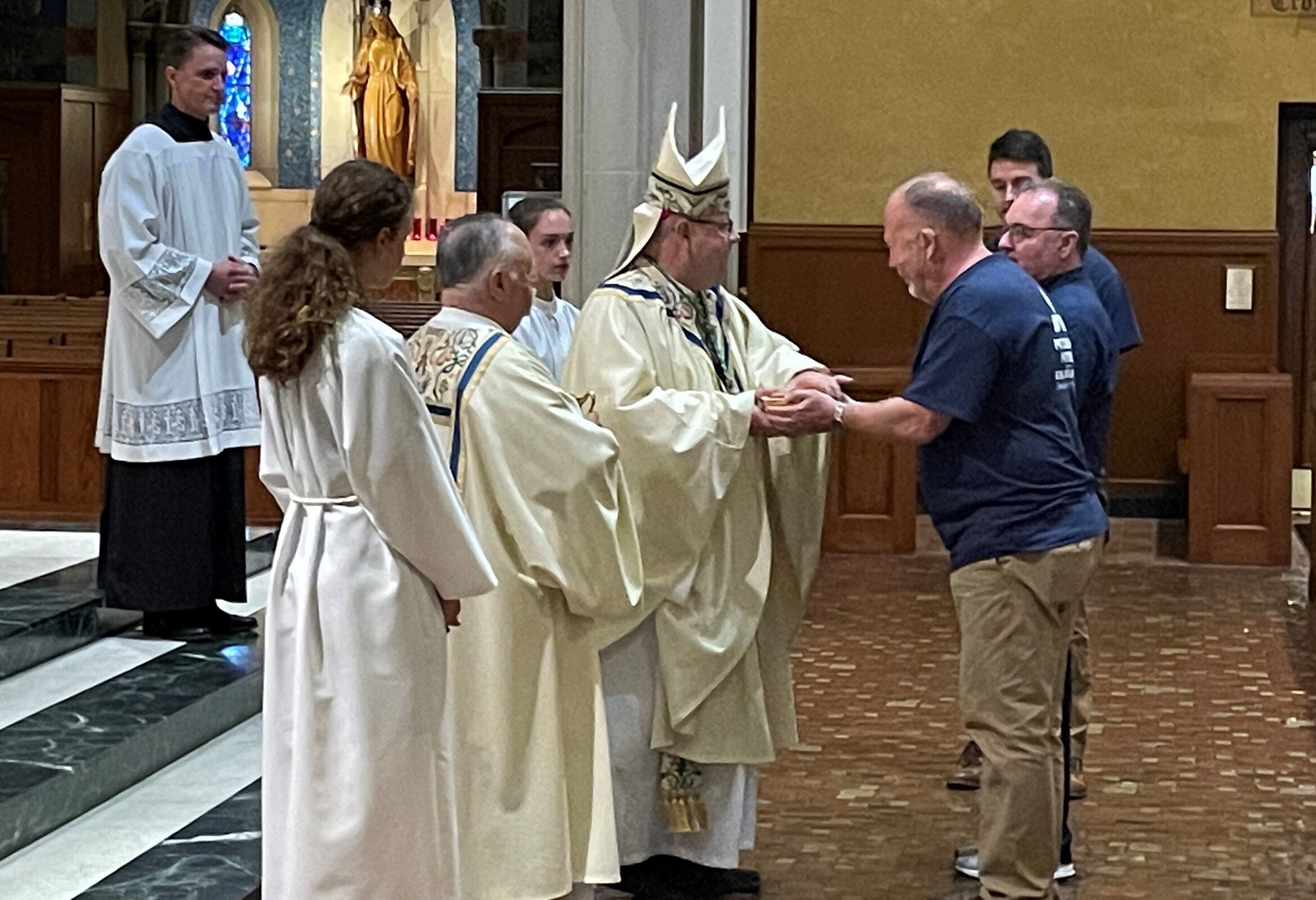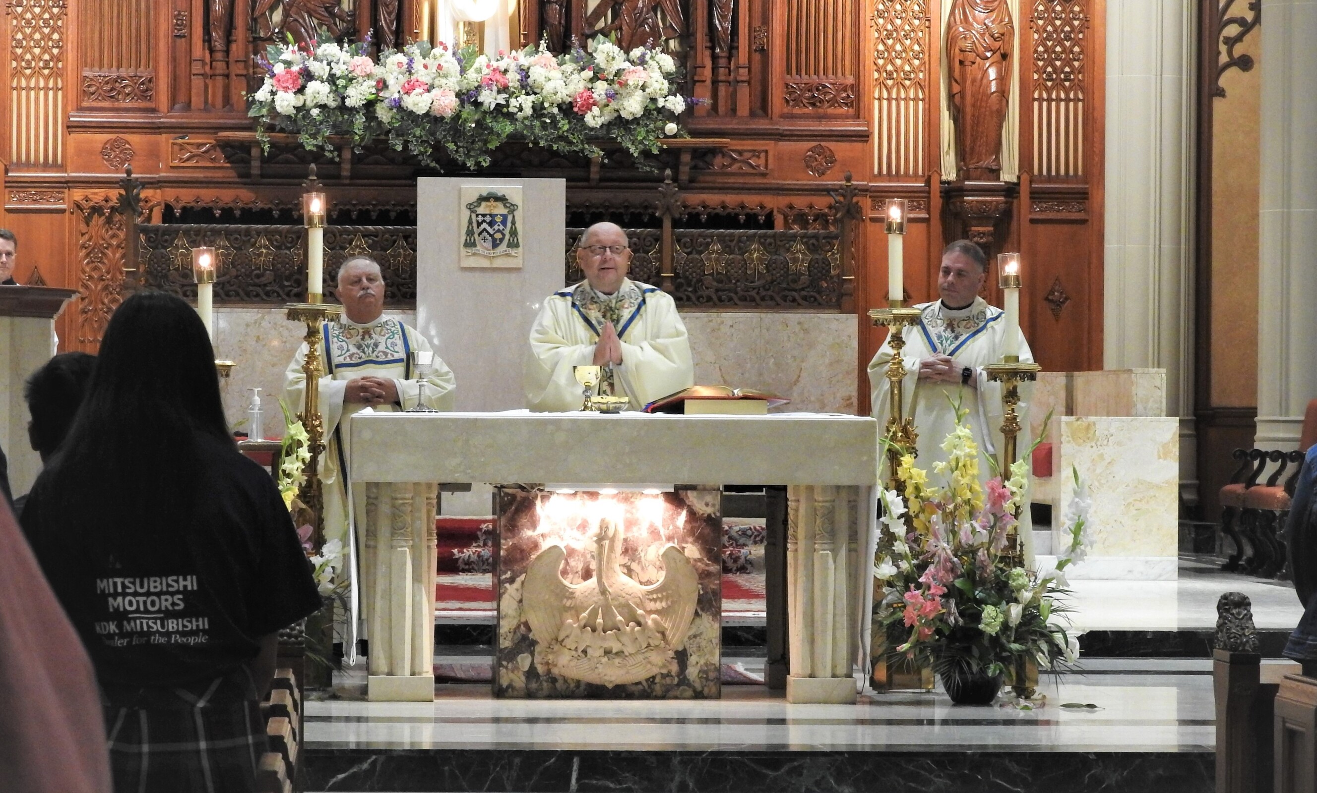 Bishop Edward Malesic celebrated the Mass with Father Vince Hawk, pastor of Holy Trinity Parish concelebrating. Deacon John Sferry, a Vietnam era veteran, assisted.