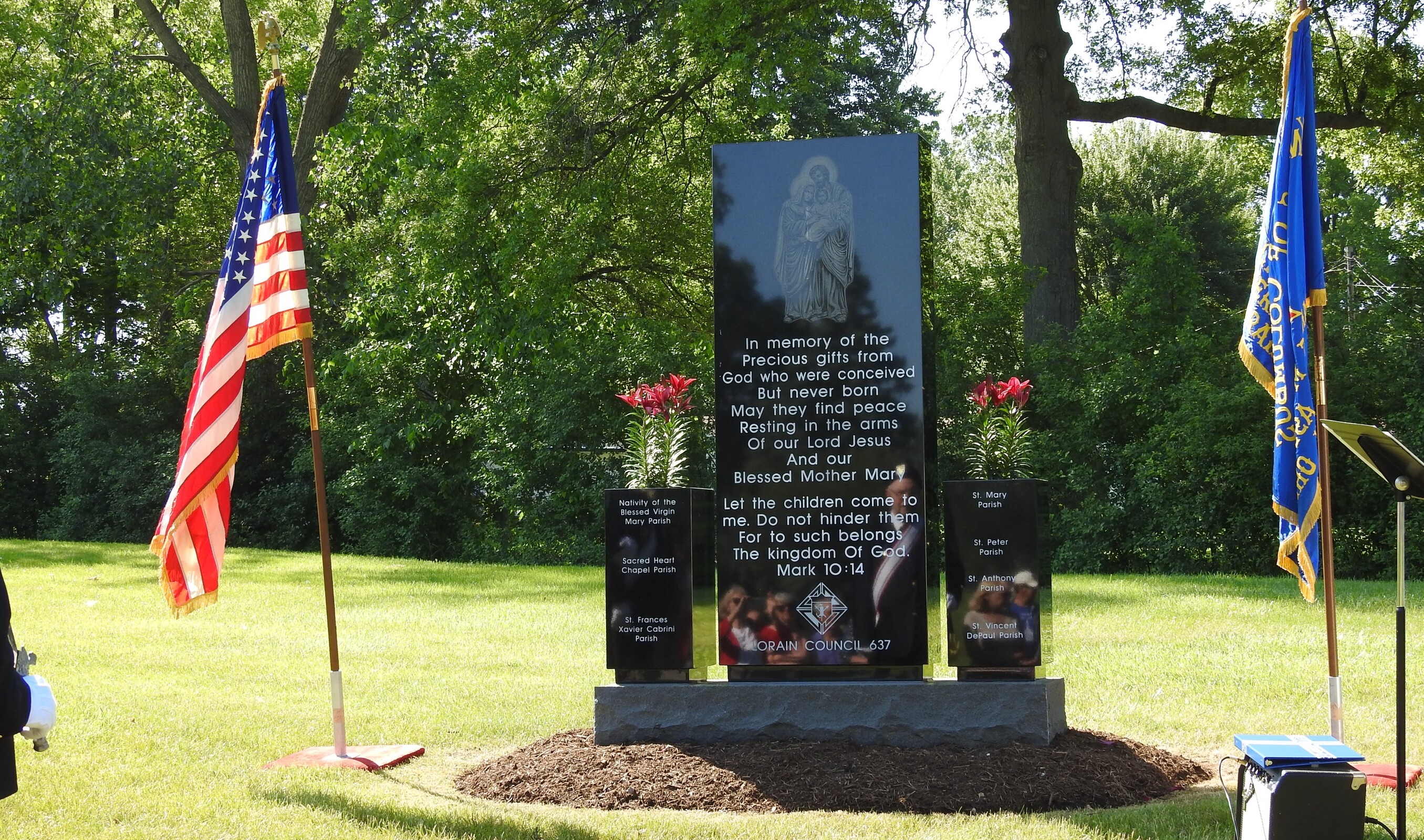 The Knights of Columbus James L. Martin Council 637 in Lorain, with support from seven local Catholic parishes and the Catholic Cemeteries Association, spearheaded efforts to construct a Memorial for the Unborn in Calvary Cemetery, Lorain.