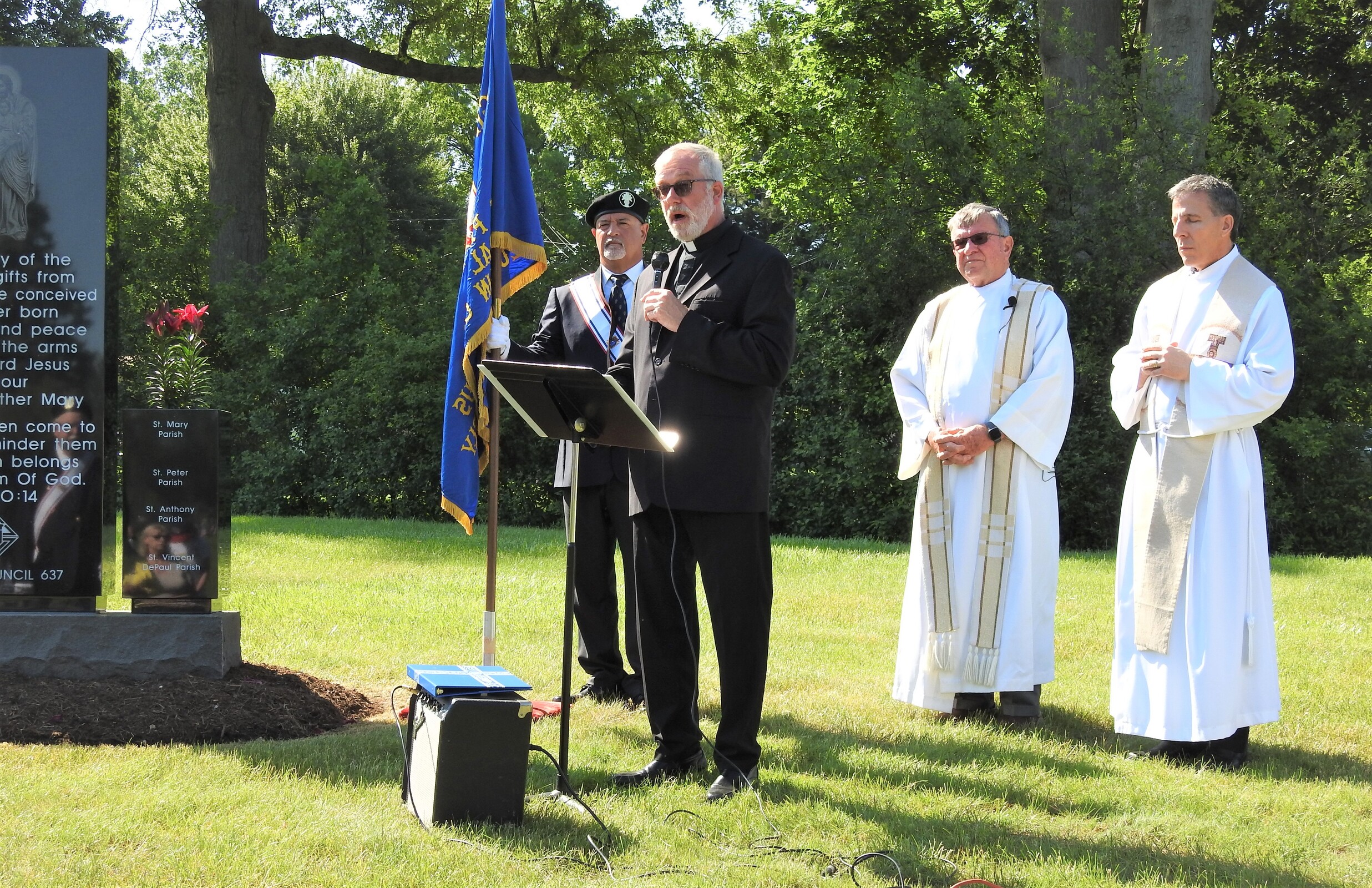 The dedication ceremony took place after the annual Memorial Day Mass at the cemetery. Father Frank Kosem, retired pastor of St. Jude Parish in Elyria, was the celebrant. Concelebrants were Father Bill Thaden, pastor of Sacred Heart Chapel in Lorain and Father Craig Hovanec, pastor of St. Peter Parish and Nativity of the Blessed Virgin Mary Parish, both in Lorain.