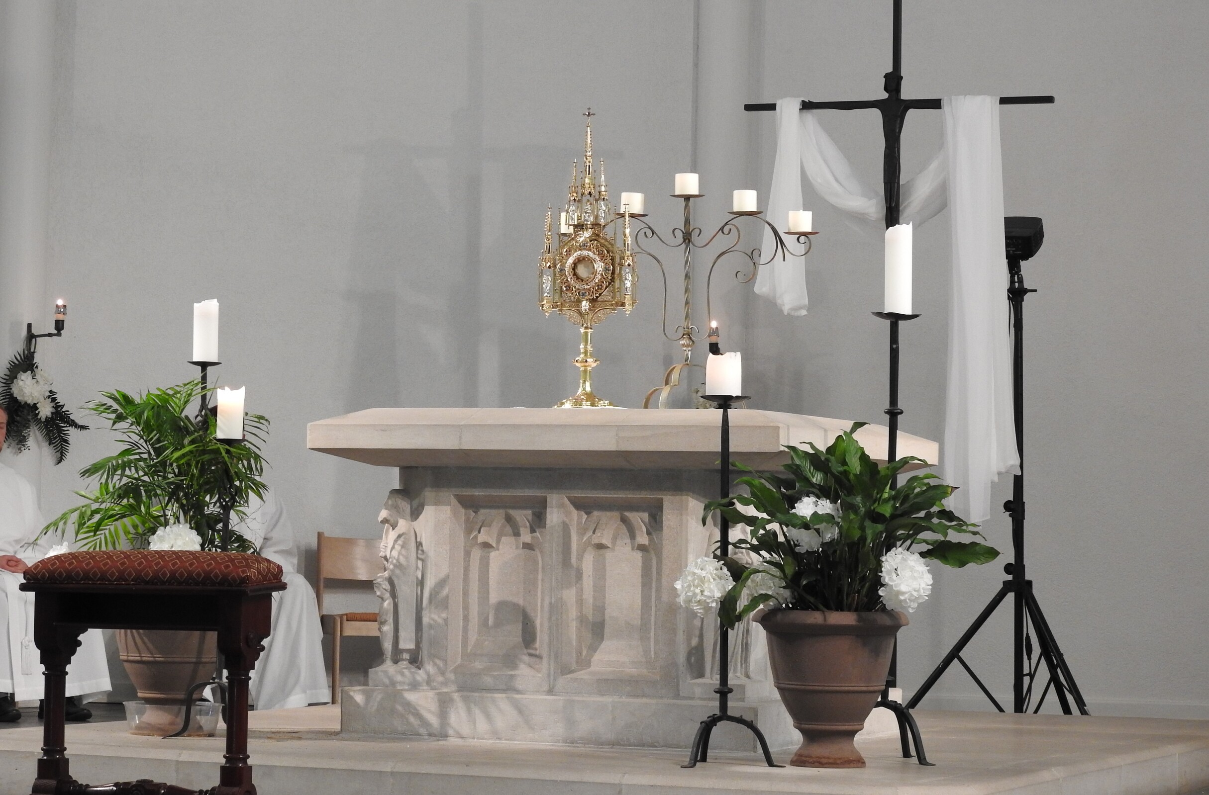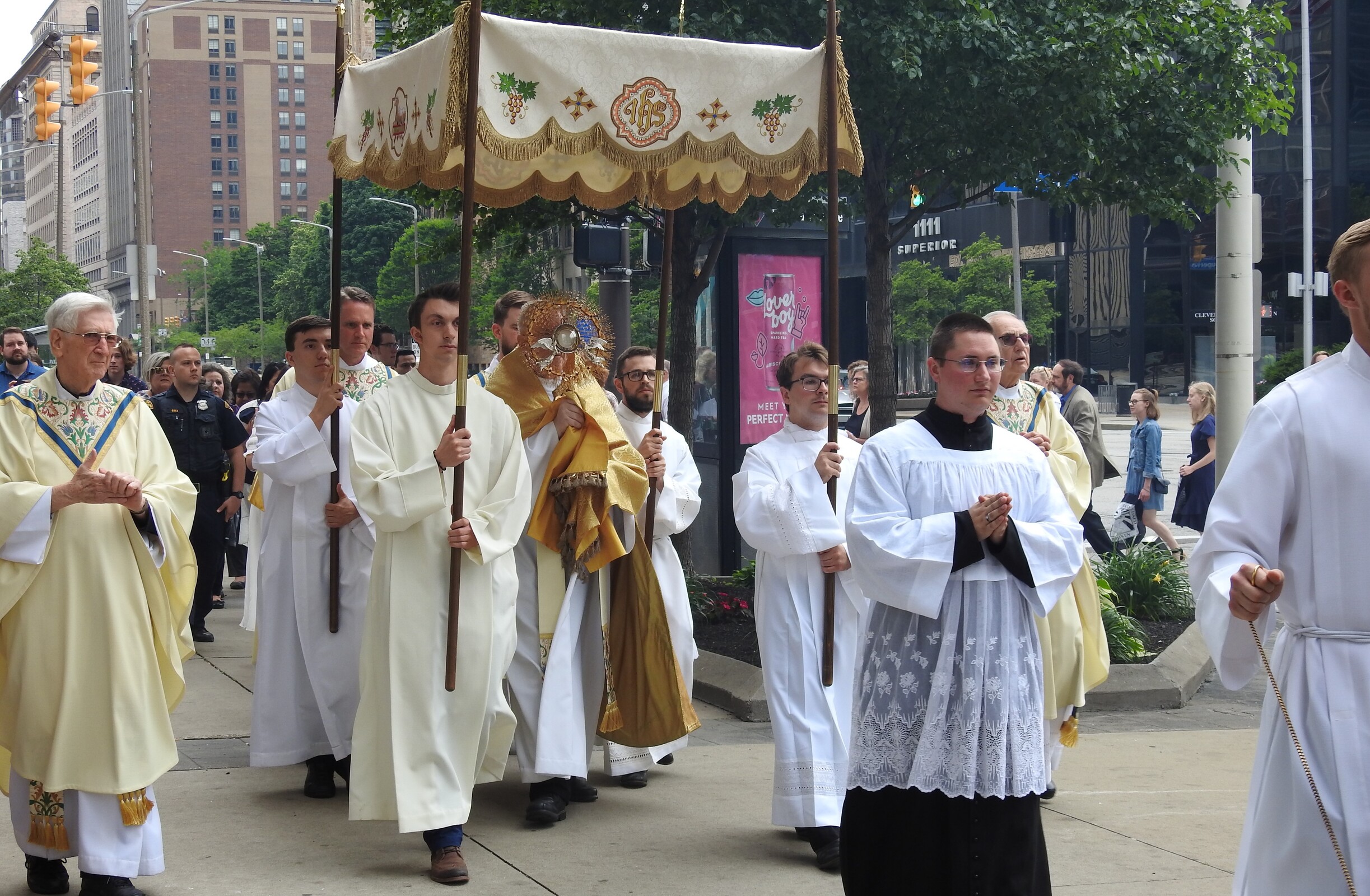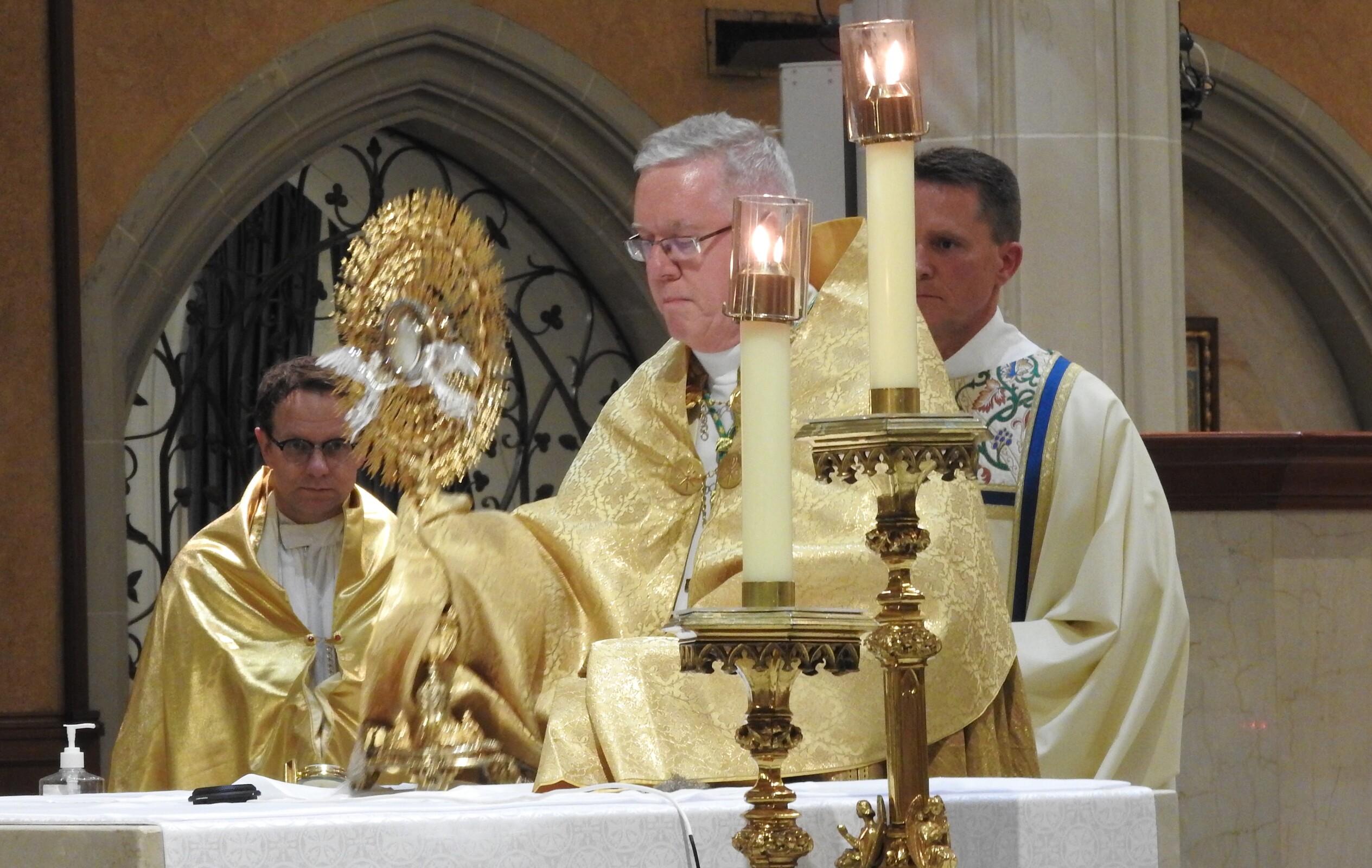 Bishop Edward Malesic had planned to celebrate the Mass and lead the Eucharistic procession after Mass. However, because of his father’s funeral, he was unable to attend, so Bishop-elect Michael Woost stepped in.