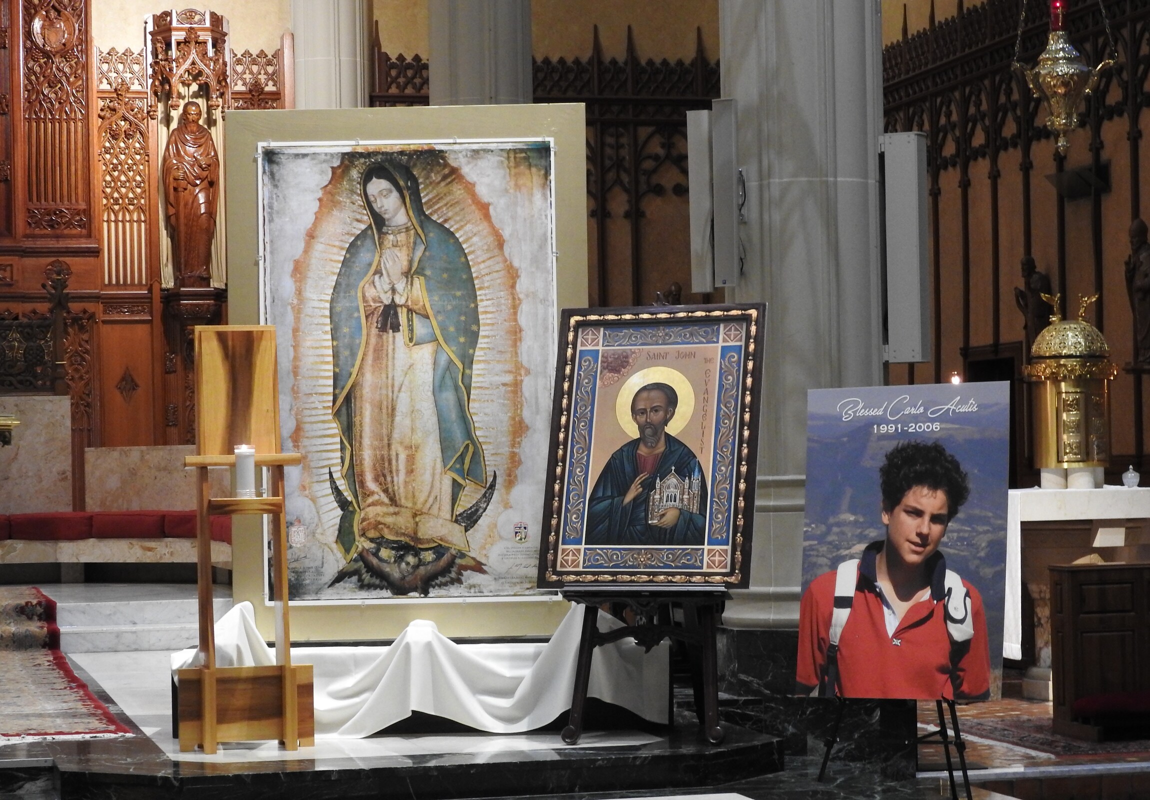 During the Mass, the three images that were present in the cathedral for the opening of the diocesan synodal process – Our Lady of Guadalupe, St. John the Evangelist and Blessed Carlo Acutis – once again were in the sanctuary. They marked the transition from the synod to the revival.
