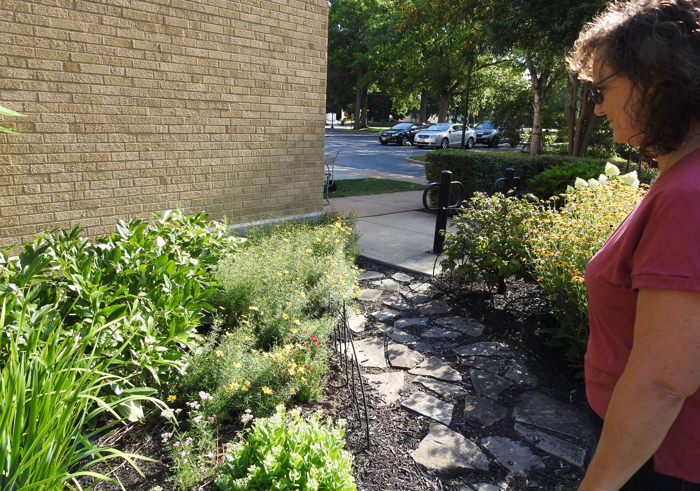 She credits Father John Valencheck, parish pastor for his support of the project. “He even found a fountain,” she said, pointing to a multi-level bird bath/fountain that attracts many birds.