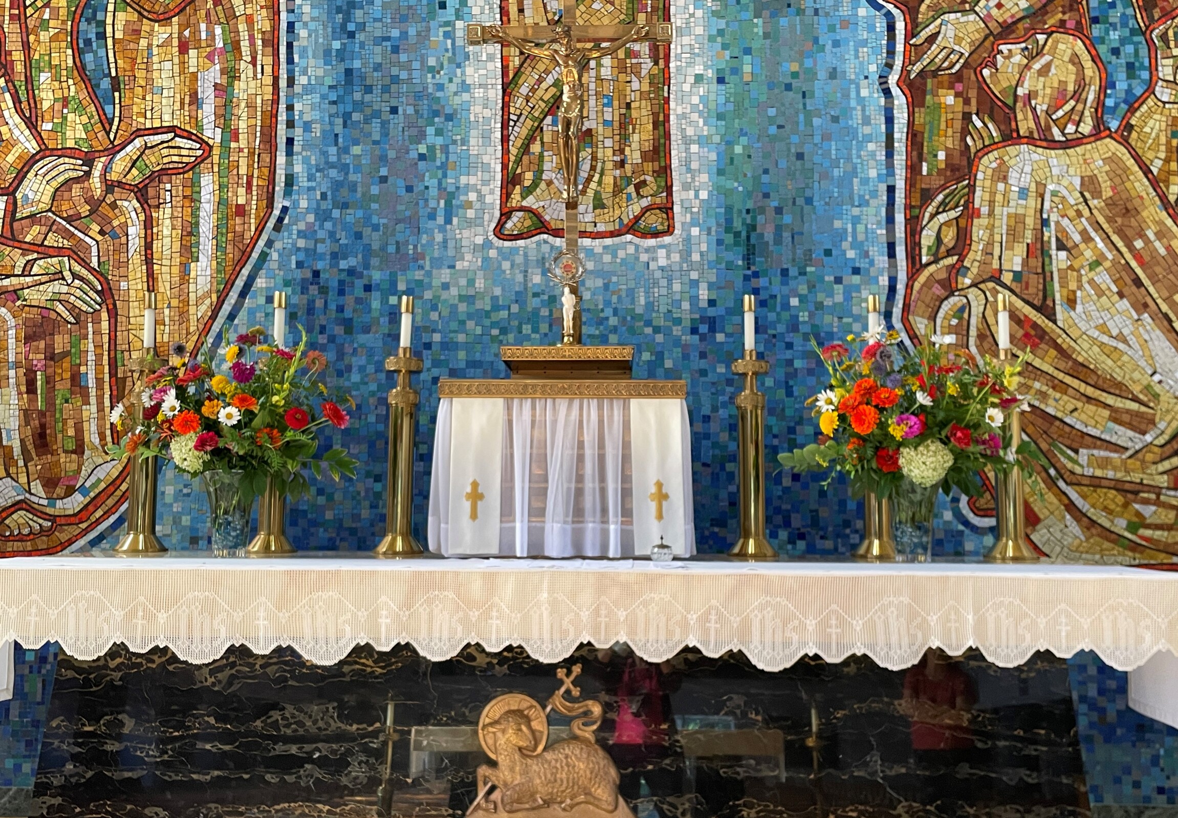 “Unfortunately, they looked lost,” said Spangler, who also serves as the sacristan. She explained that St. Sebastian Church in Akron is large and the altar is located quite a distance from the congregation. That means larger flowers were needed to ensure the arrangements were scaled properly to the church’s size.