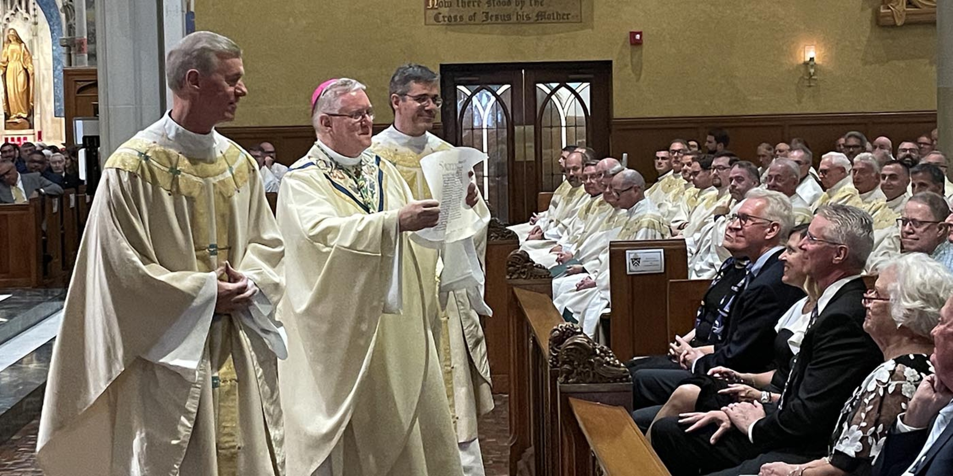 The bishop welcomed Cincinnati Archbishop Dennis Schnurr, Msgr. Seamus Horgan, who represented Archbishop Christophe Pierre, the apostolic nuncio, the other bishops in attendance – including Philadelphia Archbishop Nelson Perez, his predecessor – the priests, deacons, lay ecclesial ministers, religious sisters, diocesan staff, ecumenical leaders, seminarians, seminary faculty, family and friends of Bishop Woost.