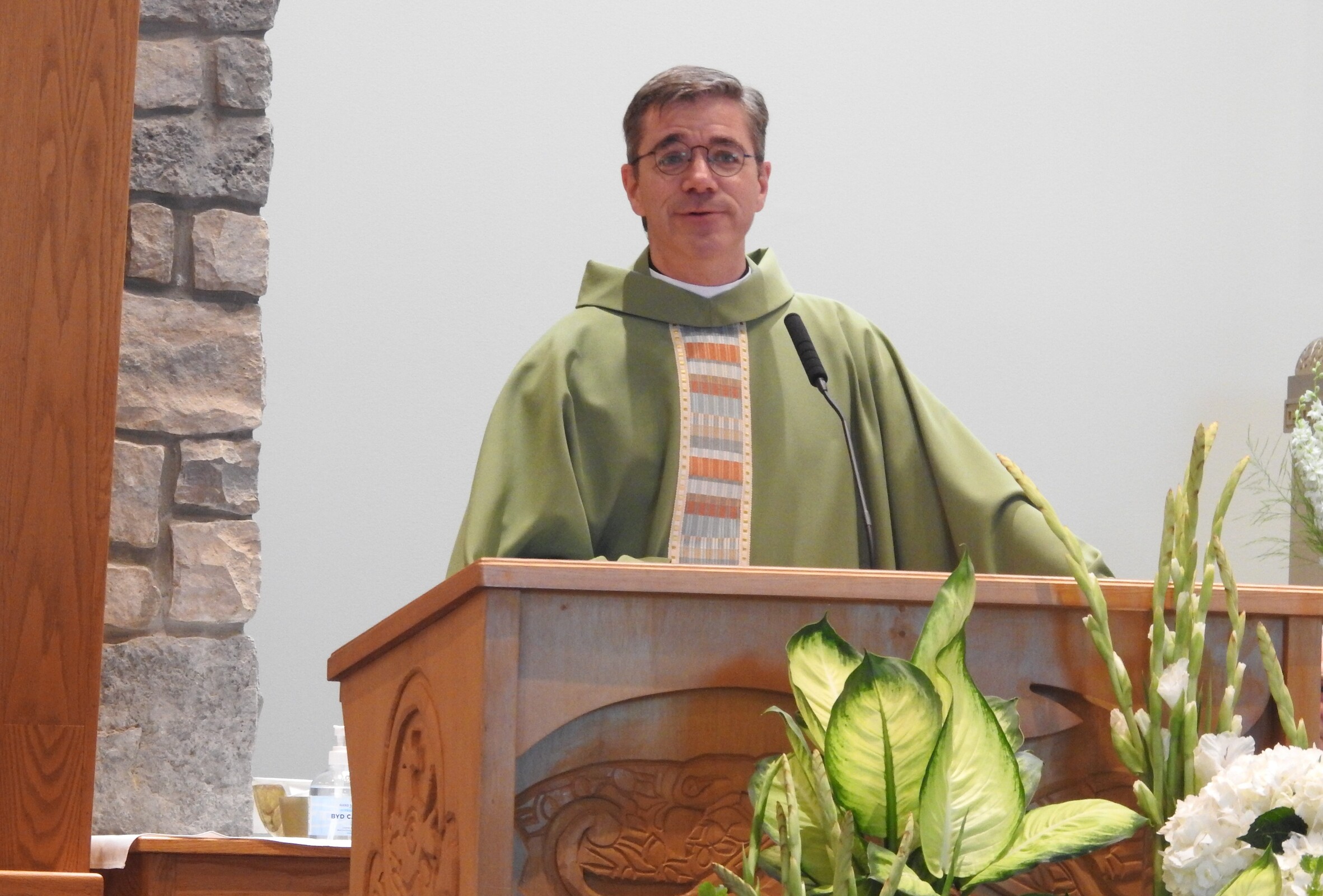 A beaming Father Tom Woost, pastor of St. Brendan Parish in North Olmsted, scurried around the church and sacristy before Sunday Mass on Aug. 7 ensuring candles were lit, servers were ready, flowers were arranged properly and other last-minute tasks were handled.
