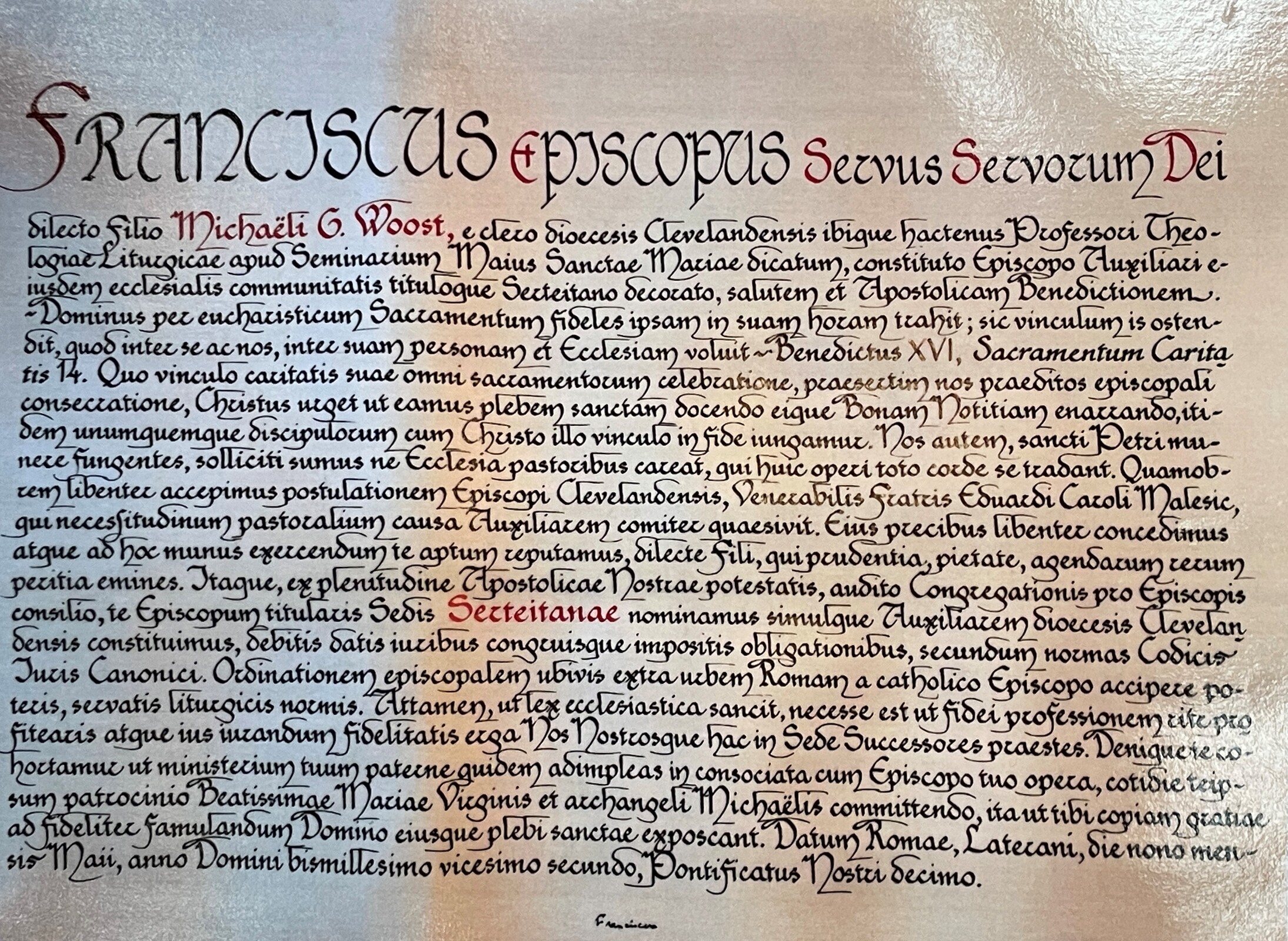 On a more serious note, Father Woost offered some thoughts on what is in a name, explaining the meaning of each of the bishop’s names.
