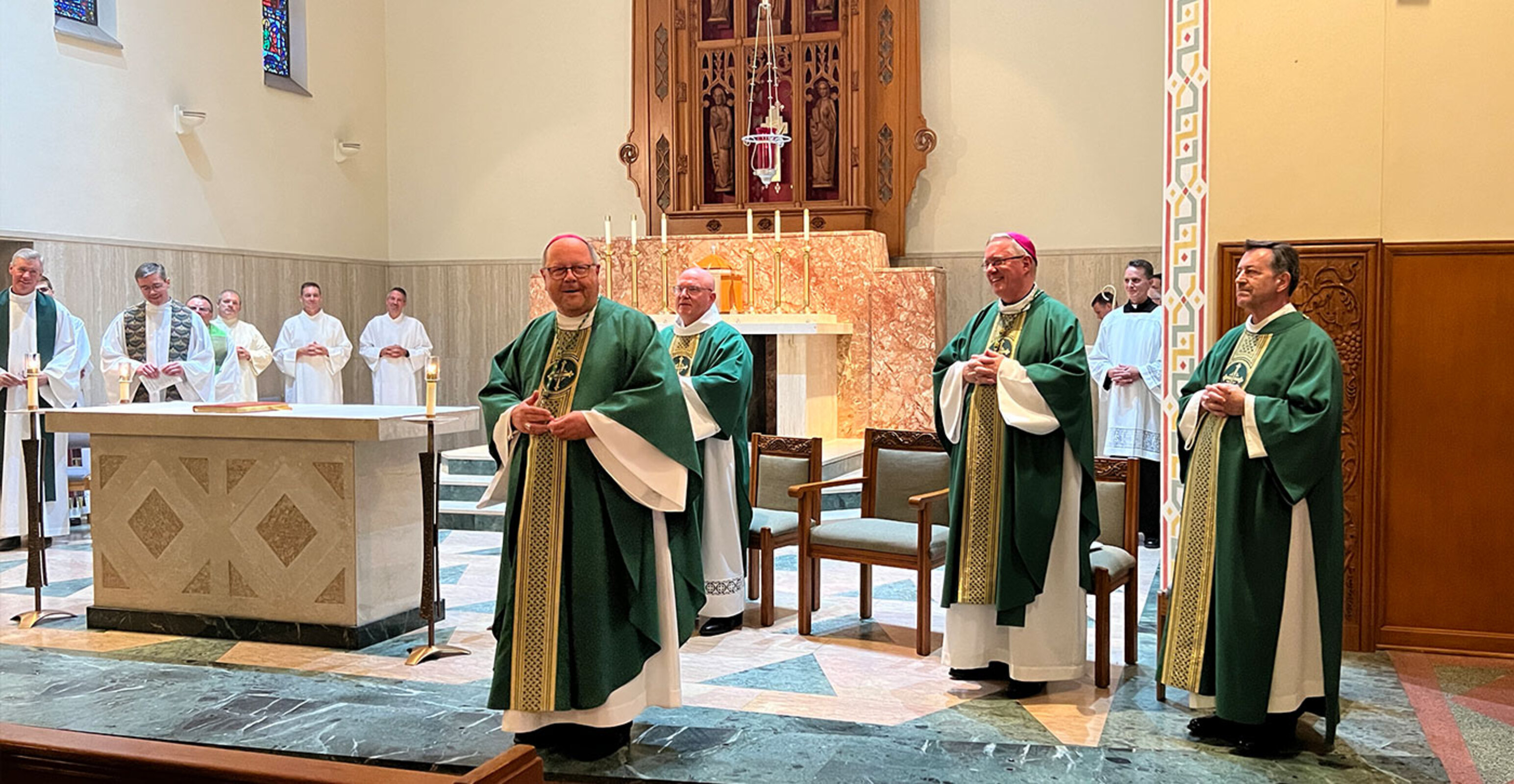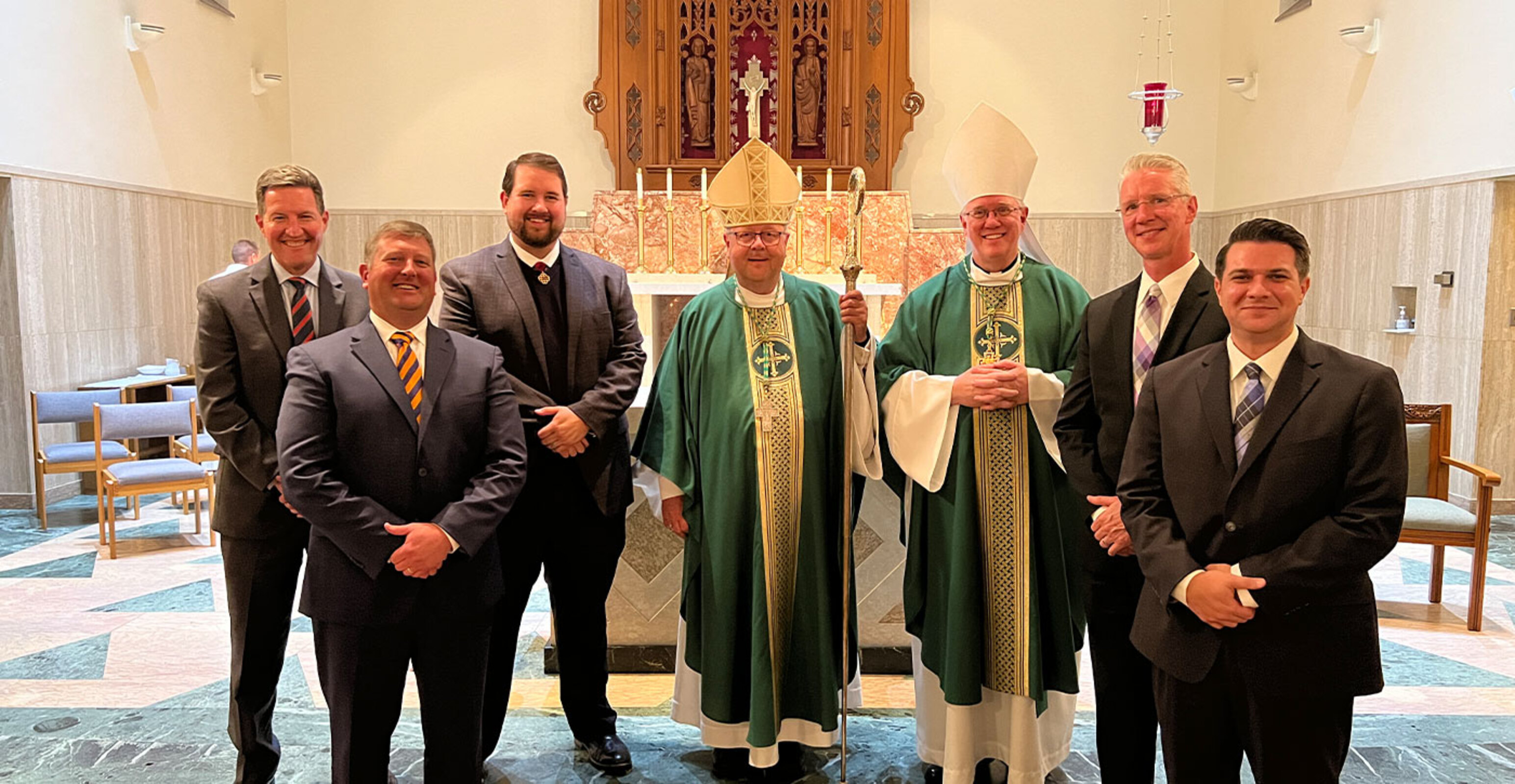 Bishop Edward Malesic officially welcomed five men into candidacy for the permanent diaconate in the Diocese of Cleveland during a liturgy on Aug. 21 in Sacred Heart Chapel at the Center for Pastoral Leadership.