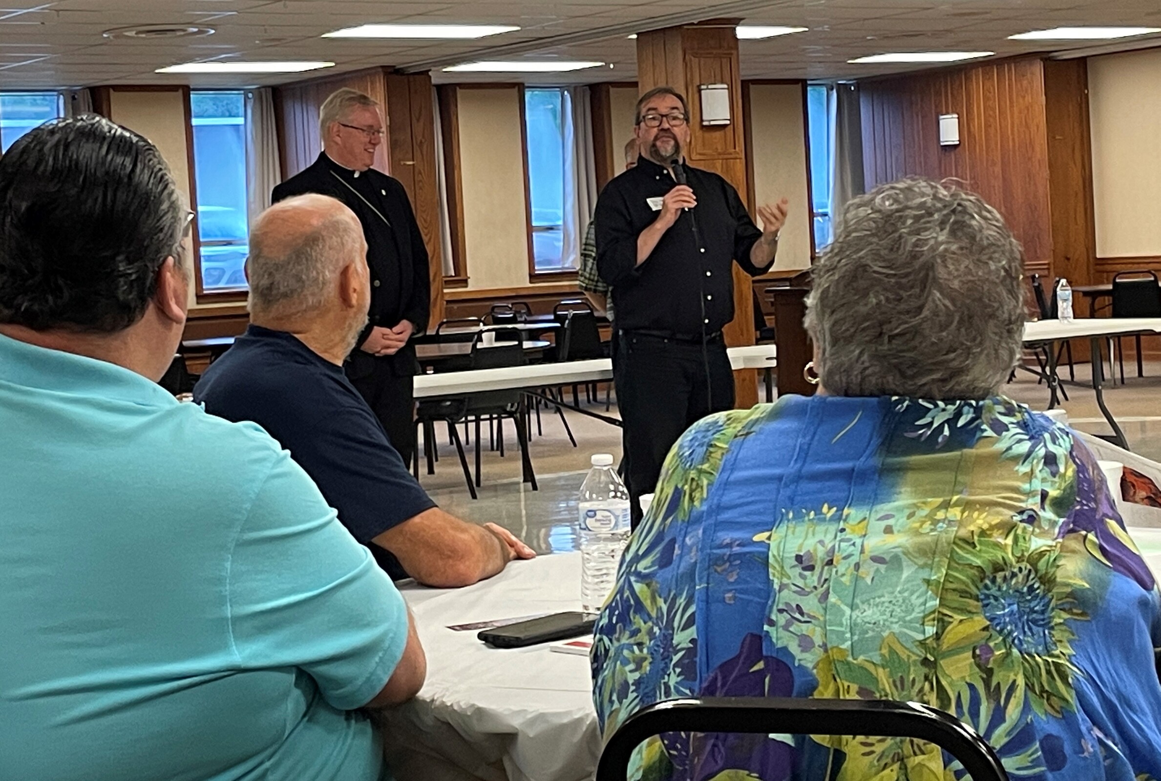 The bishop updated the musicians on the status of the diocesan Office for Worship, which. Bishop Edward Malesic appointed him to lead as interim director in March -- just two months before his episcopal appointment was announced. The office had been without a director since August 2021. It is closely tied to the musicians and their work, the bishop said.