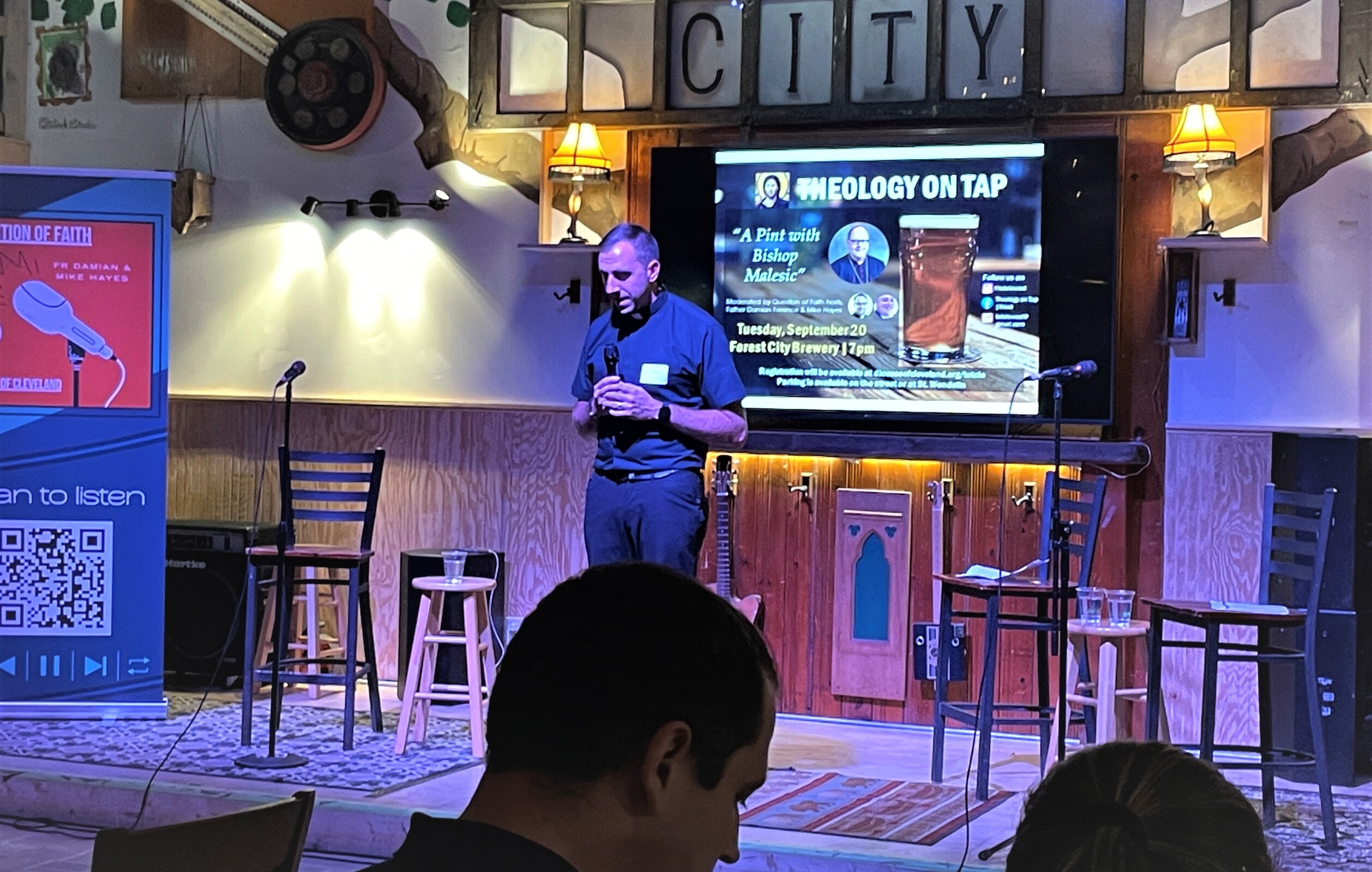 More than 100 people turned out Sept. 20 to have “A Pint with Bishop (Edward) Malesic” at Forest City Brewery in Cleveland’s Duck Island neighborhood. The vibe was energetic as young adults – and a few others – gathered to renew Theology on Tap. The group had been on hiatus, primarily due to the pandemic.
