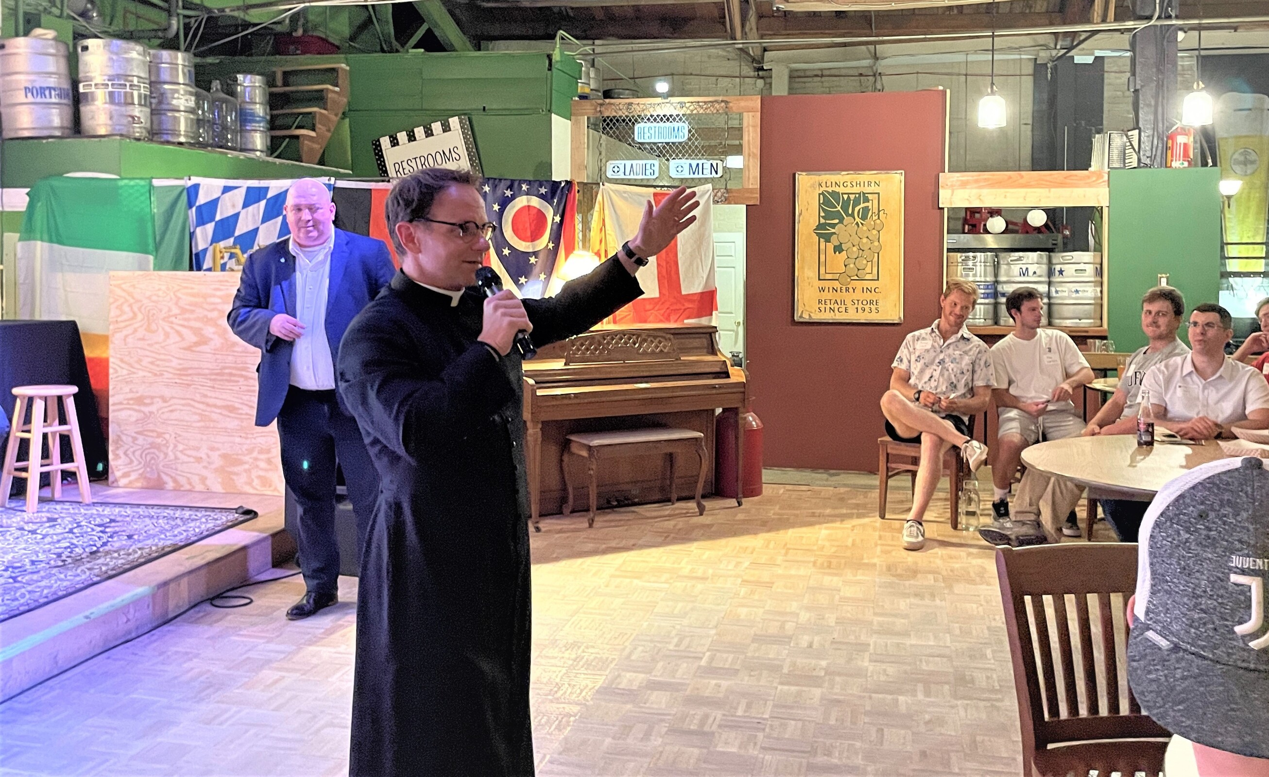 “It’s been 930 days since we last met,” said Father Eric Garris, assistant vocation director and a facilitator for Theology on Tap said as he opened the program. “But we’re back.”