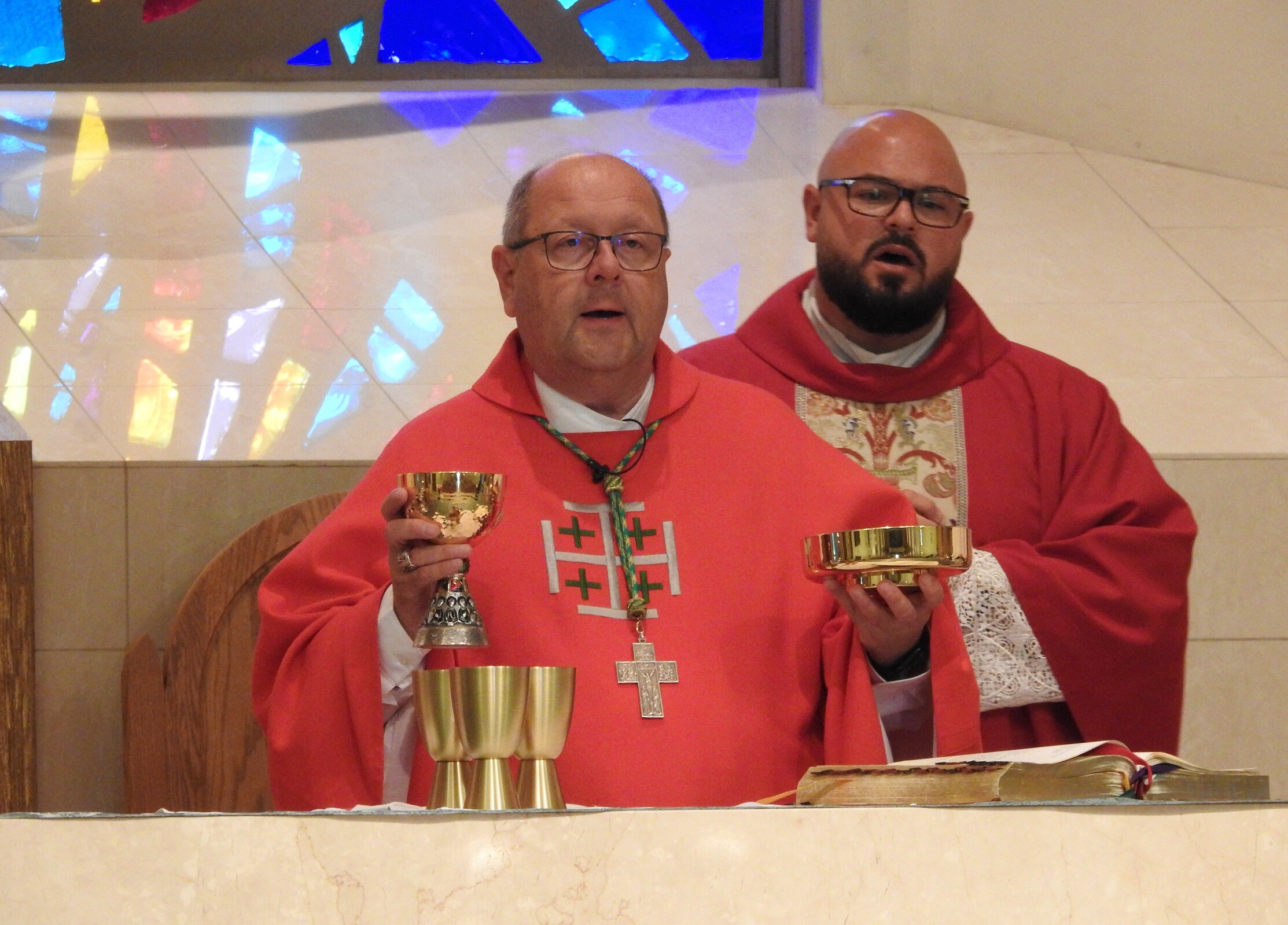 Bishop Gries thanked the group for their support and told them it was wonderful “to stand around the altar and to be nourished with the body and blood of Christ.” He also thanked his secretary of 31 years, Cheryl Zelenka, for her assistance and support.